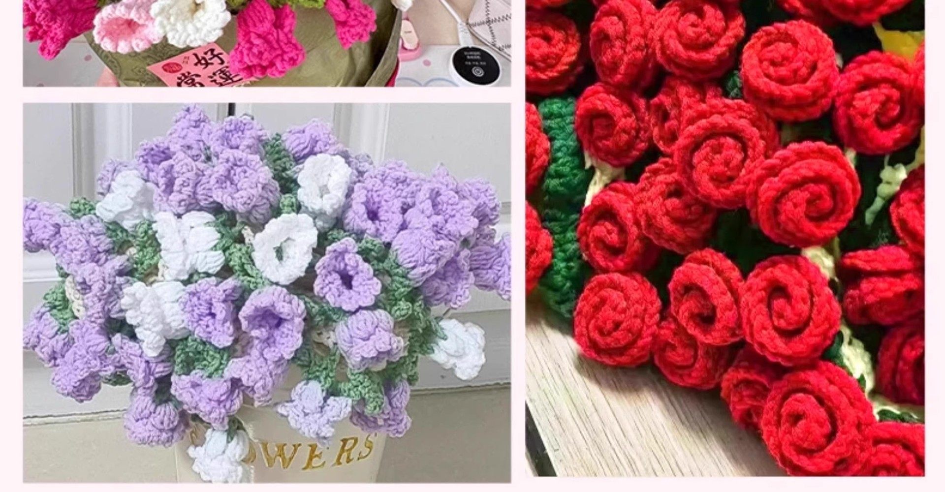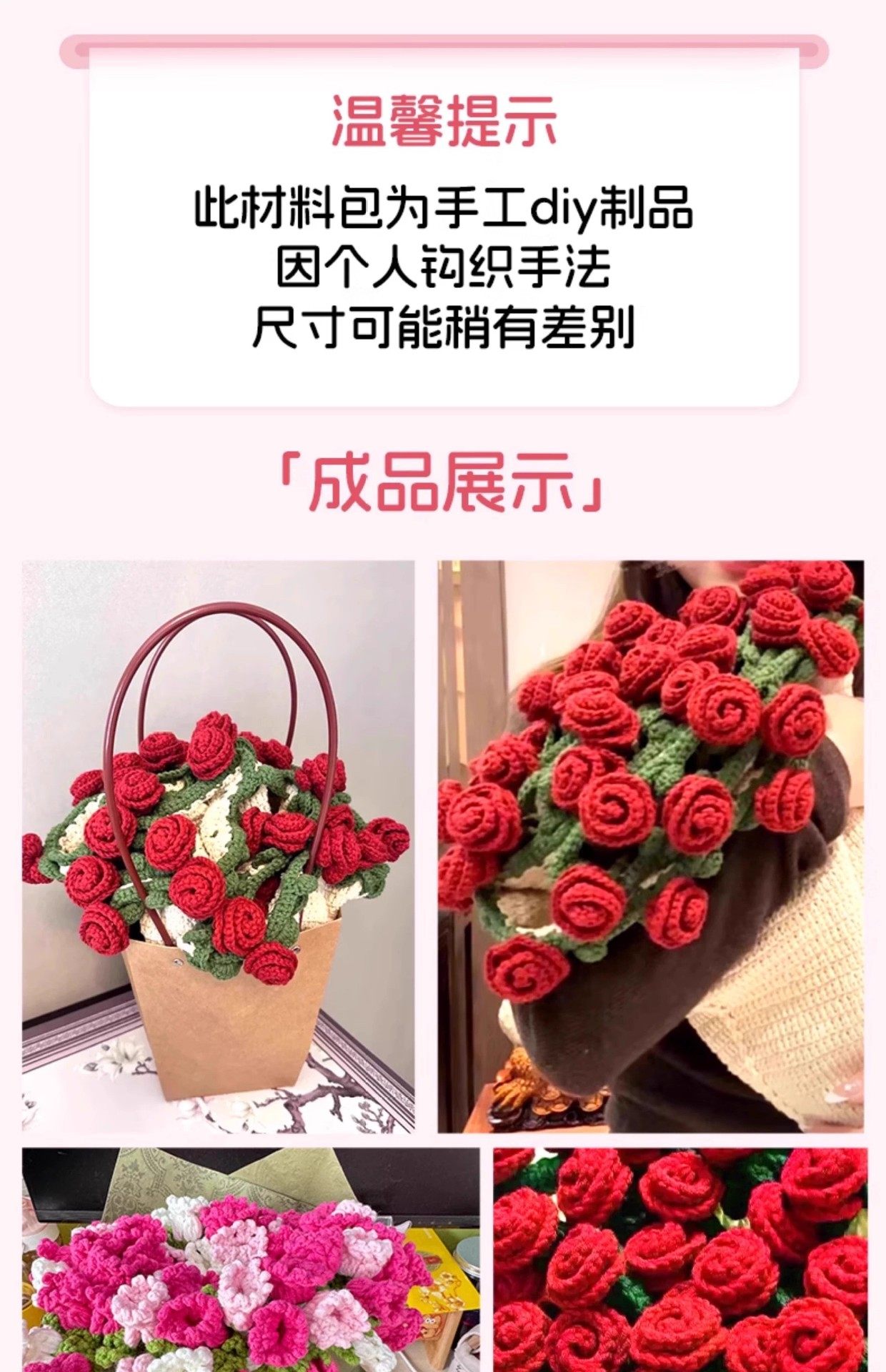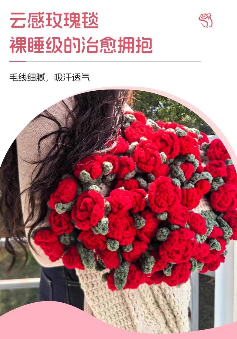Hand Knitted DIY Rose Bouquet Blanket Material Package Wool Ball Crocheted Flower Blanket Flower Crochet Lily of the Valley Flower