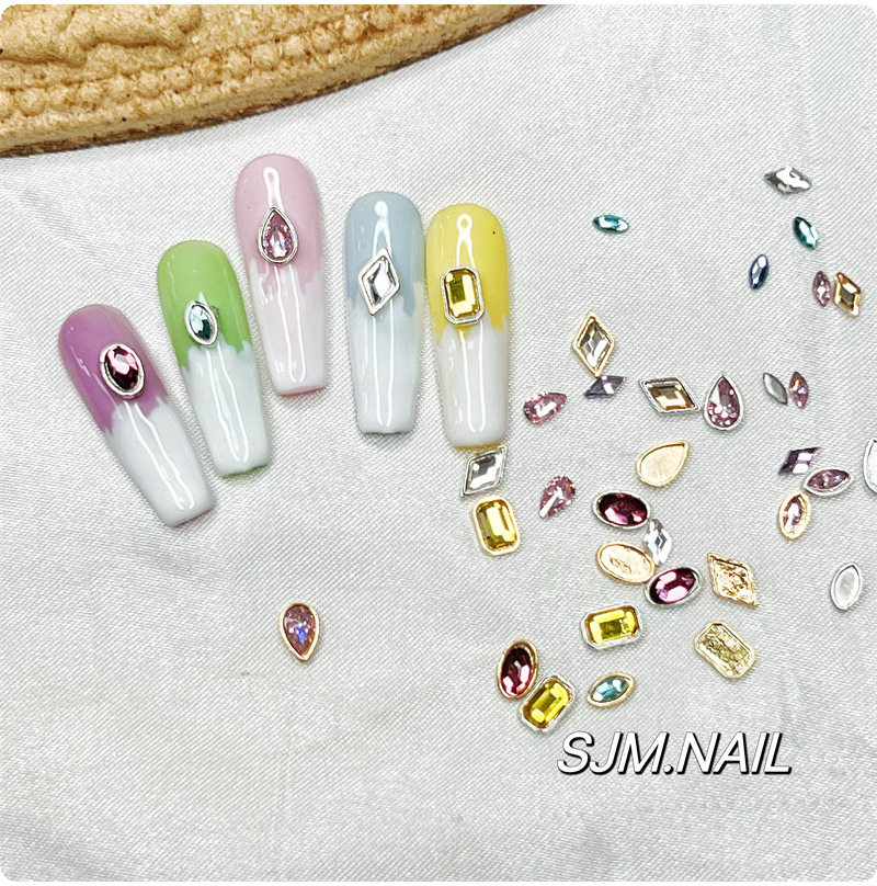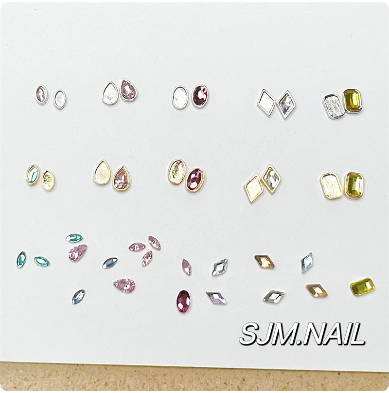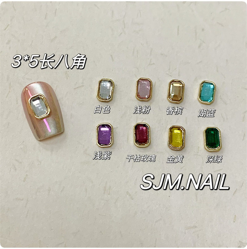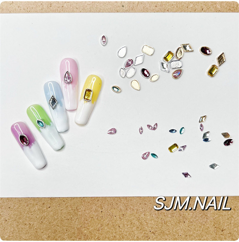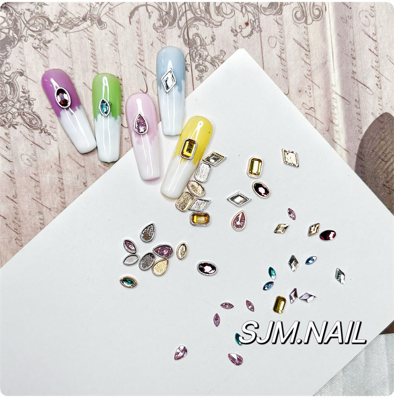 Xiaohongshu Manicure Versatile Colorfulful Flash Special-Shaped Flats Bottom Diamond Alloy Manicure Octagonal Wearable Nail Accessories Material