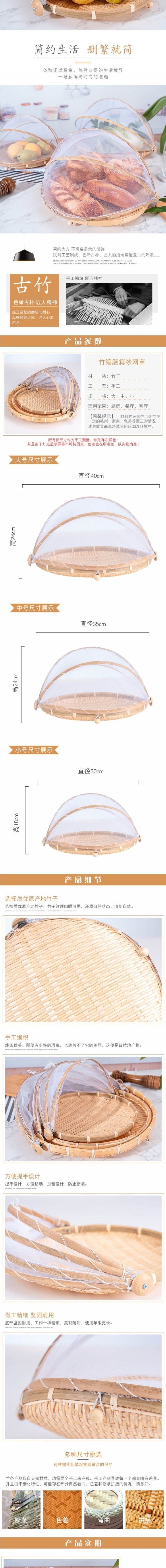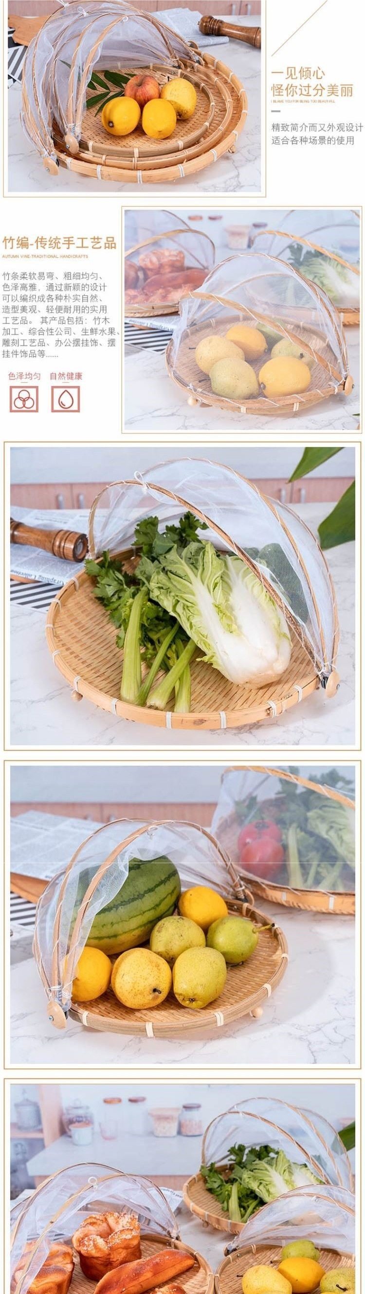 Farmhouse Bamboo Woven Products with Gauze Mesh Steamed Bun Basket to Prevent Flies and Mosquitoes, Sieve Dustpan, Dry Goods Drying Vegetable and Fruit Basket