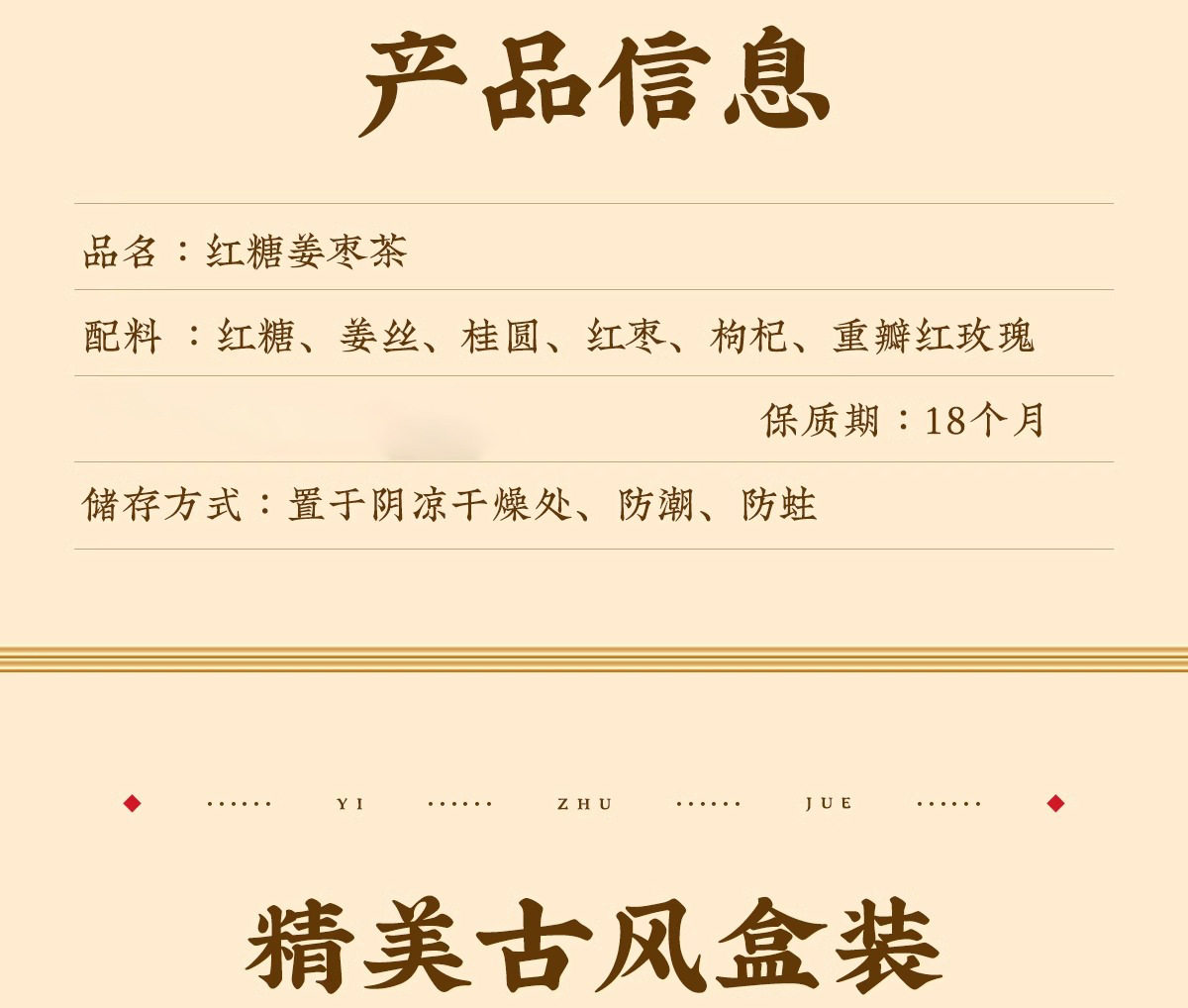 | Packaging specifications | Brown sugar ginger jujube tea [10g*15 bags] |