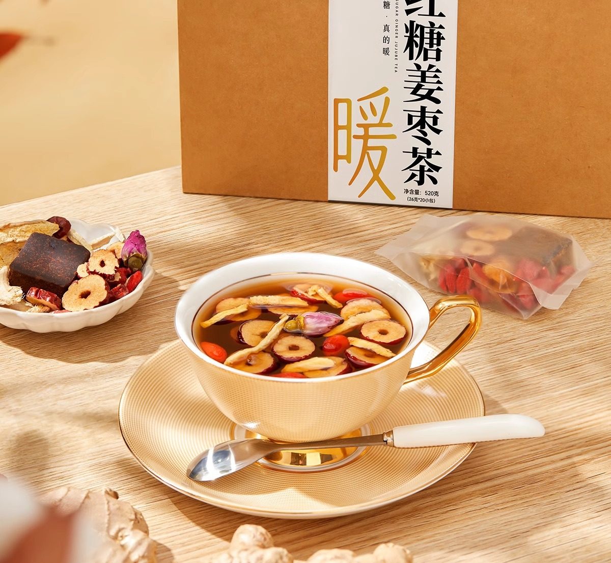 Brown Sugar Ginger Tea, Longan, Red Dates and Wolfberry Tea, Brown Sugar Ginger Tea, Brown Sugar Ginger Tea Bag, Wolfberry, Red Dates and Longan Women's Tea