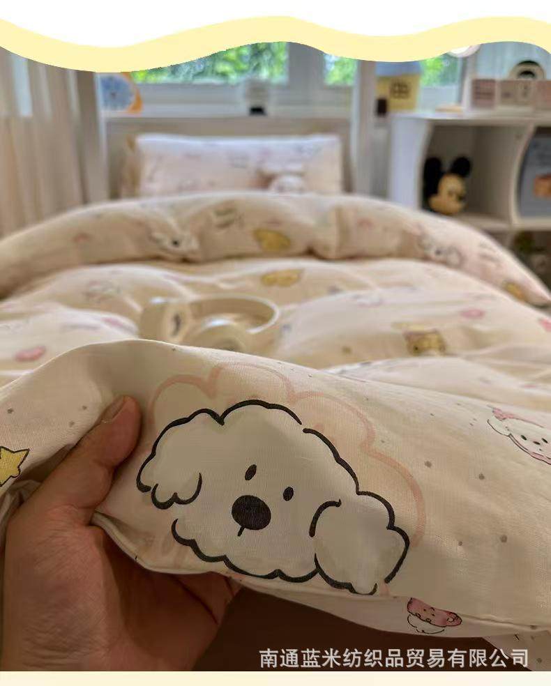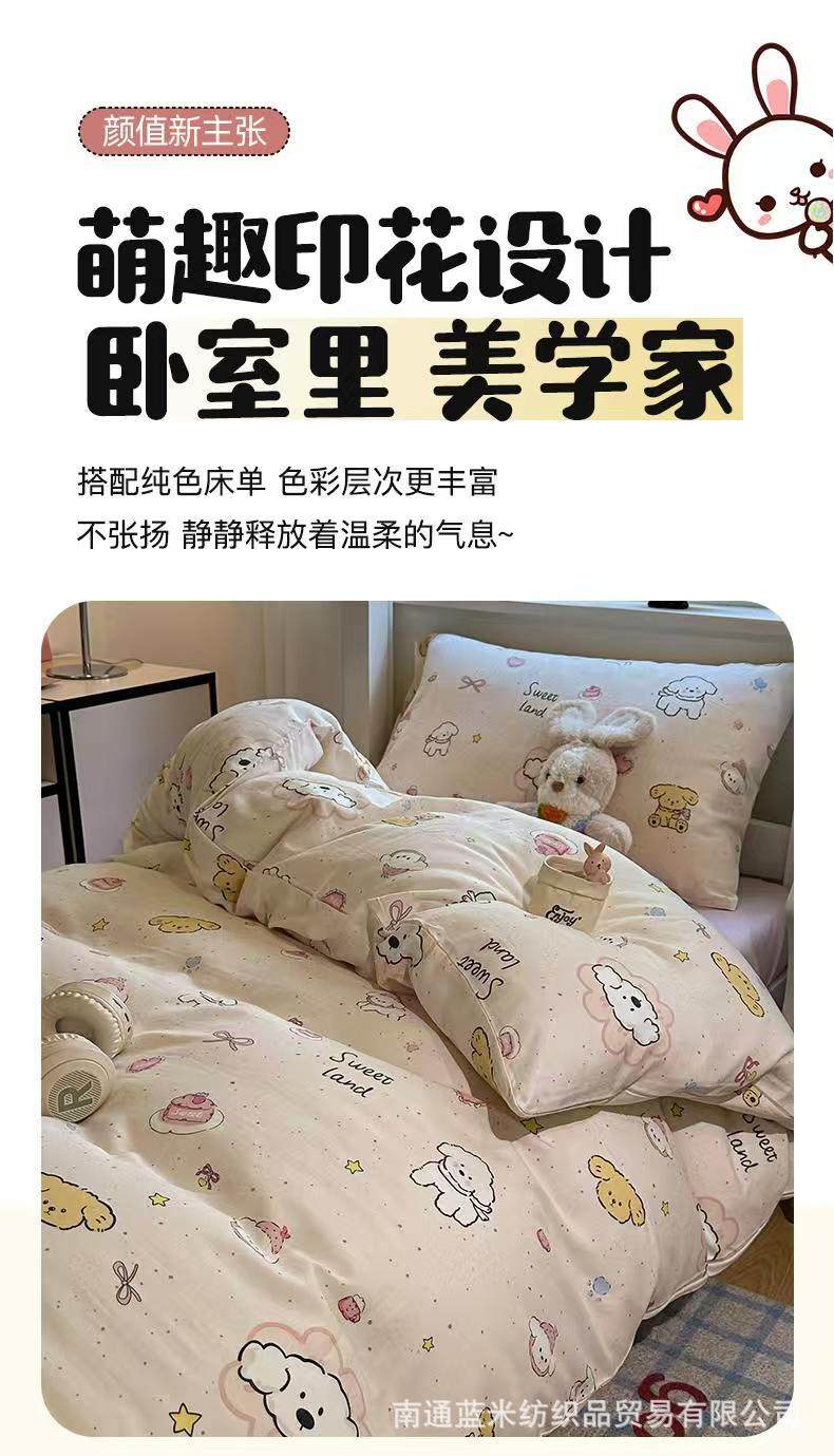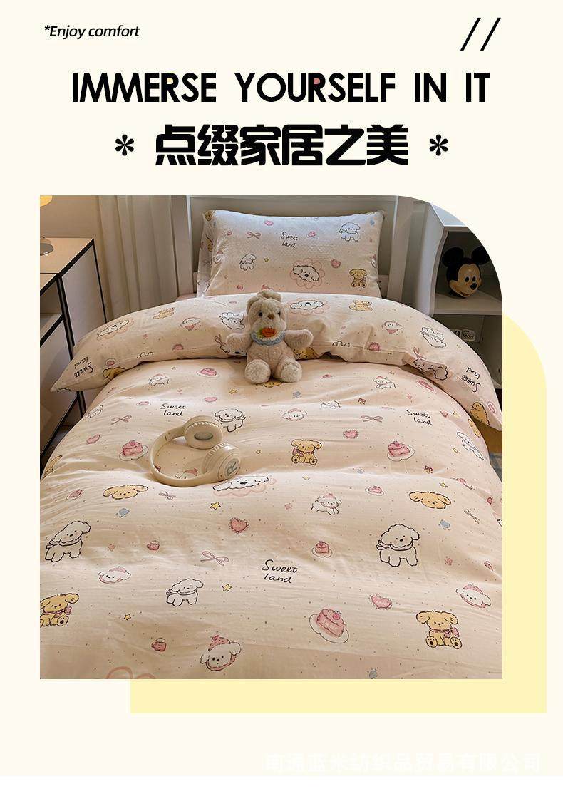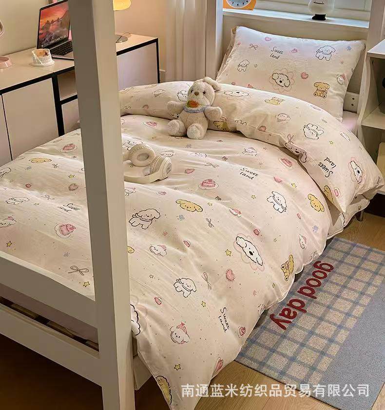 Cream Lazy Style Nantong Home Textile Four-Piece Set Washed Brushed Craft Dormitory Three-Piece Set Amazon Cross-Border