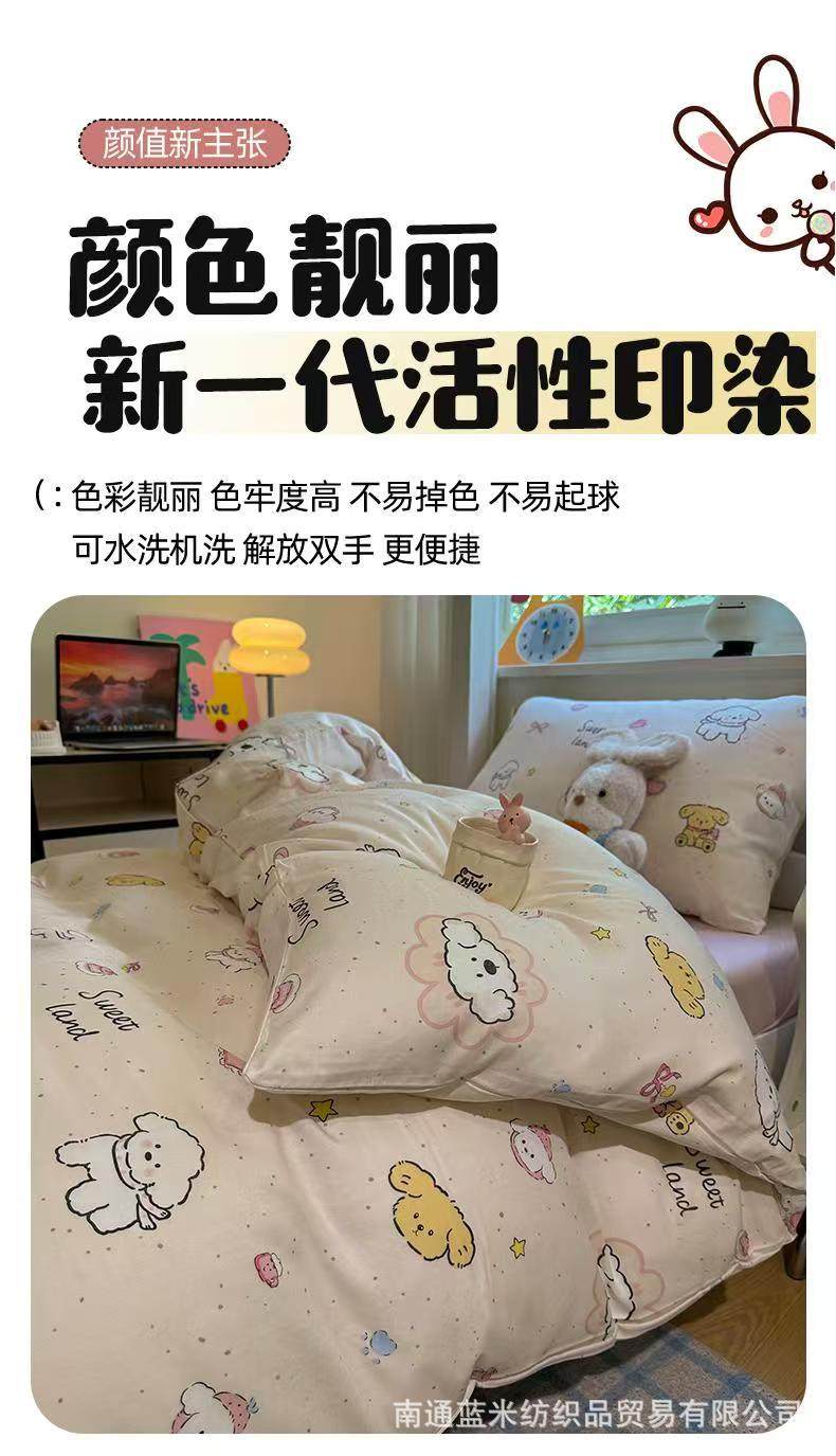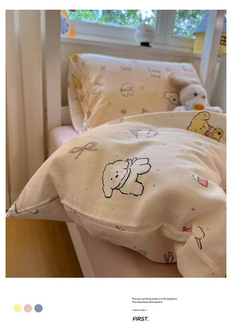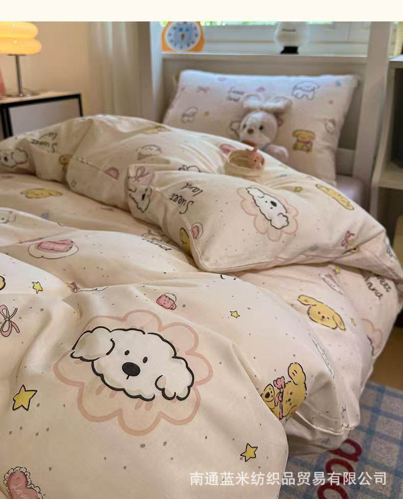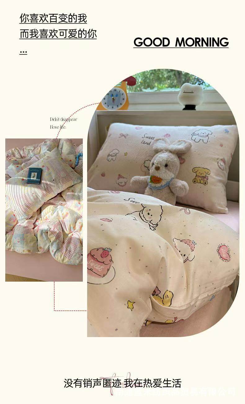 Cream Lazy Style Nantong Home Textile Four-Piece Set Washed Brushed Craft Dormitory Three-Piece Set Amazon Cross-Border