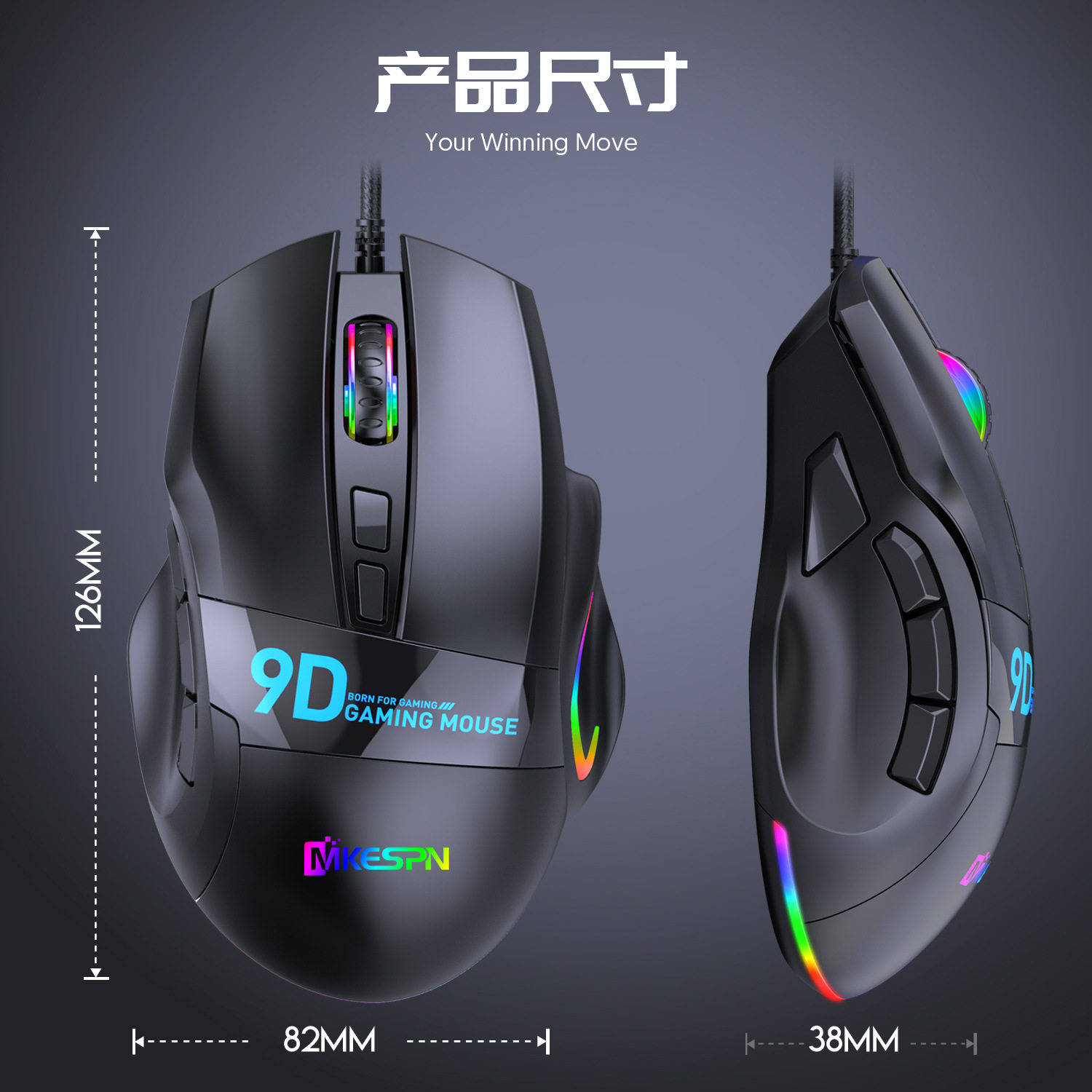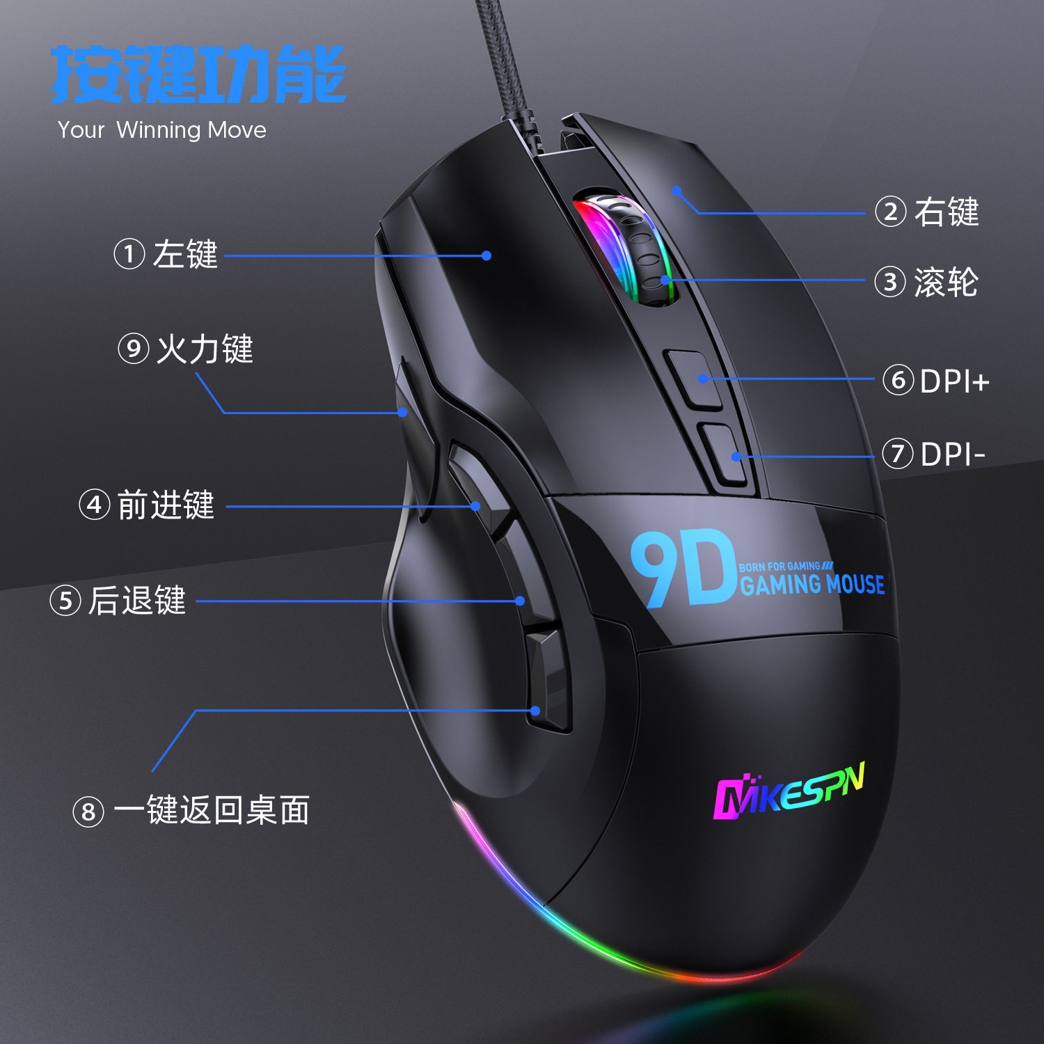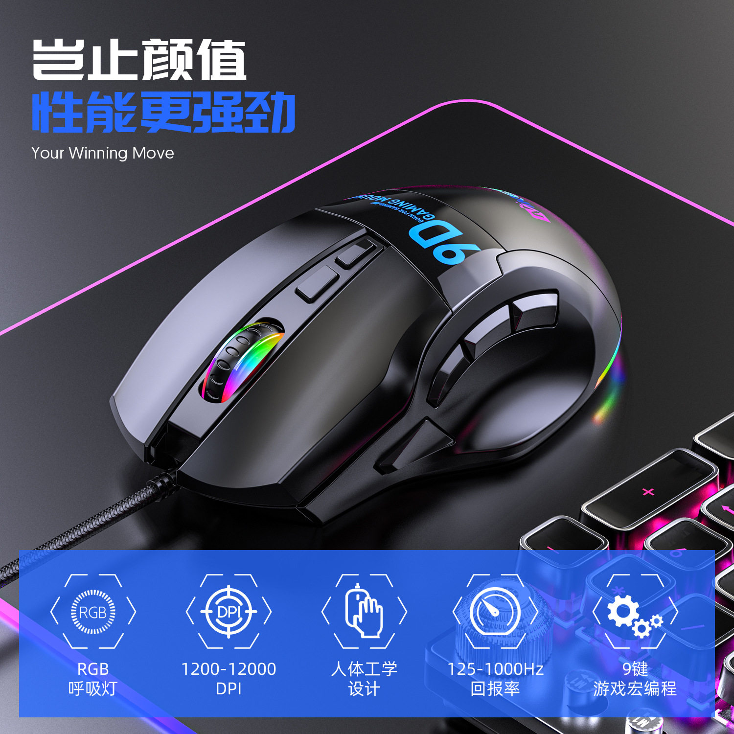 12800Dpi Full-Speed Multi-Button Gaming Mouse 9-Button Rgb Wired One-Piece Minimum Order Computer Accessories Rgb E-Sports Grade