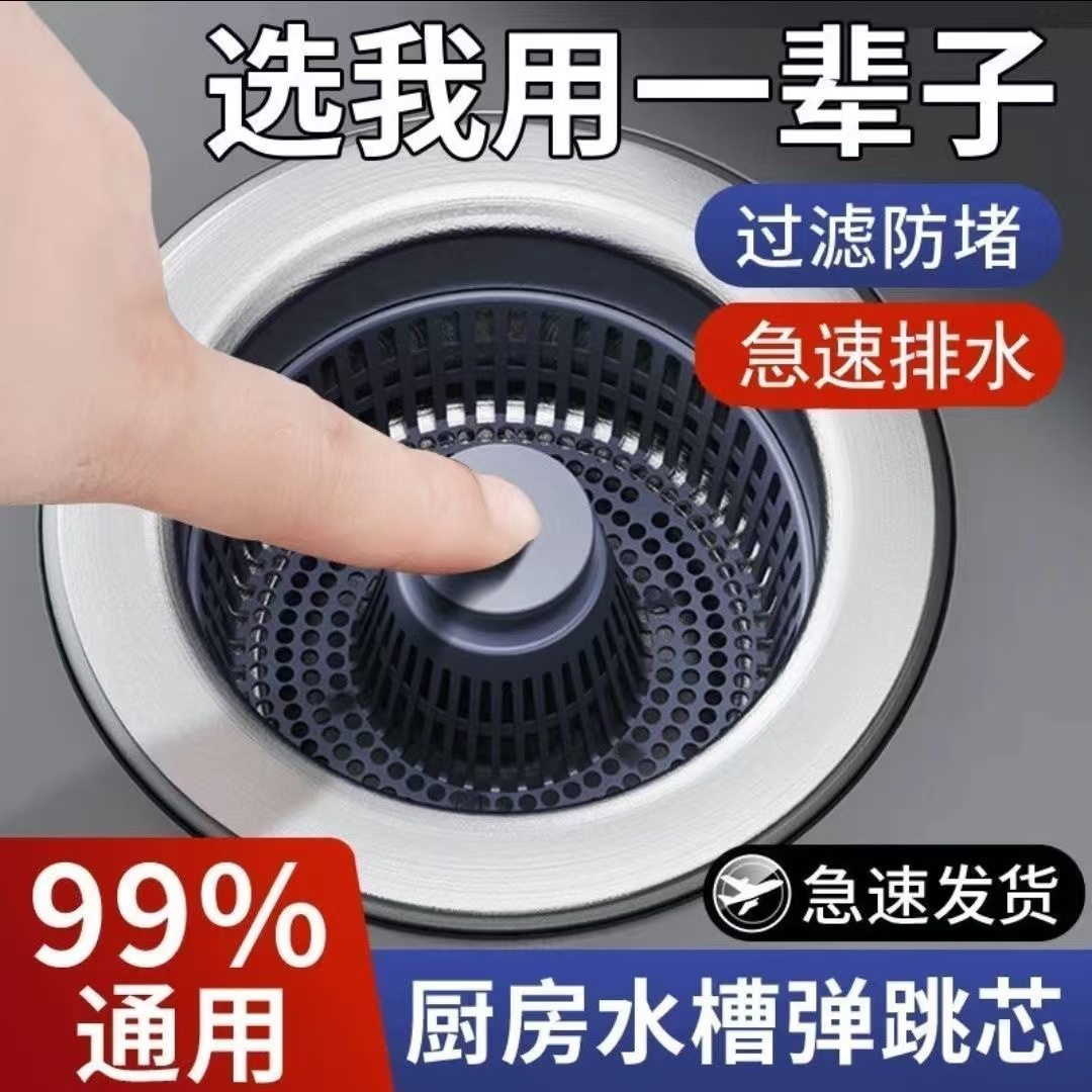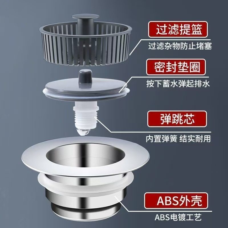 Abs Kitchen Sink Pop-Up Drain Filter Mesh Dishwashing Basin Odor-Proof Cover Press-Type Drain Plug