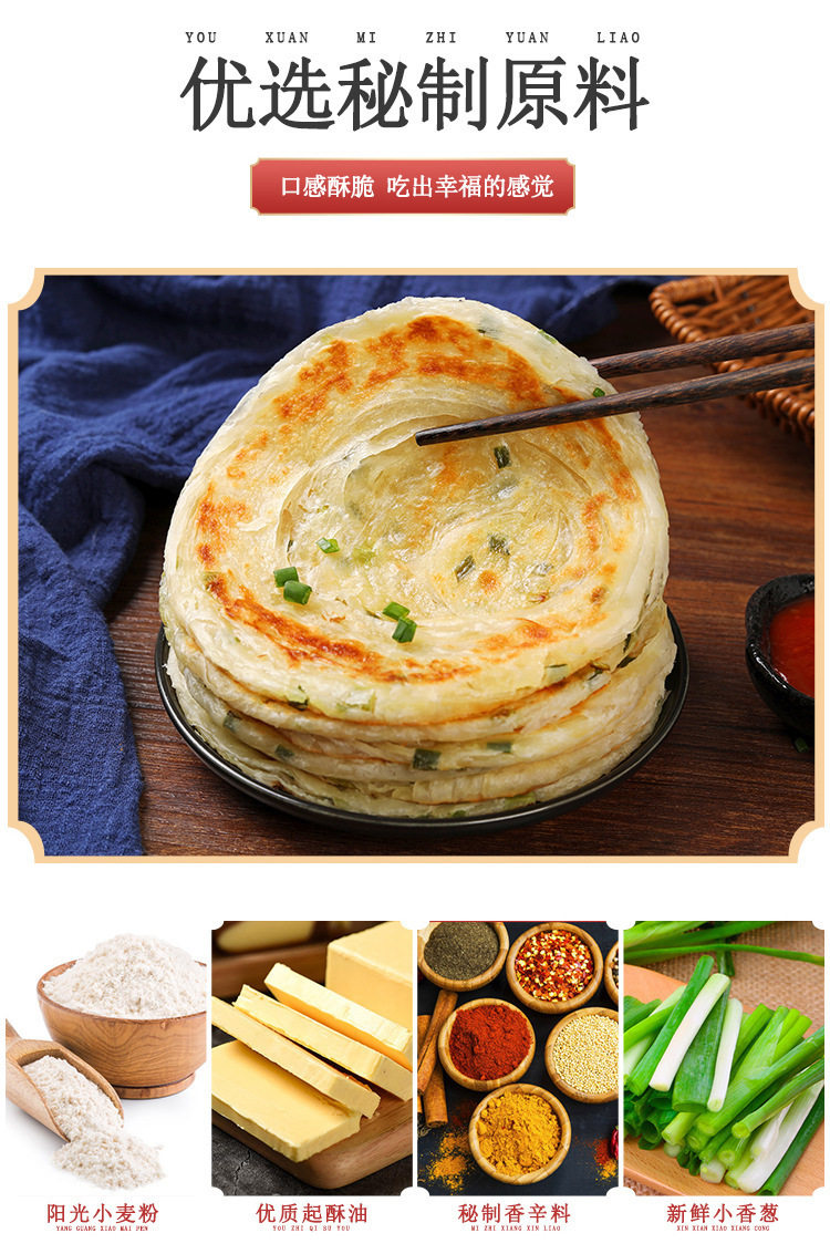 Old Shanghai Scallion Pancake Scallion Flavor Hand-Grab Pancake Breakfast Pancake Skin Quick-Frozen Household Commercial Semi-Finished Product Wholesale Free Shipping