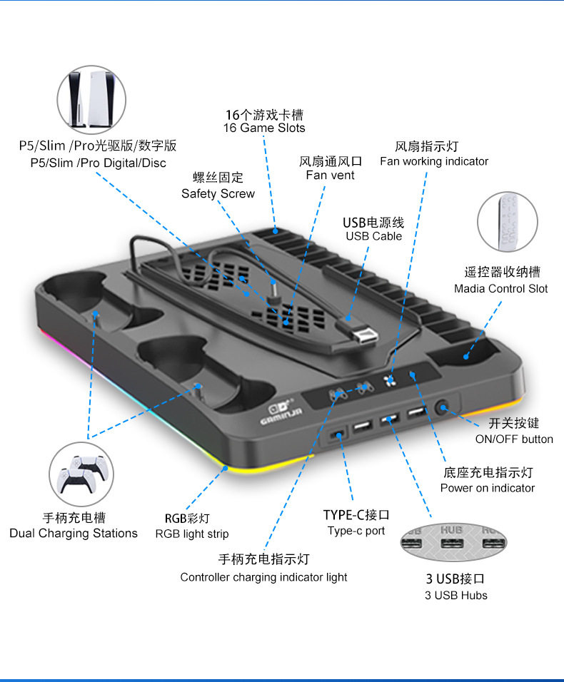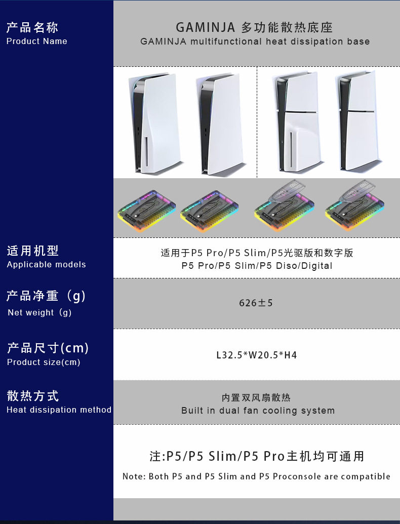 | Scope of application | P5/p5 slim/p5 pro and controller charging stand |
