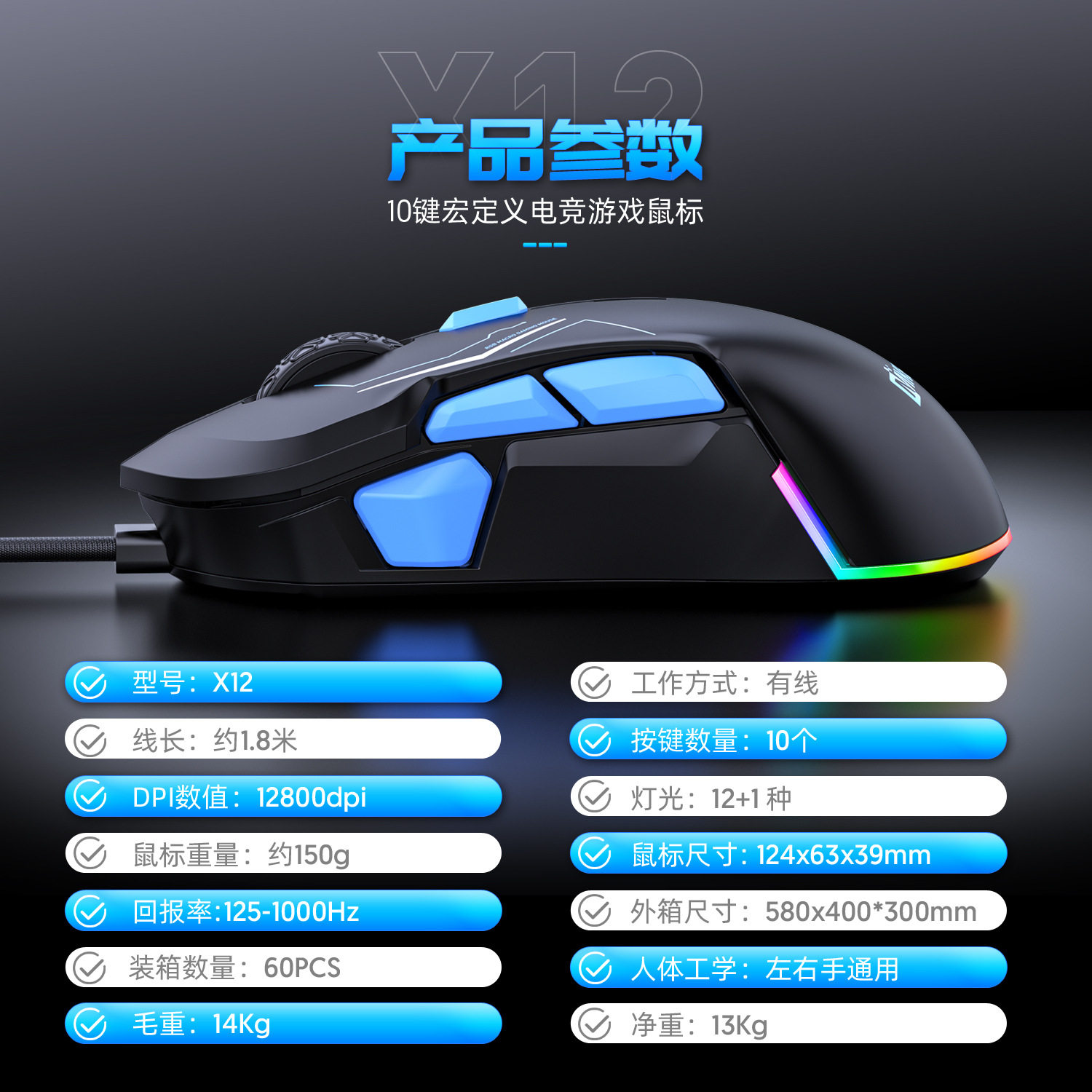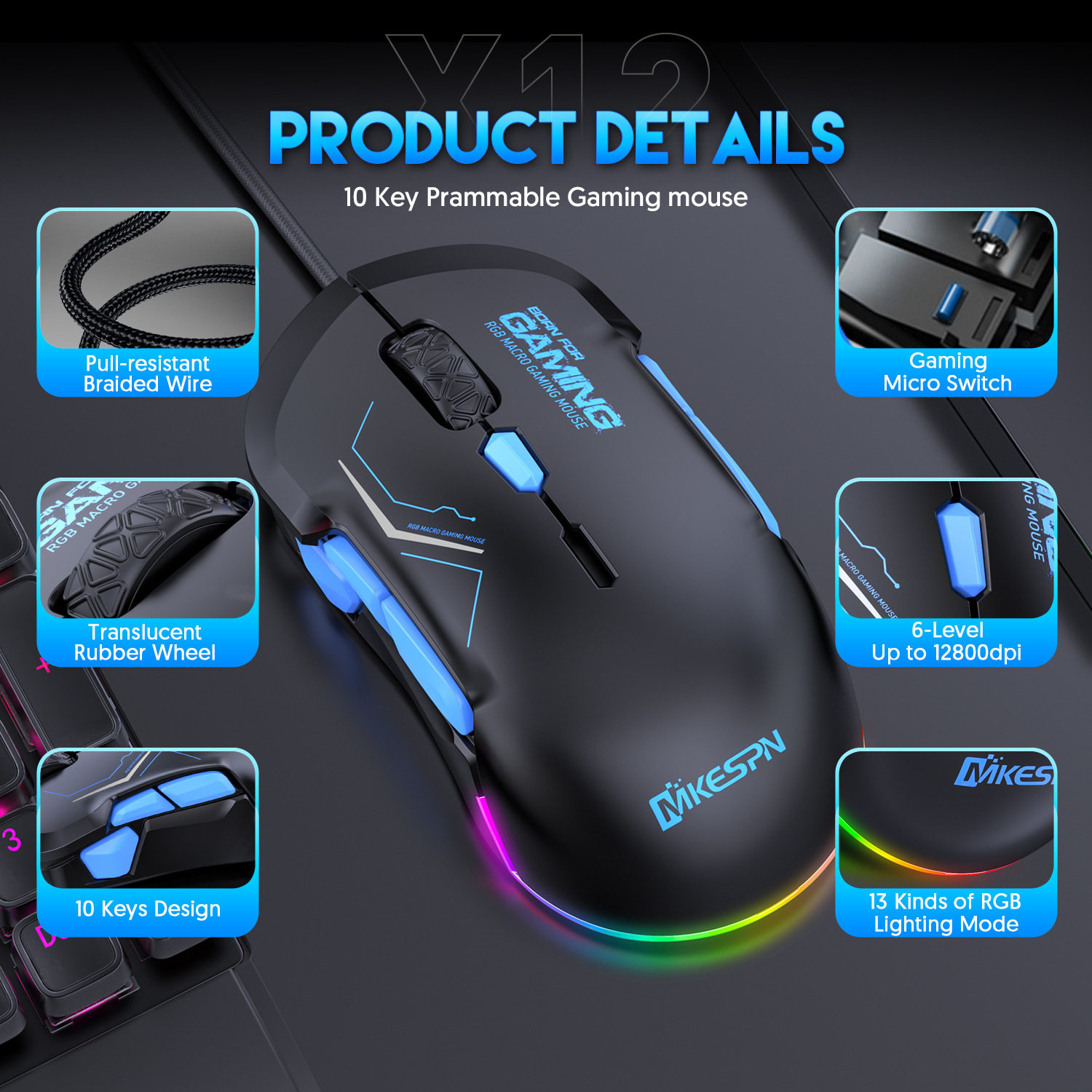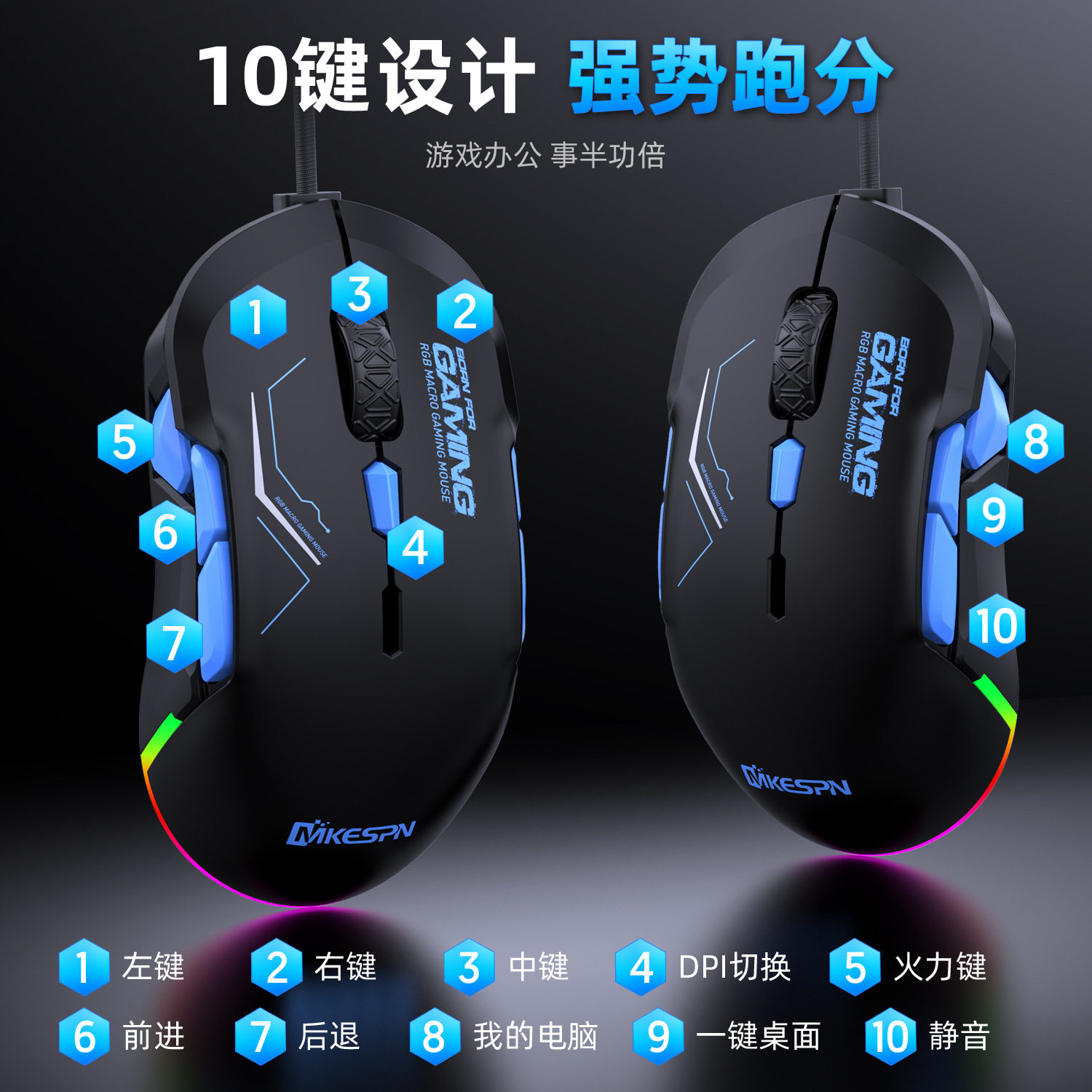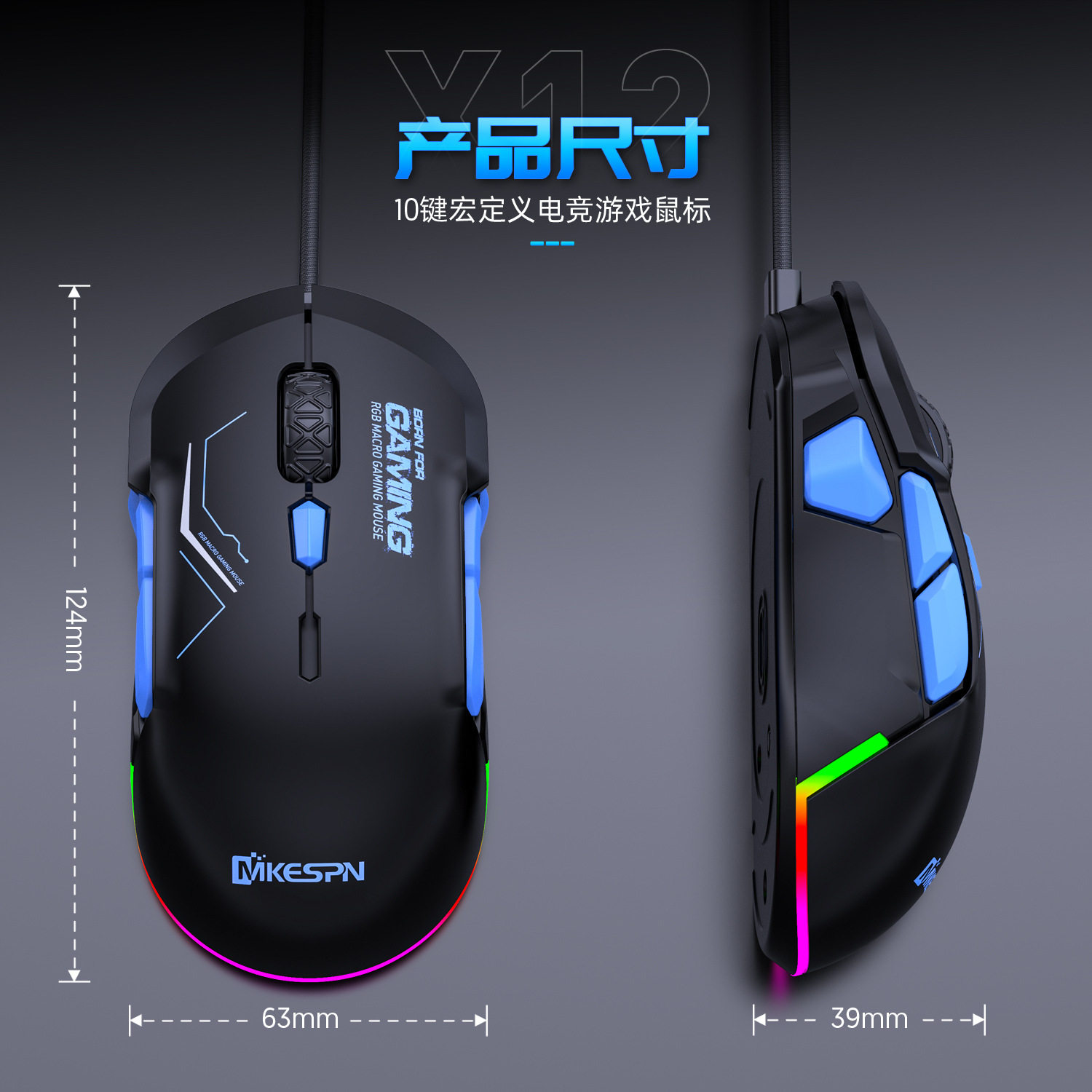 12800Dpi Left-Hand/Right-Hand Symmetrical 10-Button Rgb Macro-Definable Gaming Wired Mouse E-Sports USB Rechargeable
