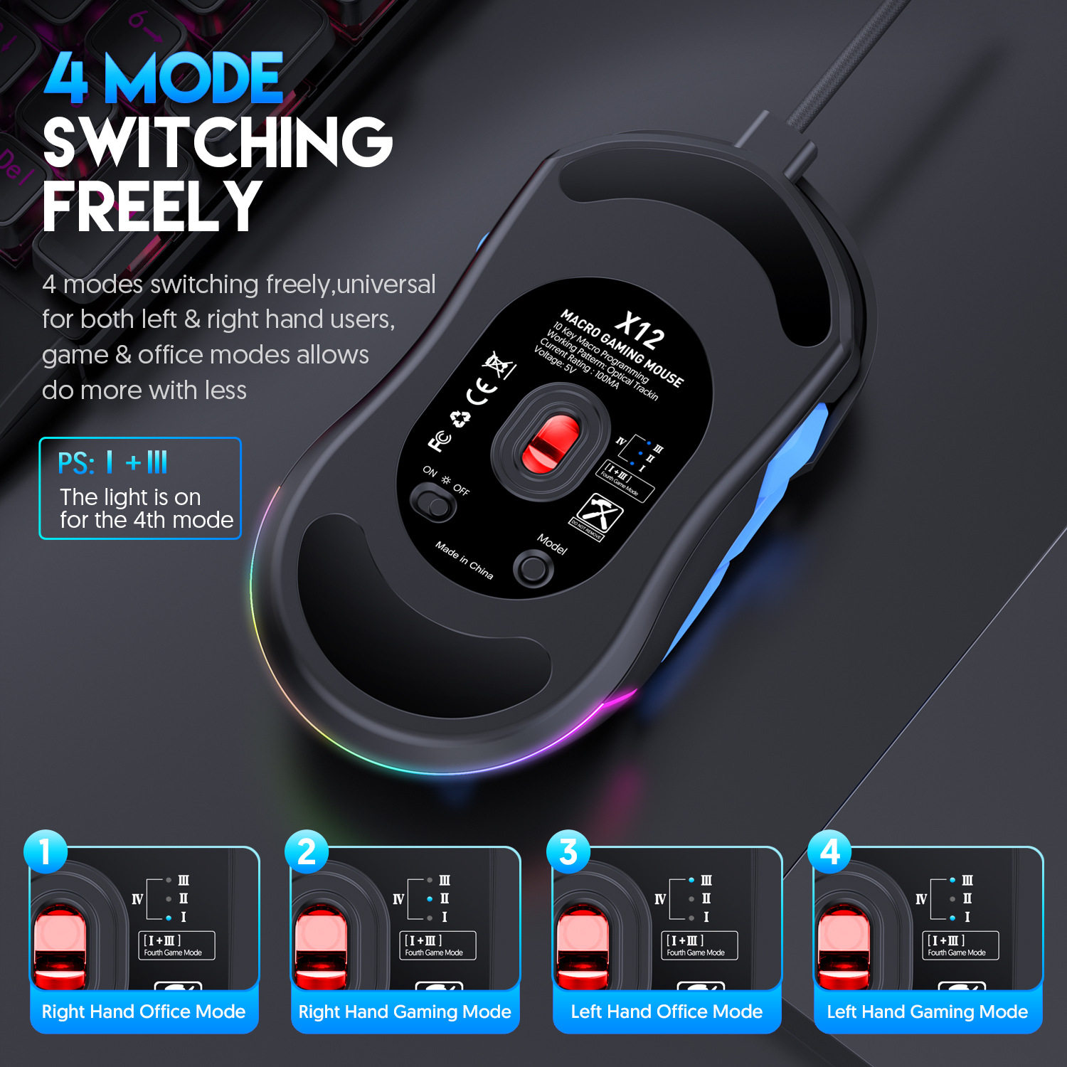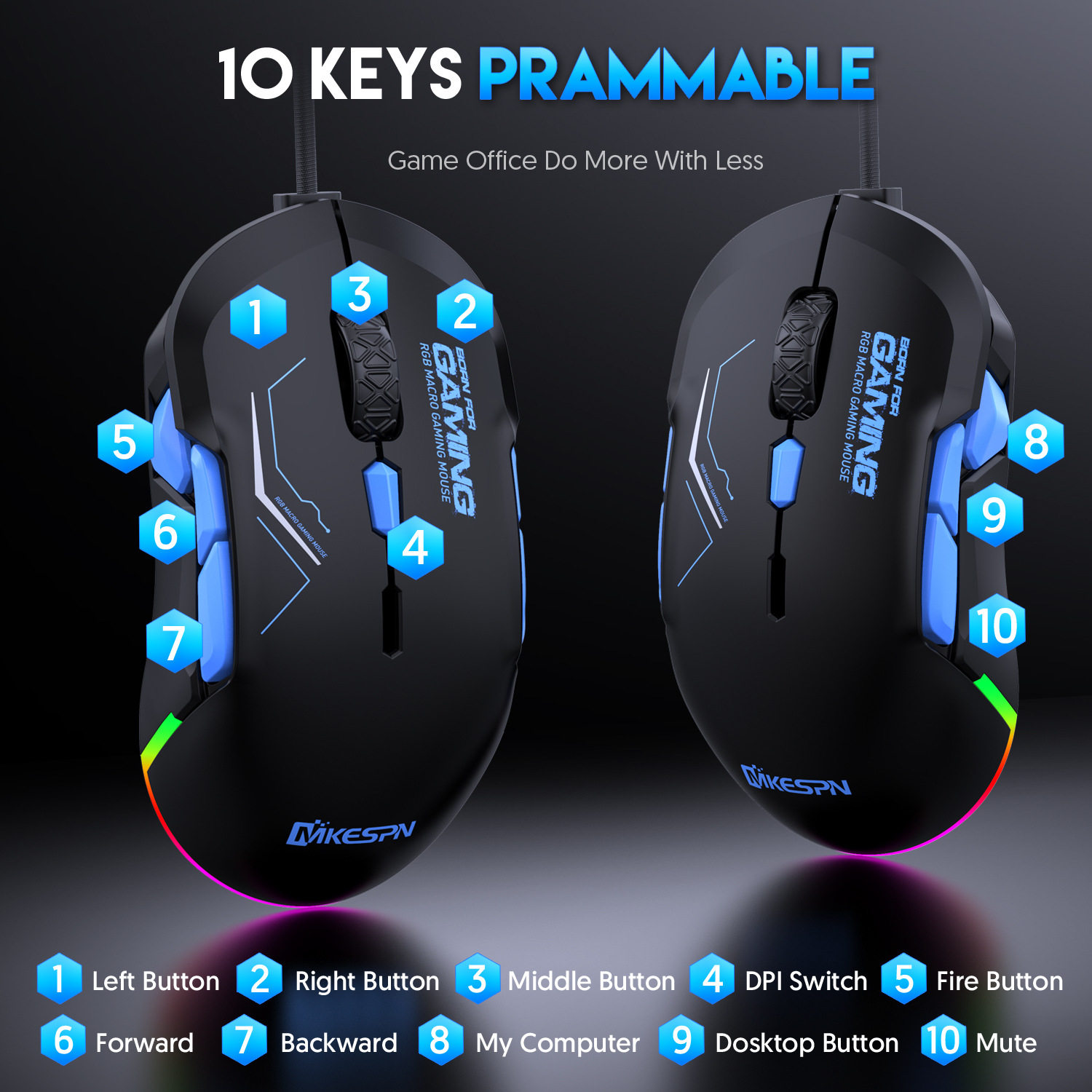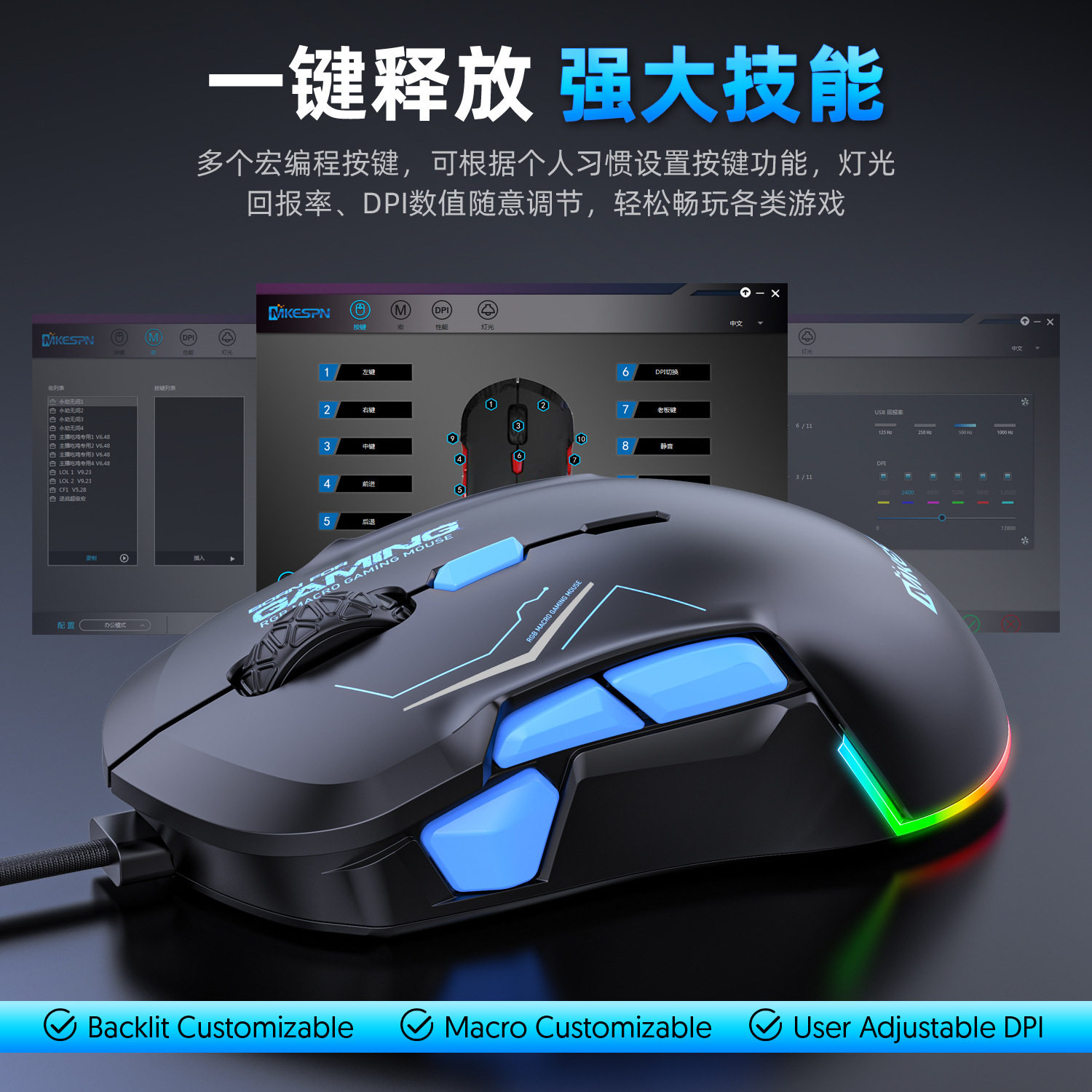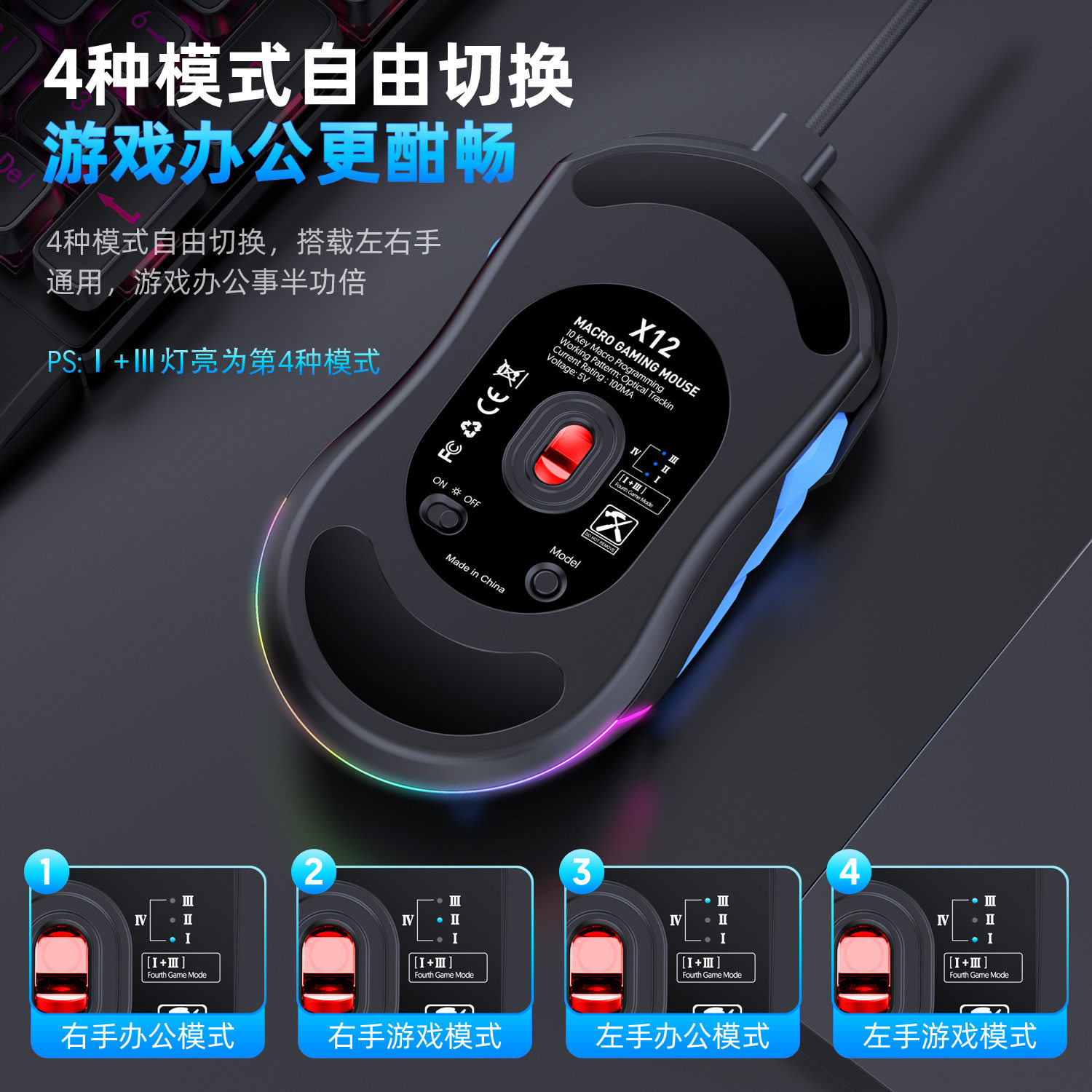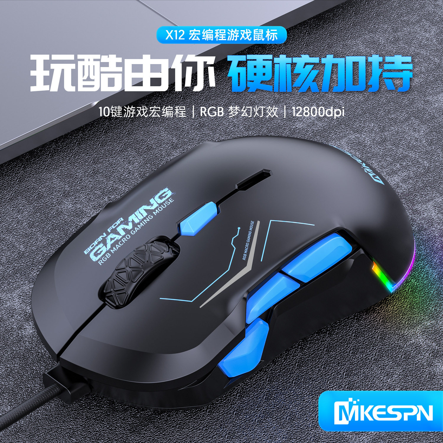 12800Dpi Left-Hand/Right-Hand Symmetrical 10-Button Rgb Macro-Definable Gaming Wired Mouse E-Sports USB Rechargeable