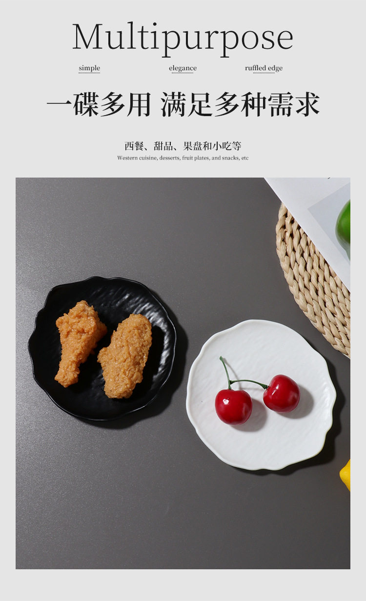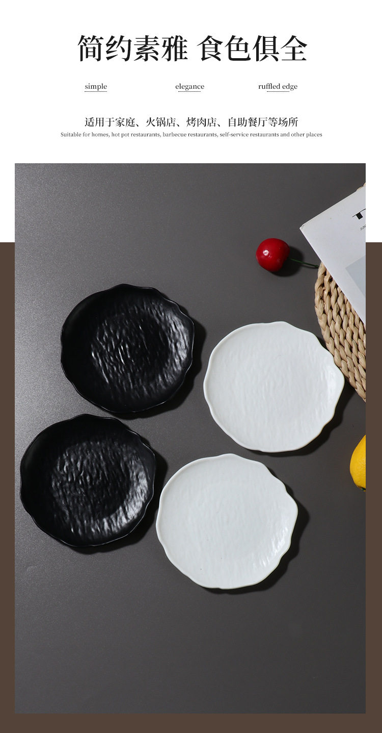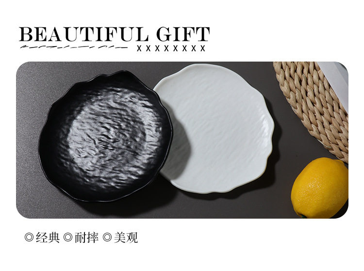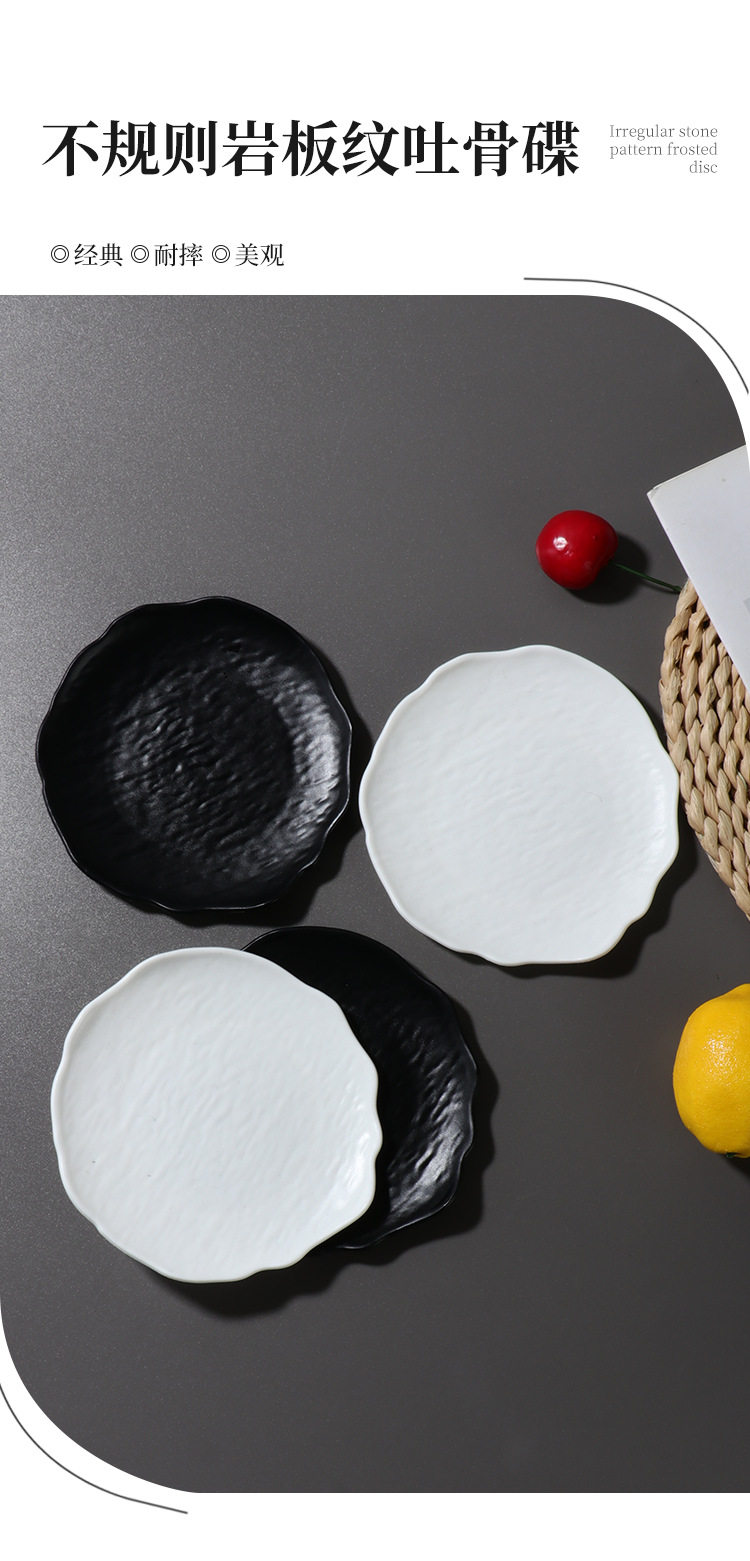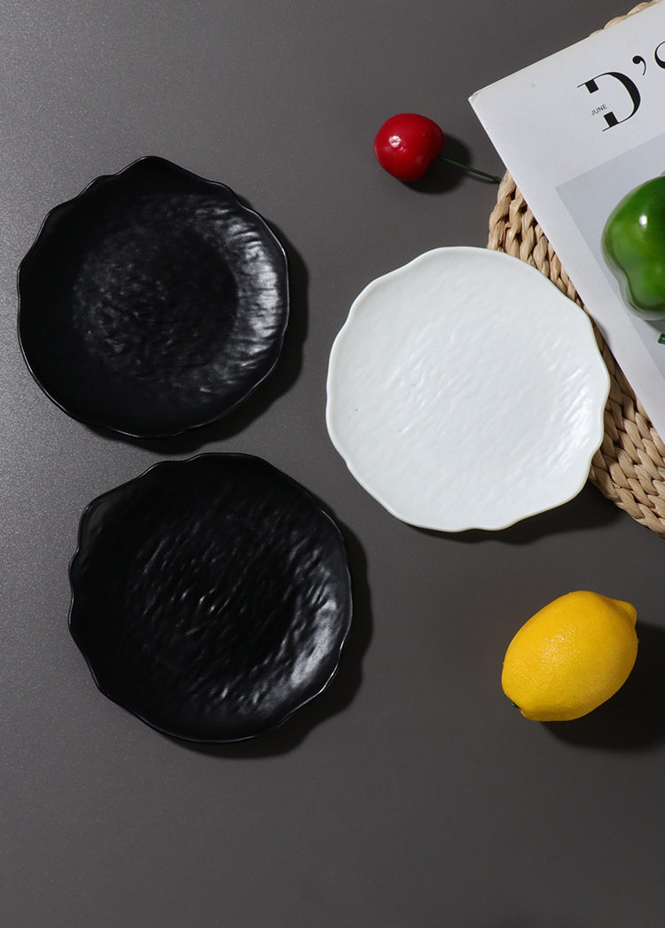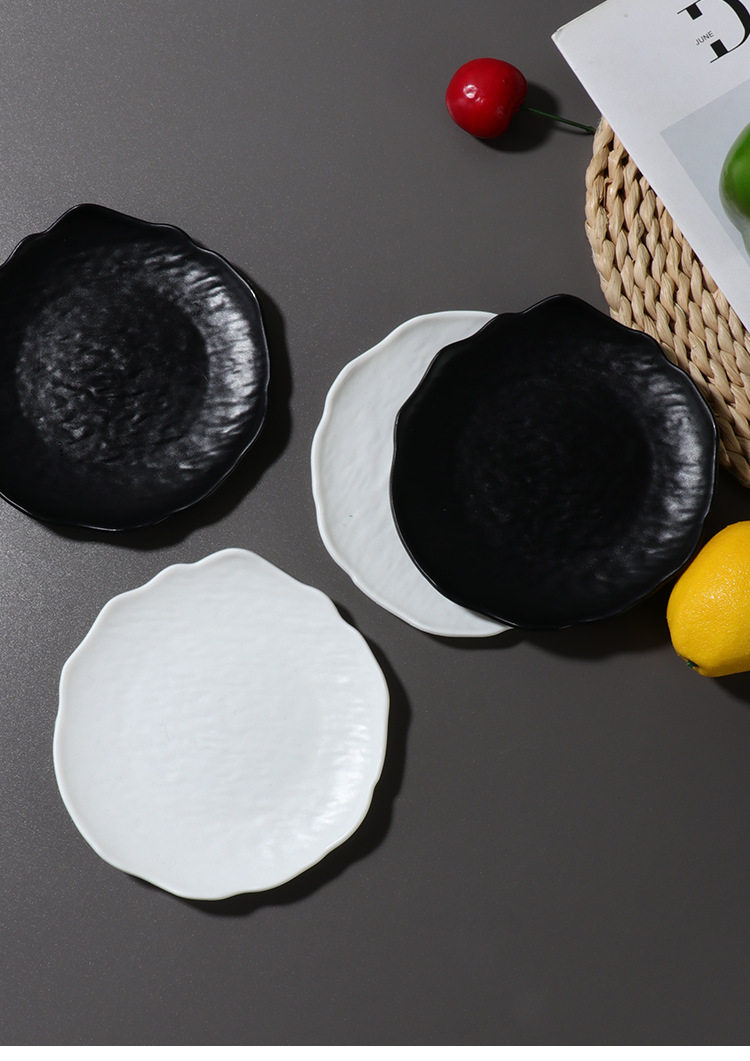 Ins Style Tableware Matte Asymmetrical Pattern Cake Plate Round Plate Snack Plate Spit Bone Plate Creative Western Food Plate