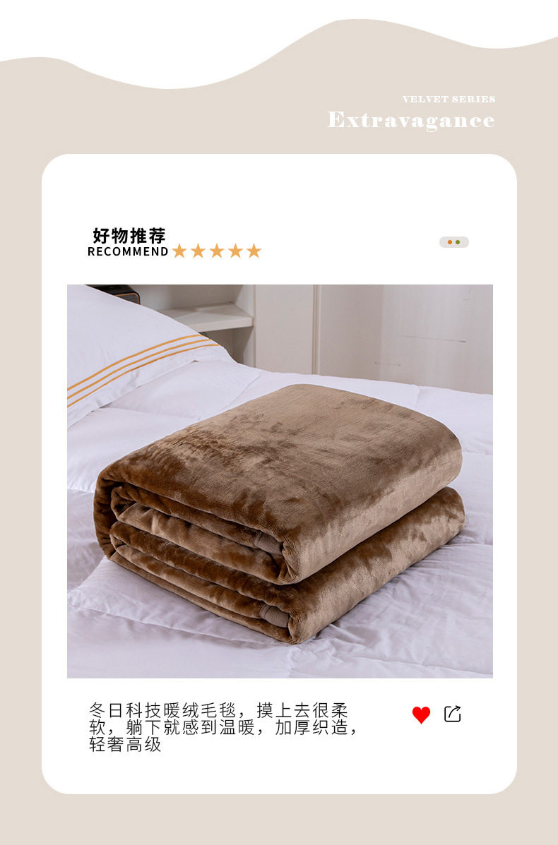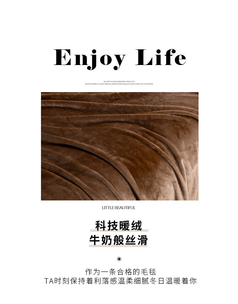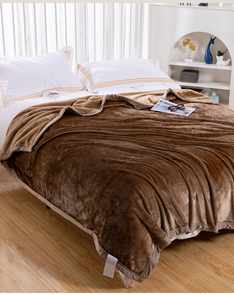 New 500g Simple Double-Sided Thickeneded Technology Warm Velvet Blanket Dormitory Lunch Break Blanket Single and Double Bed Home Blanket