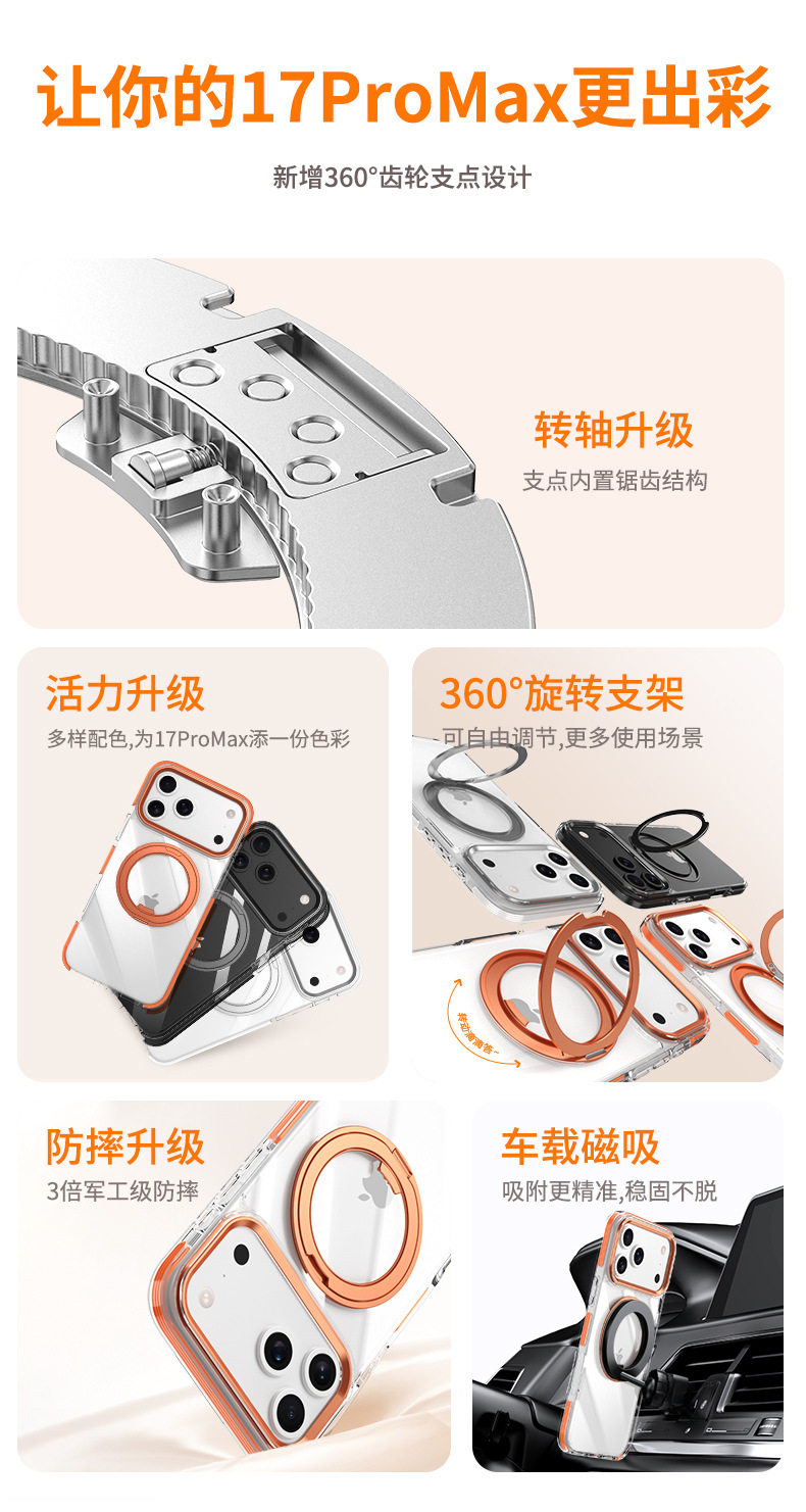 Suitable for Iphone17Promax Mobile Phone Case Two-Color Gear 360 Rotating Magnetic Stand Apple 16 Protective Cover