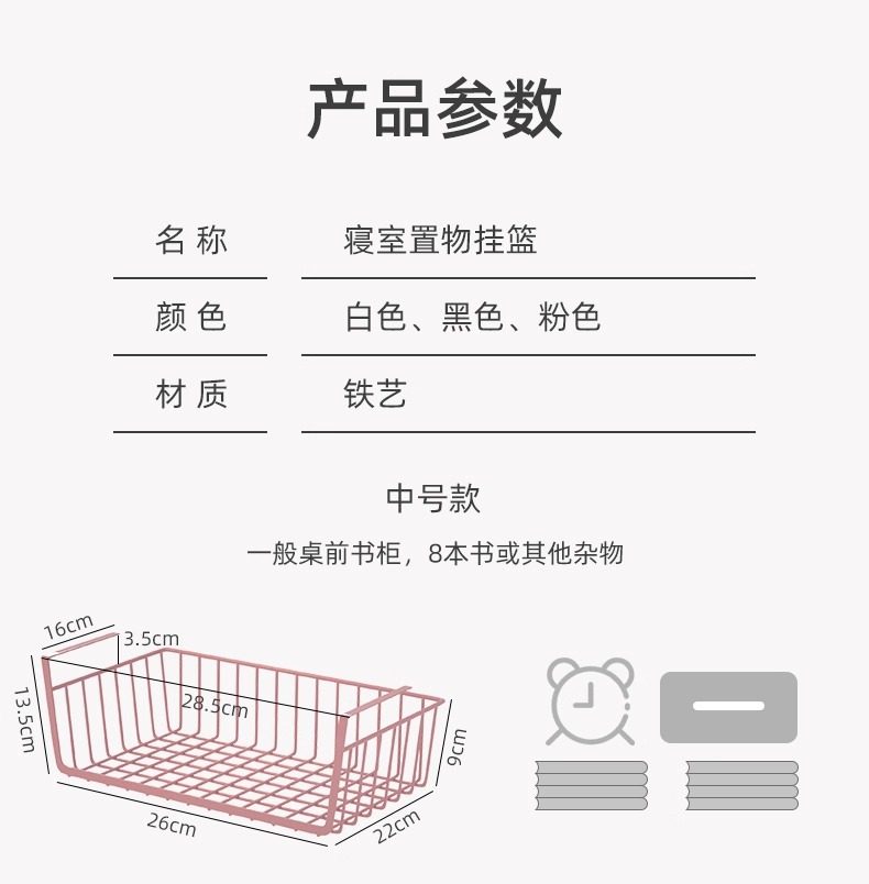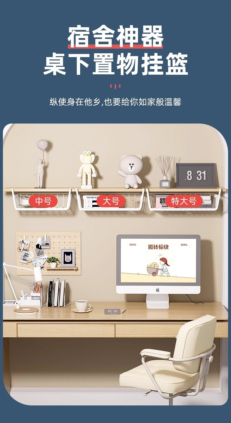 Storage Hanging Basket Dormitory Under-Table Hanging Storage Rack Cabinet Wardrobe Layering Artifact Bedside Hanging Storage Basket