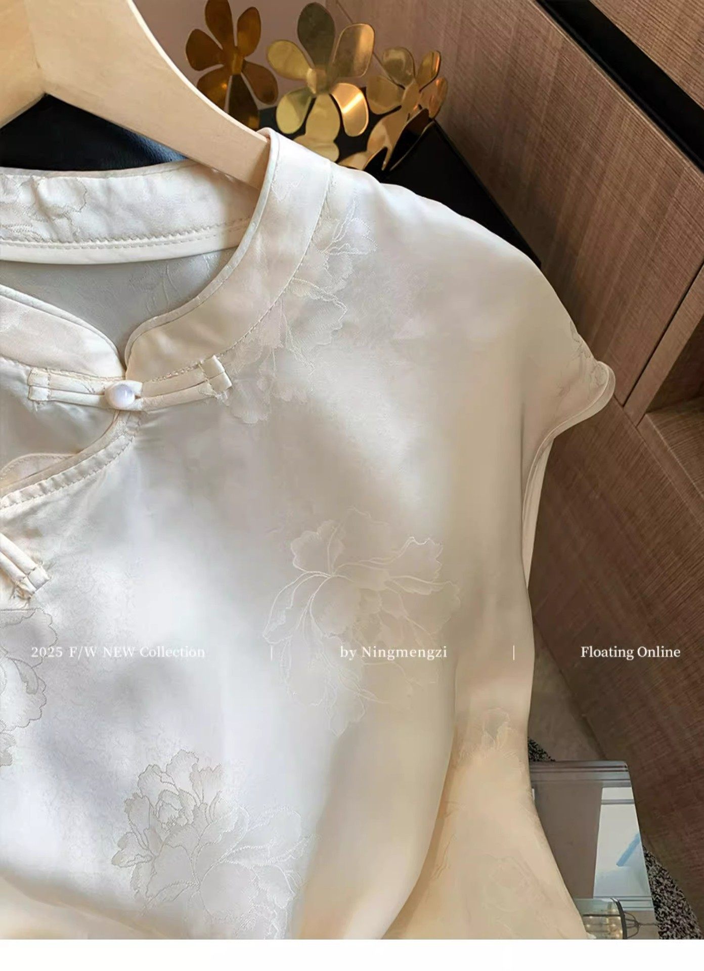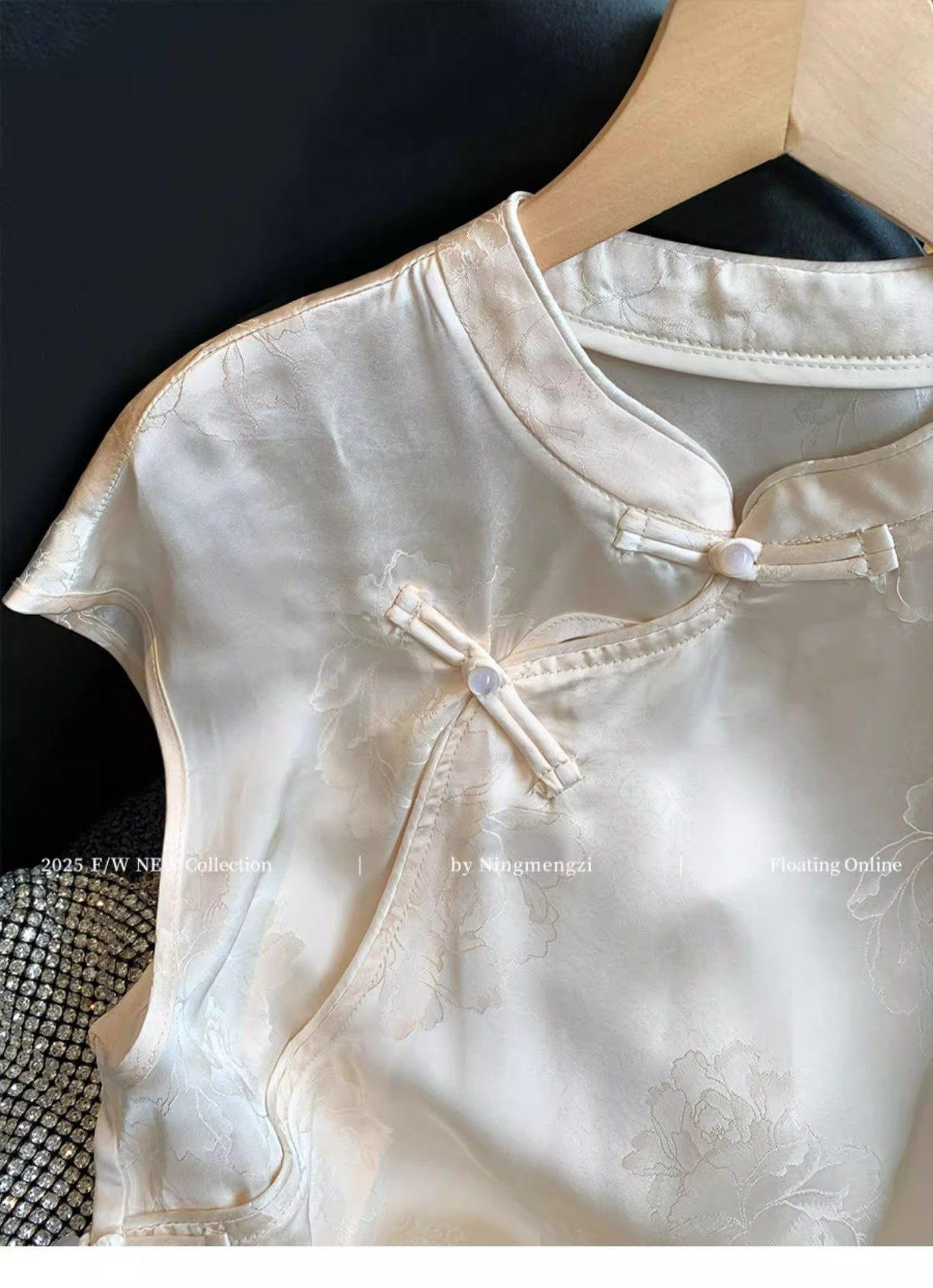 New Chinese Style Cut Out Embroider Oblique Placket Button Sleeveless Shirt for Women 2025 Summer New Cool Elegant Top