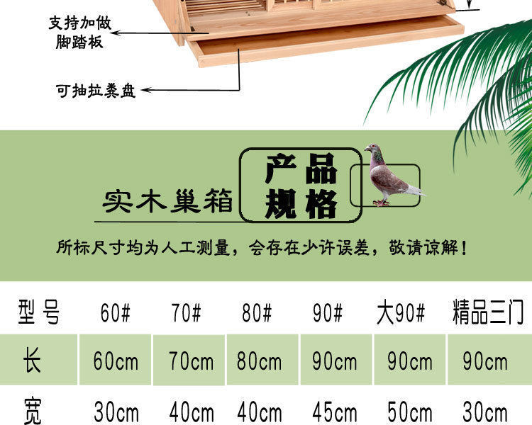 | Color | Transparent small report cage,Milky white 60 saifei 60*30*35,Flip-up door 70*40*40,Flip-up door 80*40*45,Flip-up door 90*45*50,Sliding door 60*30*35,Sliding door 70*40*40,Sliding door 80*40*45,Sliding door 90*45*50,New light-proof door 60*30*35,New light-proof door 70*40*40,New light-proof door 80*40*45,New light-proof door 90*45*50,Push-pull half louver 80*40*45,Push-pull half louver 90*45*50,Half louver plus egg tray 80*40*45,Half louver plus egg tray 90*45*50,Push-pull full louver 70*40*40,Push-pull full louver 80*40*45,Push-pull full louver 90*45*50,Full louver plus egg mop 80*40*45,Full louver plus egg mop 90*45*50,Lotus color colorful 80*40*45,Gray three-door racing 90*30*35,Chocolate color full waterproof board 90*50*50,Rose red colorful 90*45*50,Bamboo 80-40-45 sliding door,Bamboo wood 90-30-35 flip-up door,Bamboo wood waterproof 90-50-50 plus egg tray |