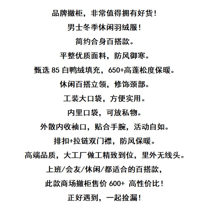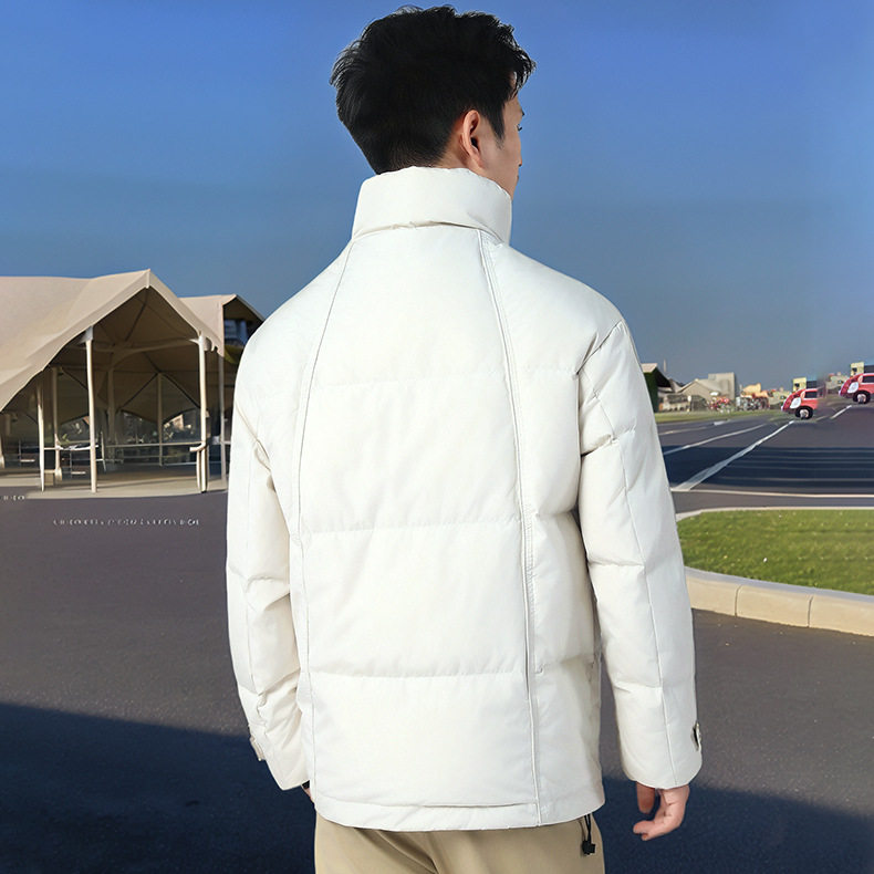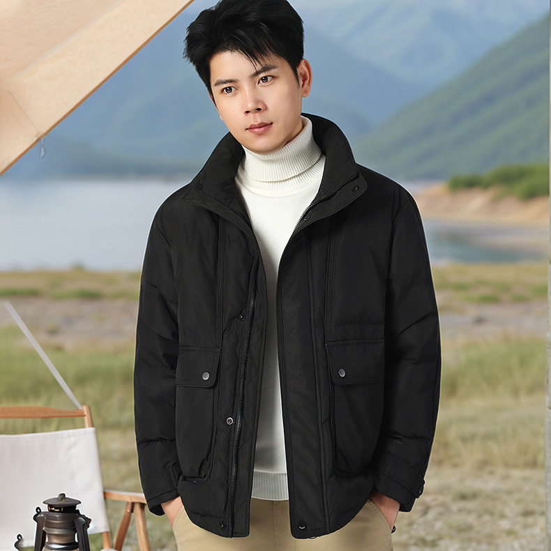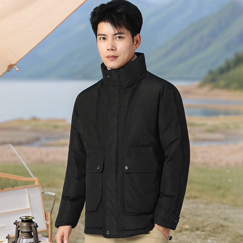 Dropshipping Short down Jacket for Men, Winter Stand Collar with Large Pockets, White Duck Down, Windproof and Warm Coat G181