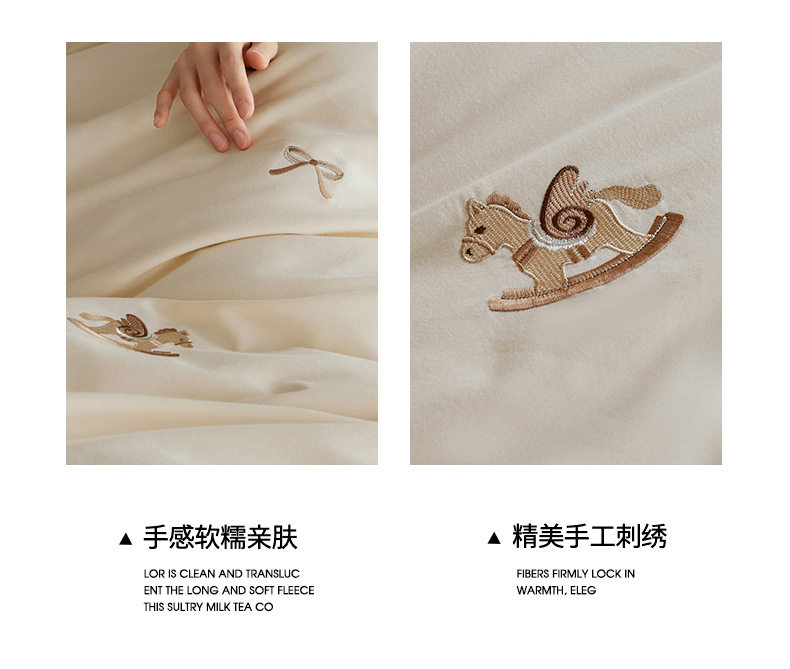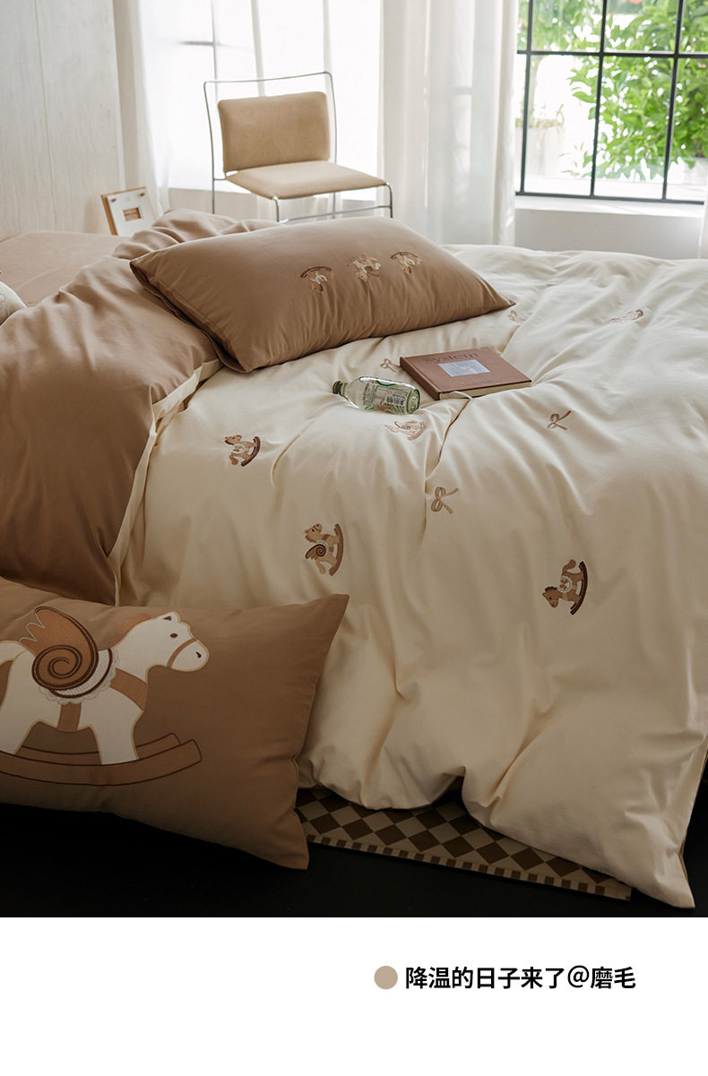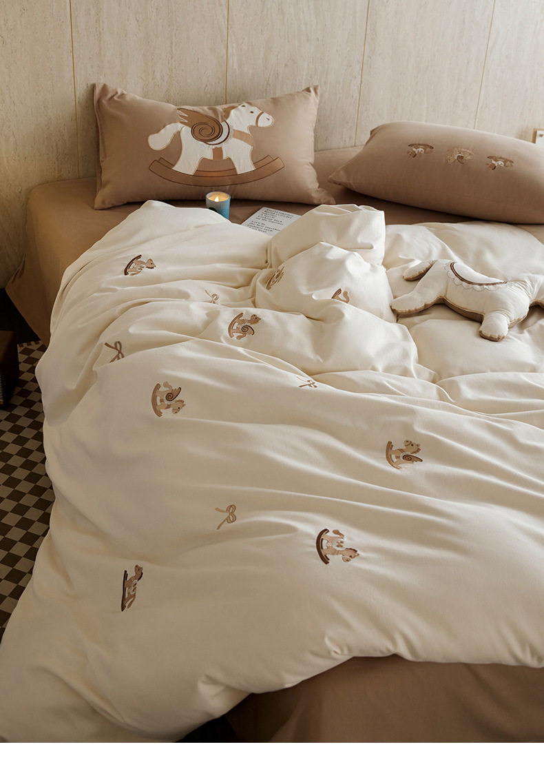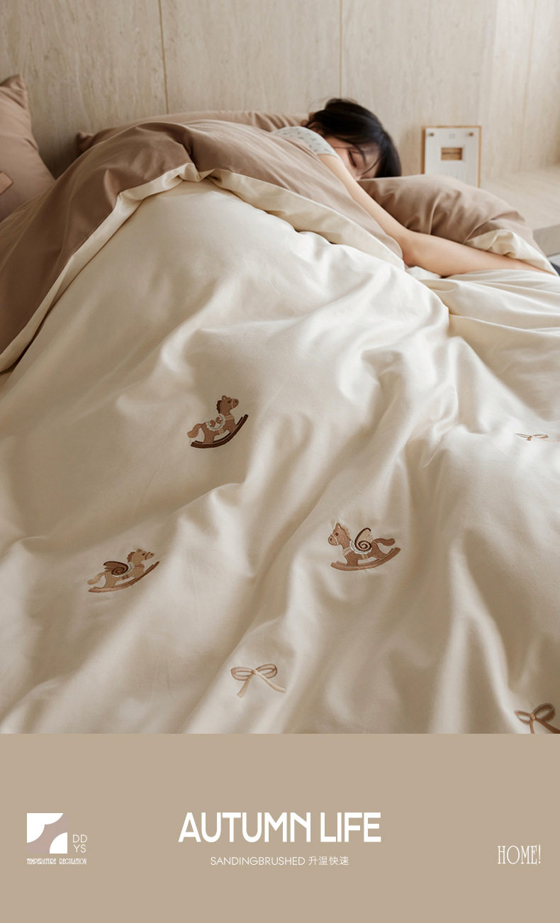 Autumn and Winter Cartoon Embroidered Cotton Brushed Four-Piece Bedding Set, Class a Pure Cotton Warm Quilt Cover Bedding Set