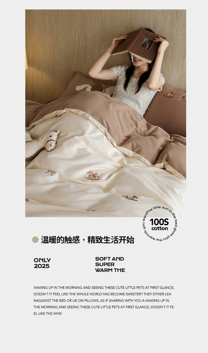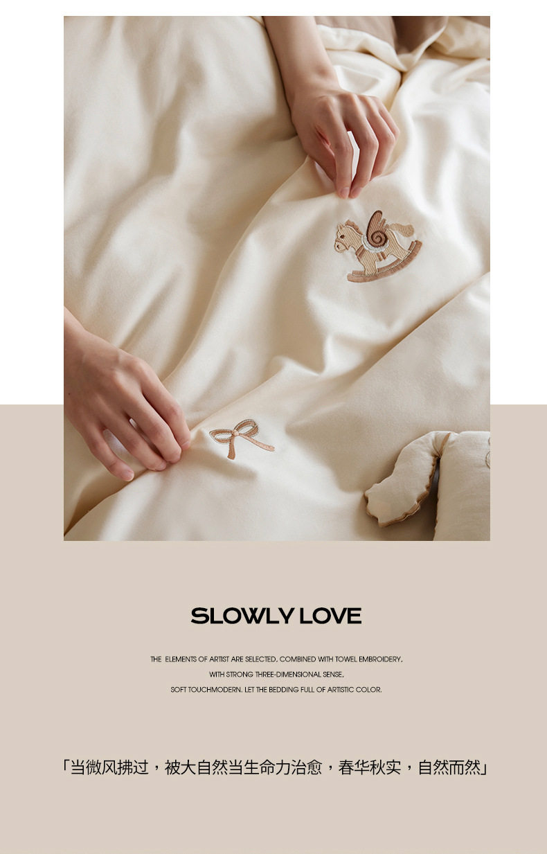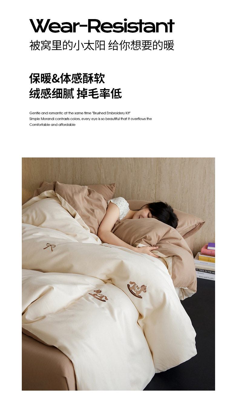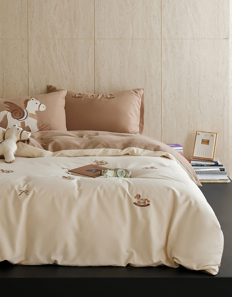 Autumn and Winter Cartoon Embroidered Cotton Brushed Four-Piece Bedding Set, Class a Pure Cotton Warm Quilt Cover Bedding Set
