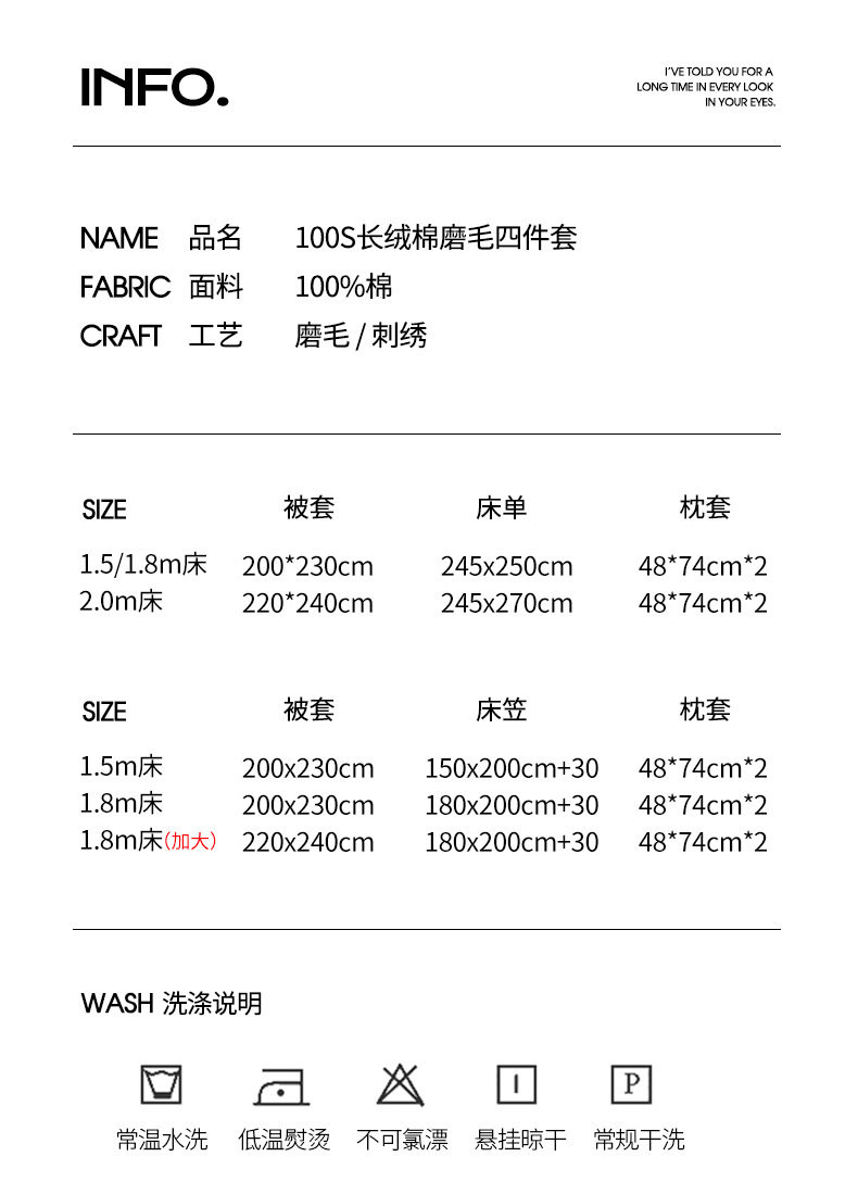 | Size specifications | 1.2m bed sheet three-piece set [quilt cover 150*200cm],1.5m bed sheet four-piece set [quilt cover 200*230cm],1.8m bed sheet four-piece set [quilt cover 200*230cm],2.0m bed sheet four-piece set [quilt cover 220*240cm],1.5m fitted sheet set of four [quilt cover 200*230cm],1.8m fitted sheet set of four [quilt cover 200*230cm],1.8m quilt cover and extra fitted sheet set of four [quilt cover 220*240cm] |