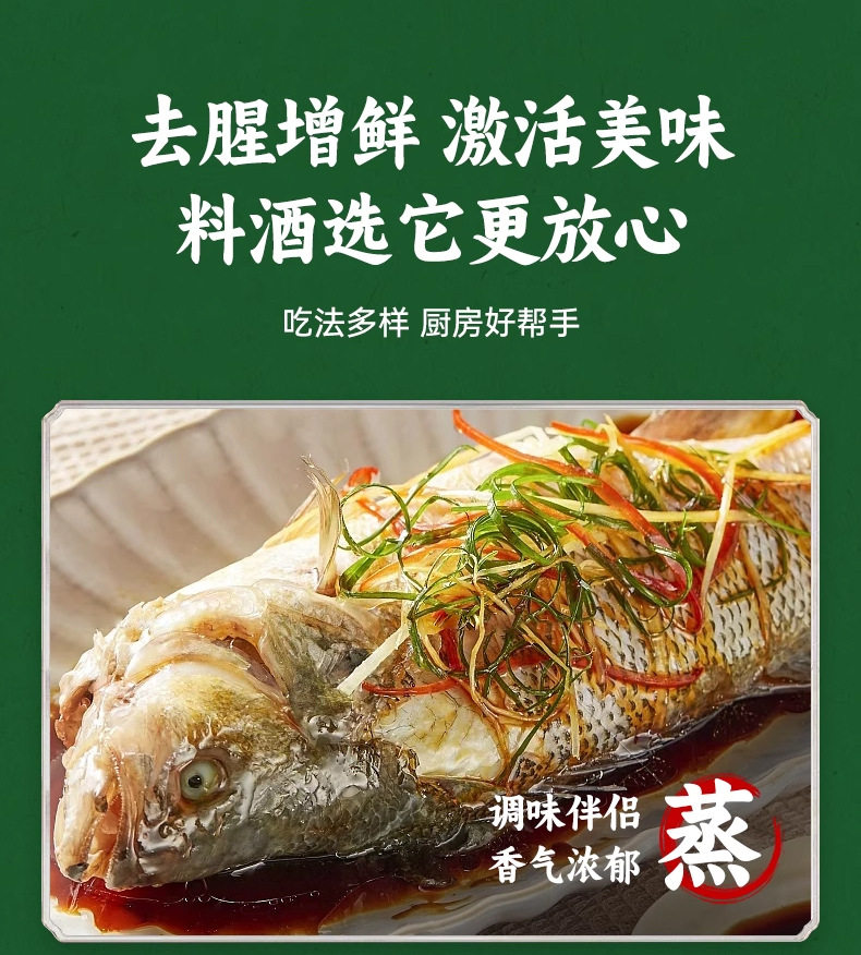 | Packaging specifications | Organic wuliang cooking wine 480ml |