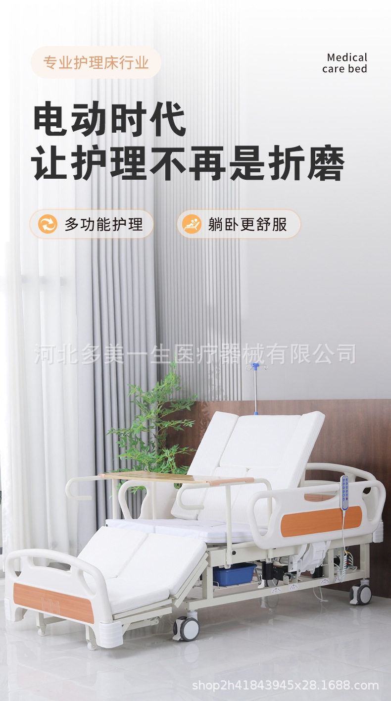 Electric Multifunctional Nursing Bed, Hand-Held Integrated Nursing Bed, Electric Back-Turning Bed with Toilet Hole, Home Nursing Bed