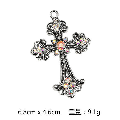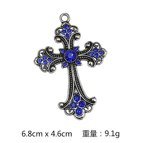 Cross-Border Personalized Retro Fashion Flash Diamond Alloy Necklace Cross Necklace Pendant DIY Necklace Accessories Wholesale