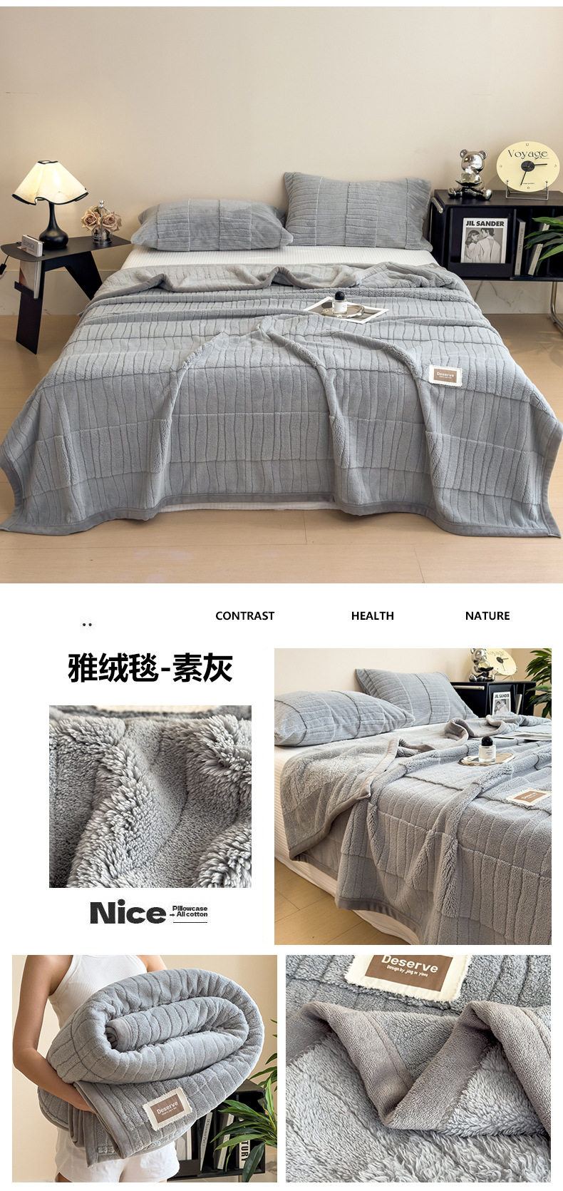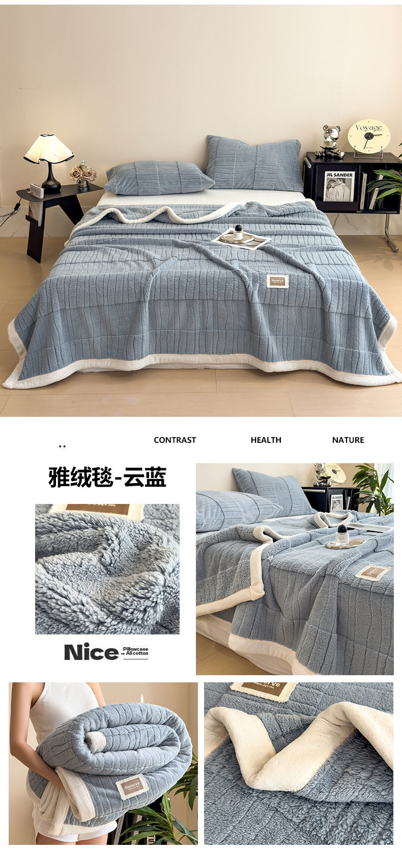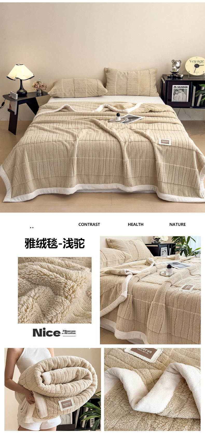 | Color | Good quality blanket-elegant velvet blanket-plain gray,Good quality blanket-elegant velvet blanket-cotton powder,Good quality blanket-elegant velvet blanket-warm gray,Good quality blanket-elegant velvet blanket-light camel,Good quality blanket-elegant velvet blanket-roumi,Good quality blanket-elegant velvet blanket-yunlan |