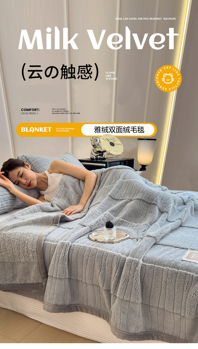 Class a Thickeneded Velvet Double-Sided Velvet Blanket, Velvet Blanket, Nap Blanket, Milk Velvet Blanket, Skin-Friendly and Suitable for Sleeping Naked