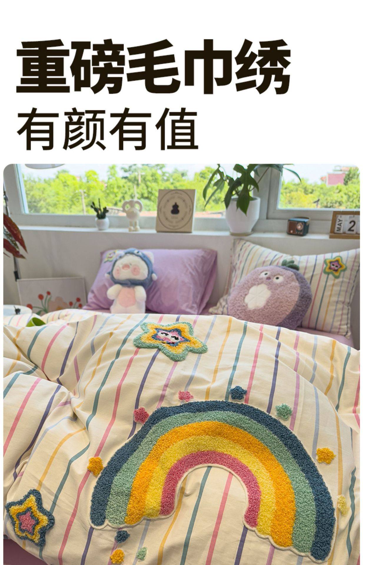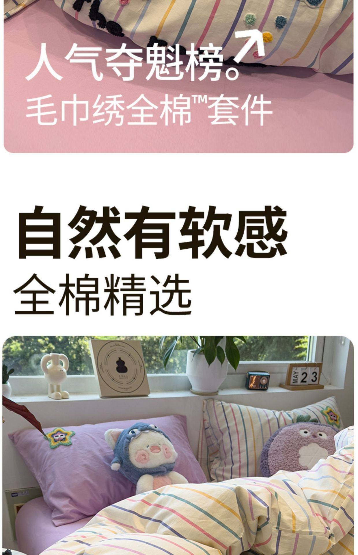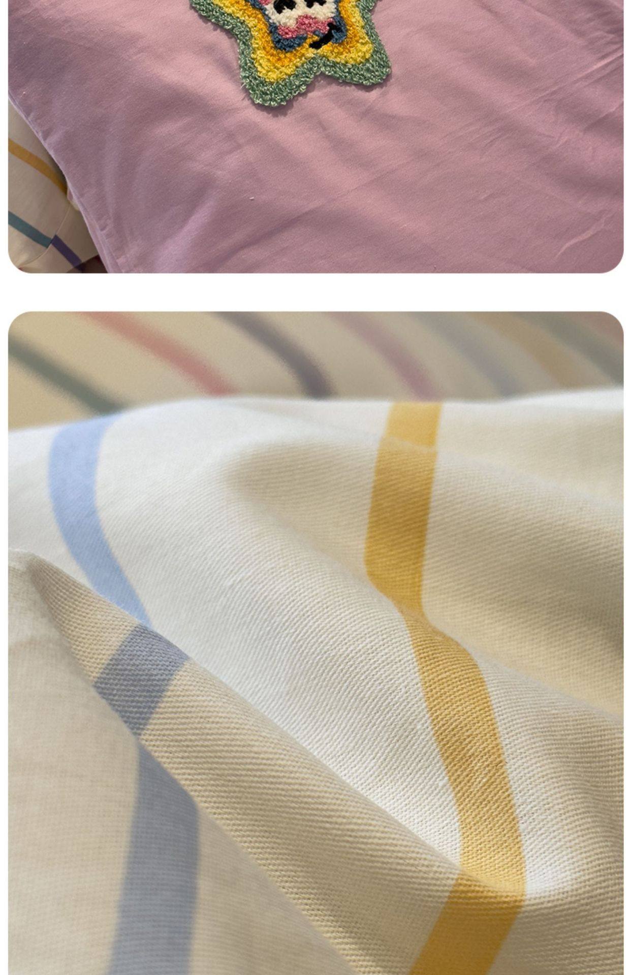 Ins Style Cartoon Towel Embroidered 100 Pure Cotton Four-Piece Set 1.5m 1.8m Student Bed Bed Sheets Quilt Cover Dormitory Three-Piece Set