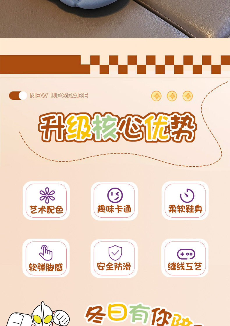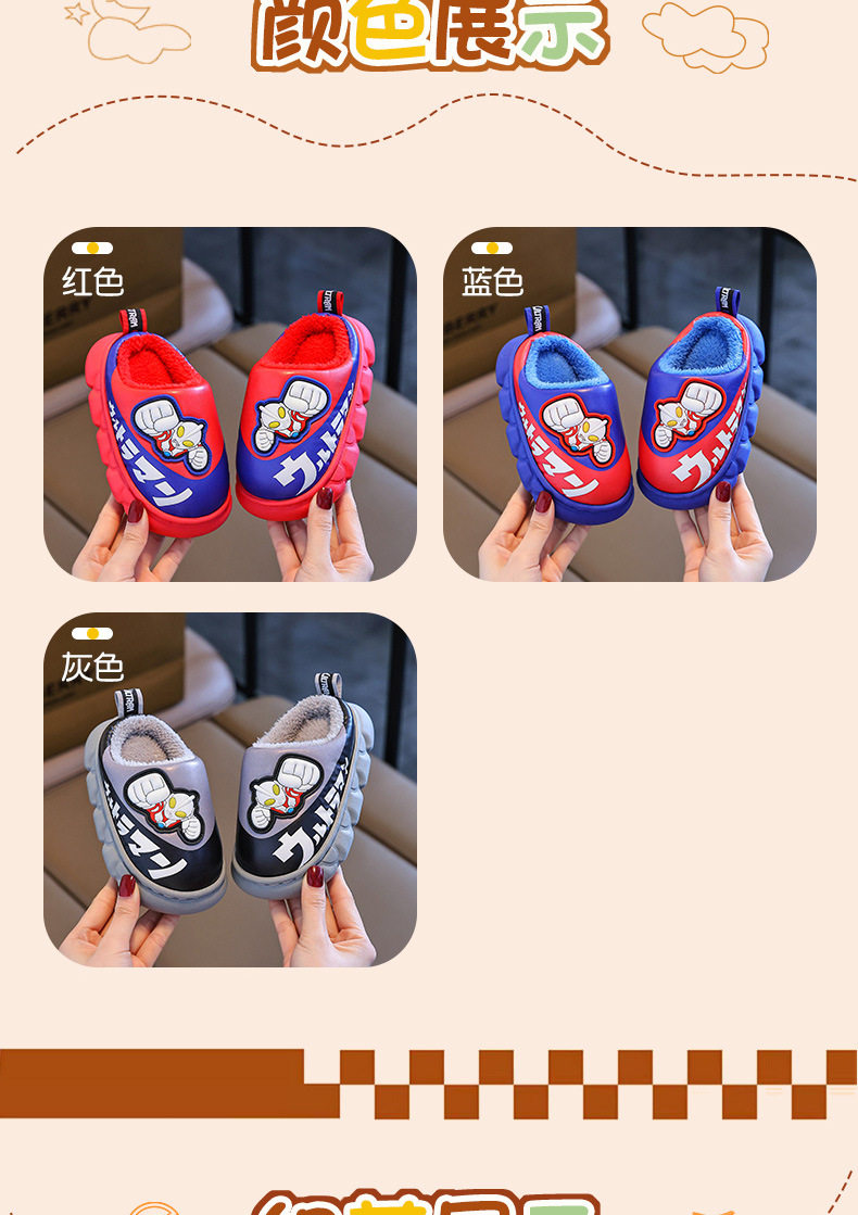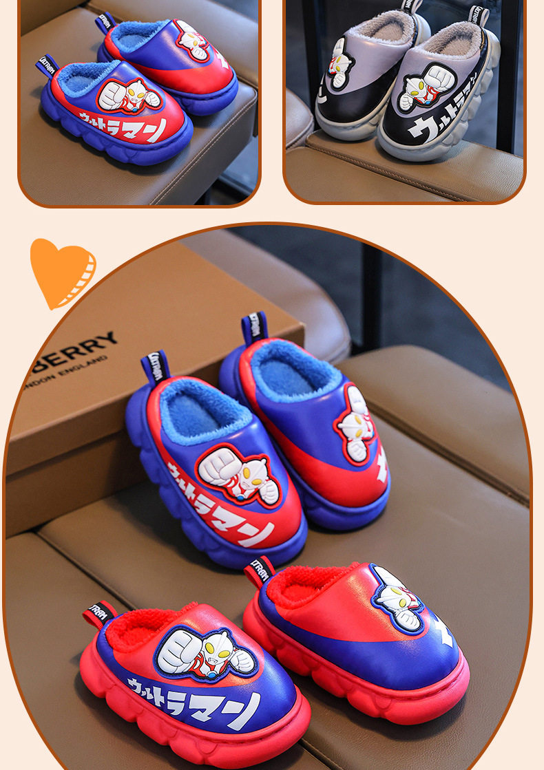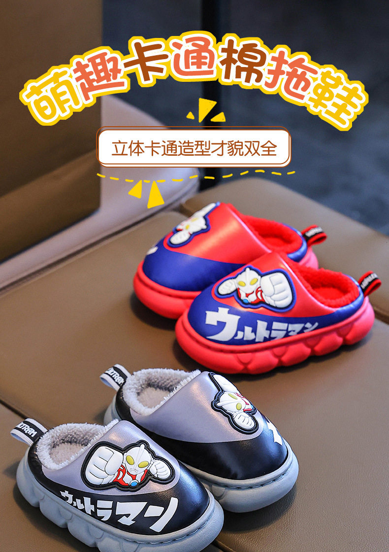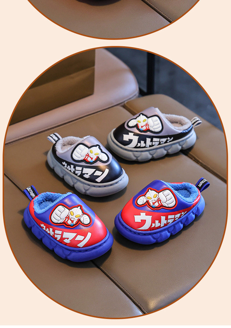 Ultraman Kidsren's Cotton Slippers for Autumn and Winter Boys' Cartoon Indoor Non-Slip Home Leather Waterproof Baby Cotton Slippers