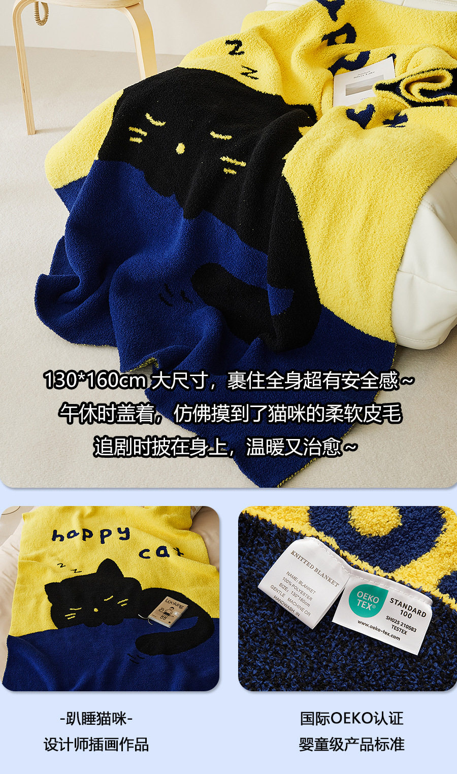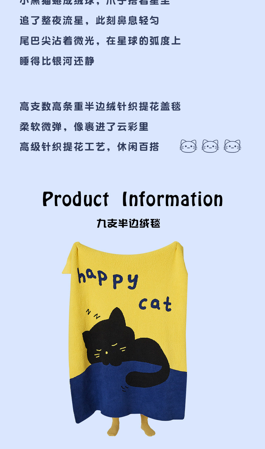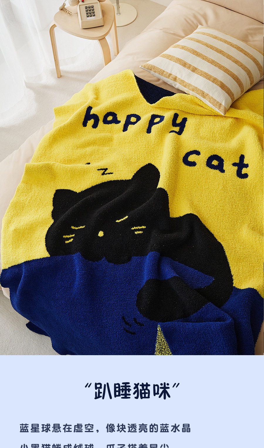 New Illustration Cartoon Sleeping Cat Half Velvet Blanket Home Leisure Blanket Office Lunch Blanket Contrasting Color Blanket