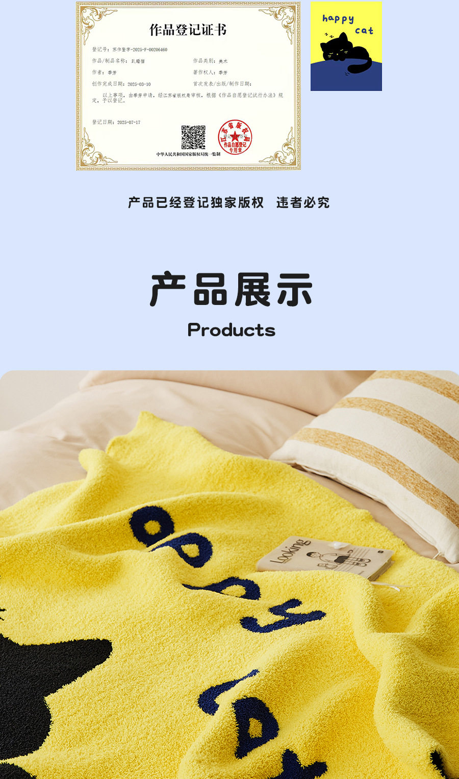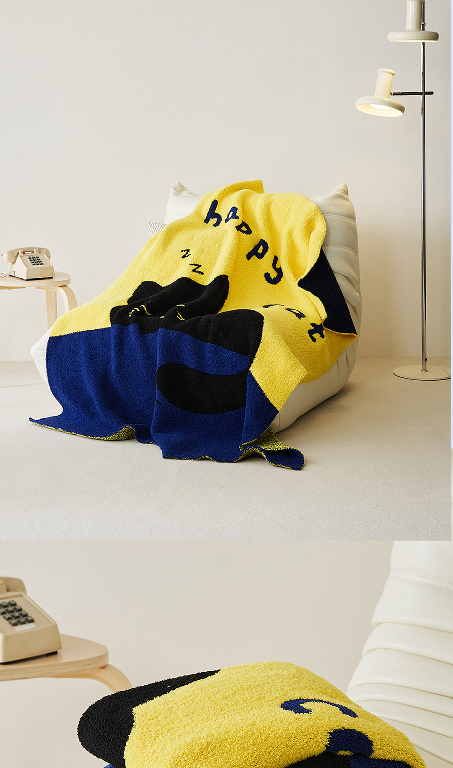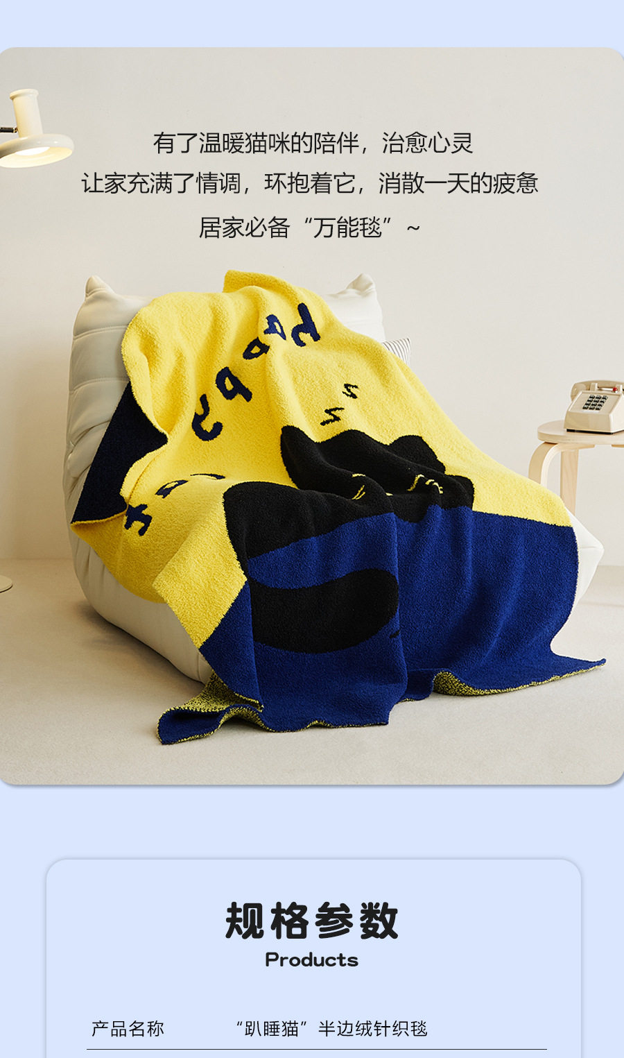 New Illustration Cartoon Sleeping Cat Half Velvet Blanket Home Leisure Blanket Office Lunch Blanket Contrasting Color Blanket
