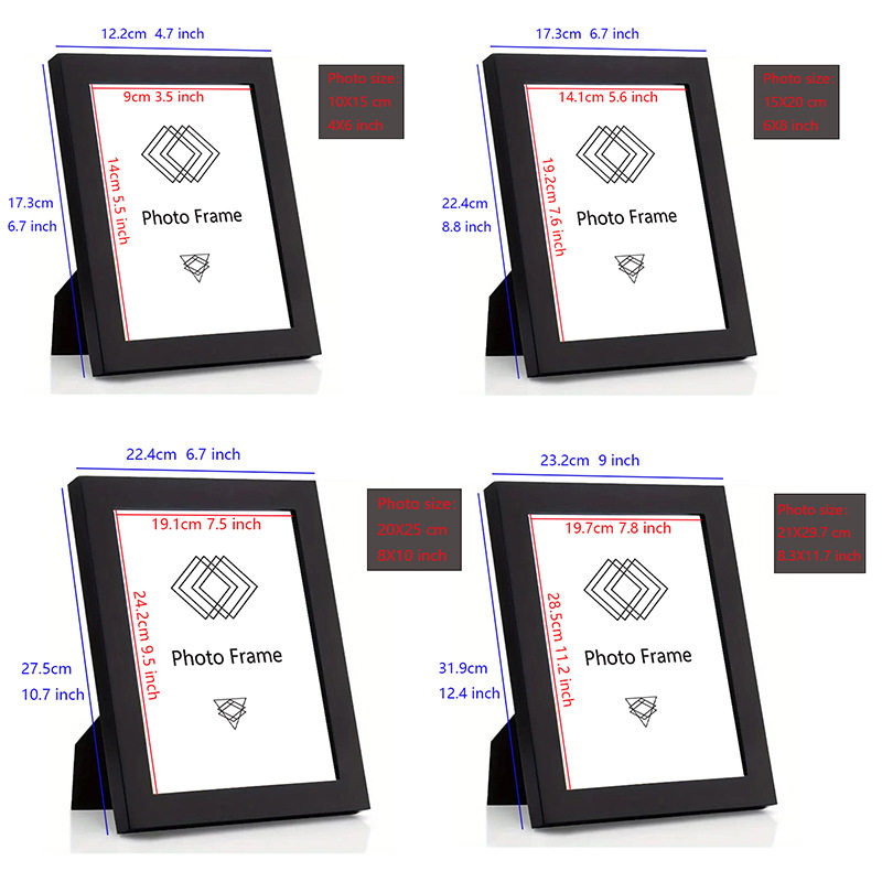 | Frame size | 4*6inch [inner diameter 10.1*15.2cm] dual-purpose for hanging and hanging,5*7inch [inner diameter 12.7*17.8cm] dual-purpose for hanging and hanging,6*8inch [inner diameter 15.2*20.3cm] dual-purpose for hanging and hanging,8*10inch [inner diameter 20.3*25.4cm] dual-purpose for hanging and hanging,8.5*11inch [inner diameter 20.5*27.9cm] dual-purpose for hanging and hanging,A4 [inner diameter 21*29.7cm] dual-purpose for hanging and displaying,A3 [inner diameter 29.7*42cm] wall-mounted model,16inch [inner diameter 30*40cm] wall-mounted model |