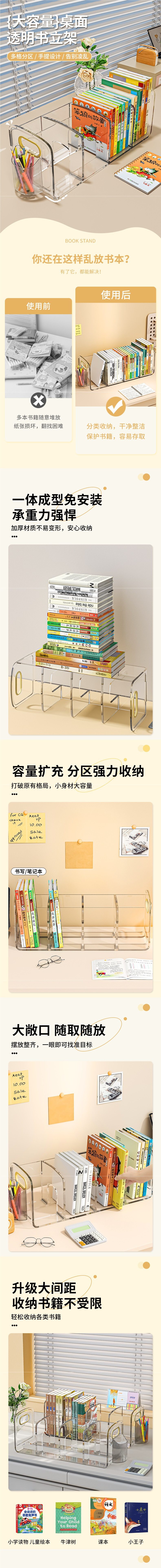 Transparent Book Stand Reading Rack Book Clip Desk Bookshelf Desktop Fixed Book Storage Partition Thickened Student Class
