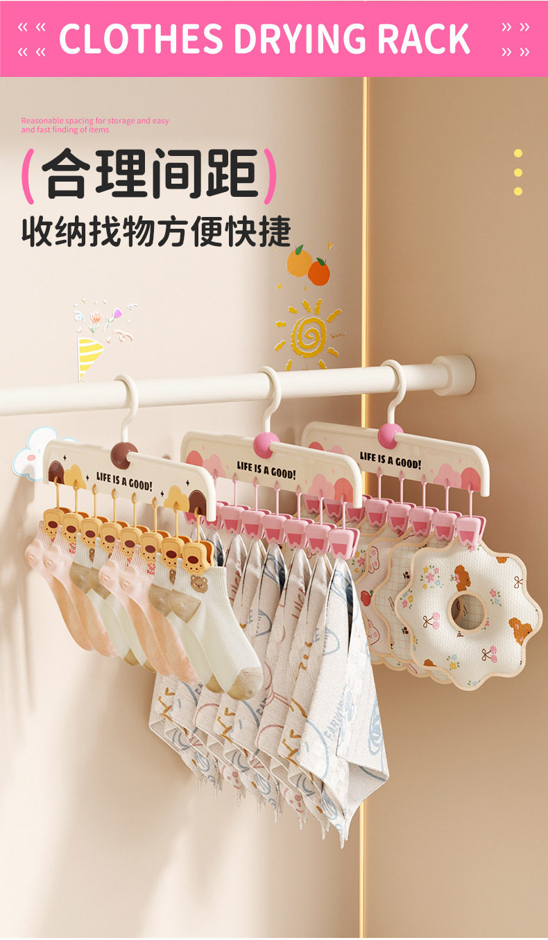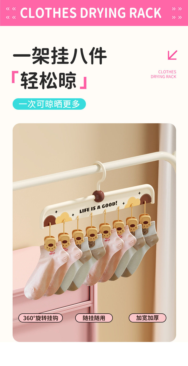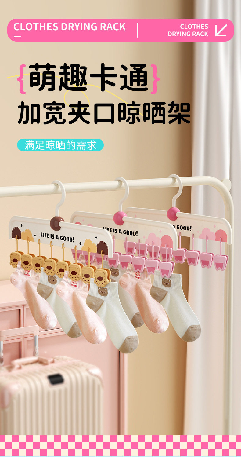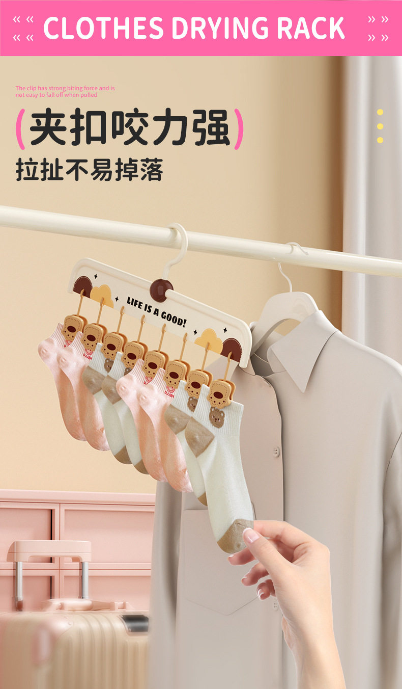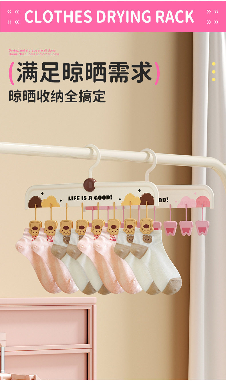 [Patented Model]Animal Sock Clips Multi-Clip Clothes Drying Rack Non-Slip Seamless Drying Rack Underwear Hanger