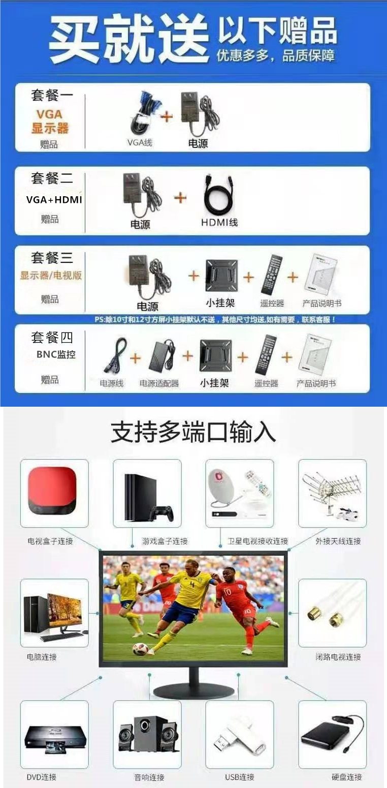 Specifications Package 1 computer vga,Package 2 vga+hdmi without sound,Package three tv,Package four bnc monitoring