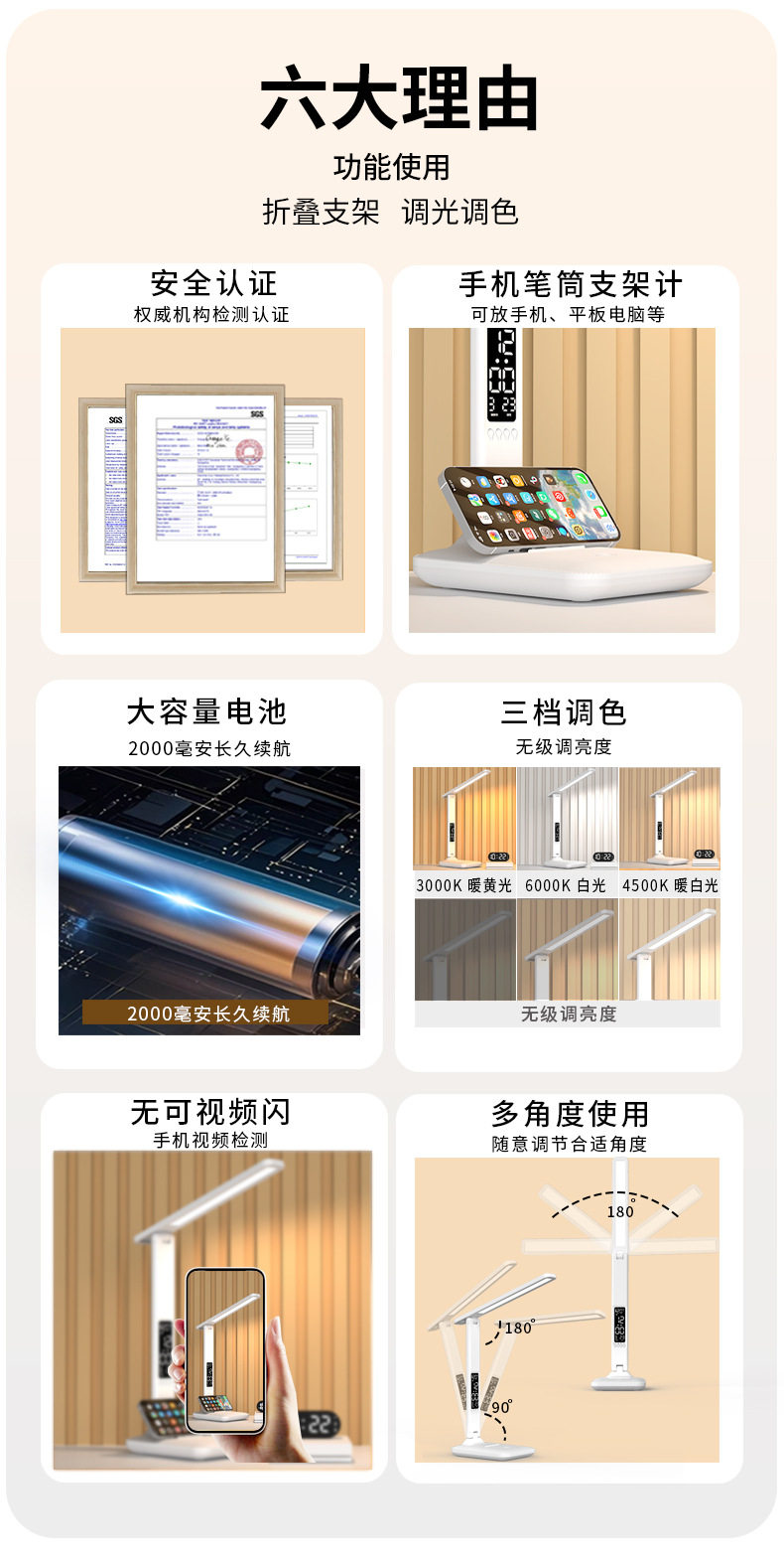 Desk Lamp for Studying, Special for College Students Dormitory, Eye Protection, Rechargeable Bedside Lamp, Desk Reading, Multifunctional Led Lamp