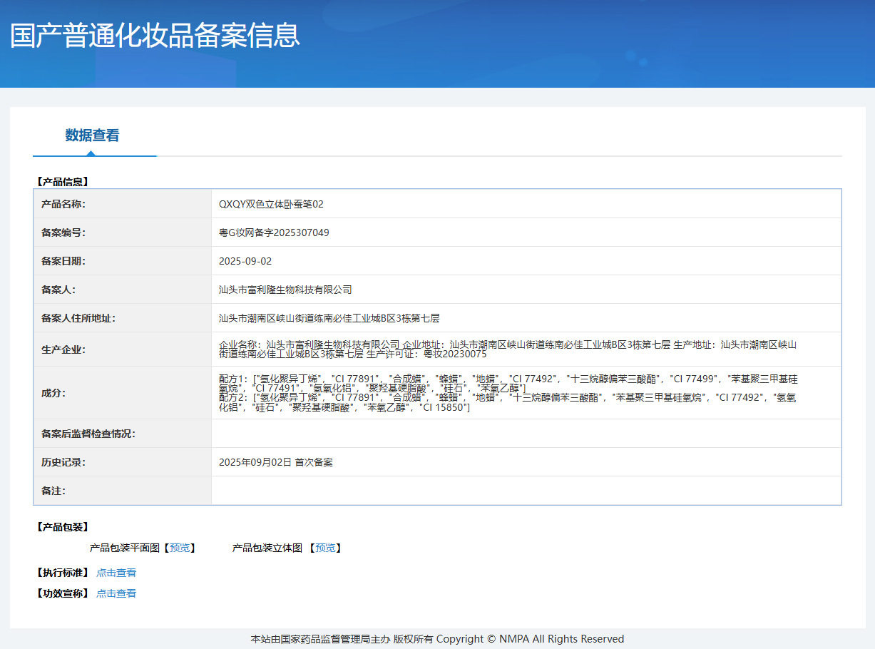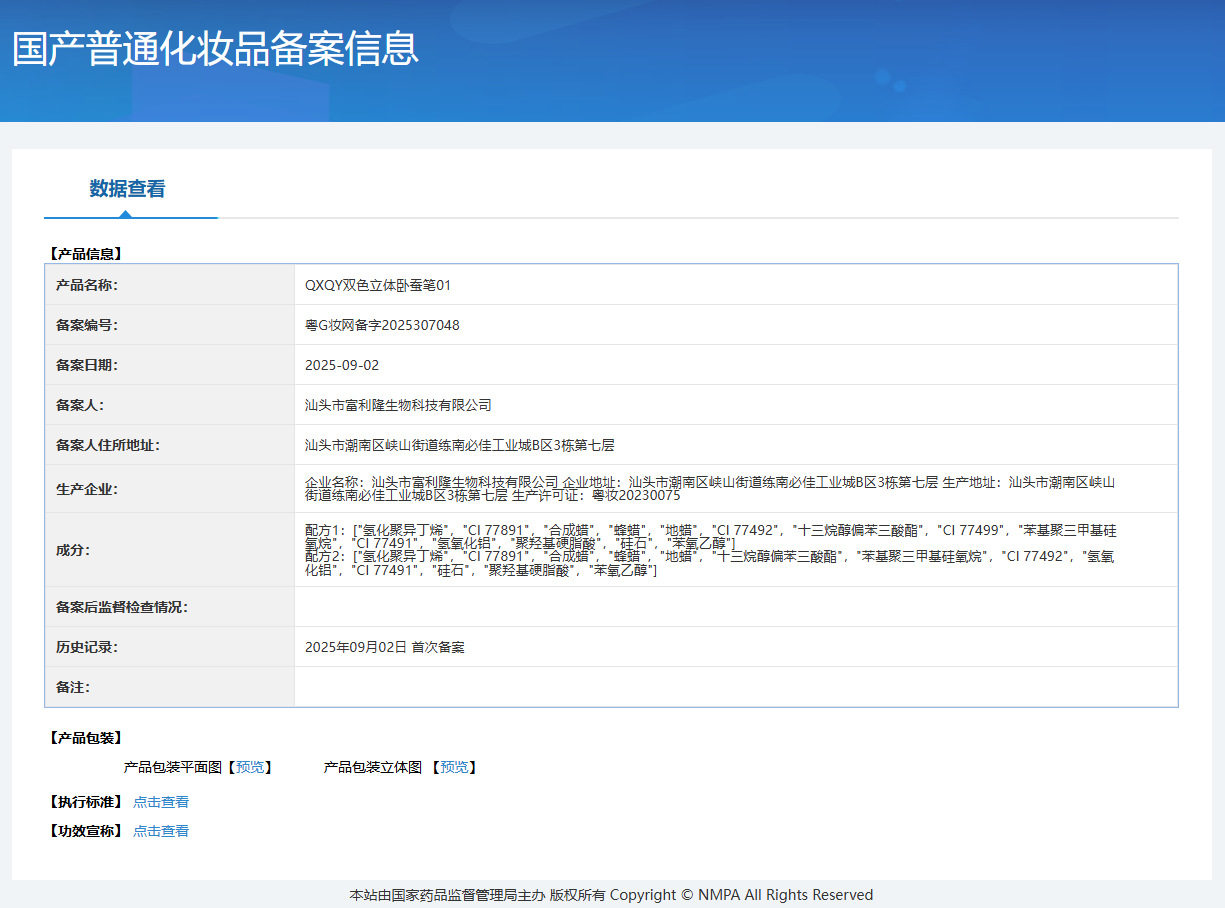 | Non-special cosmetics registration certificate number | Guangdong g makeup network preparation number 2024269785 |