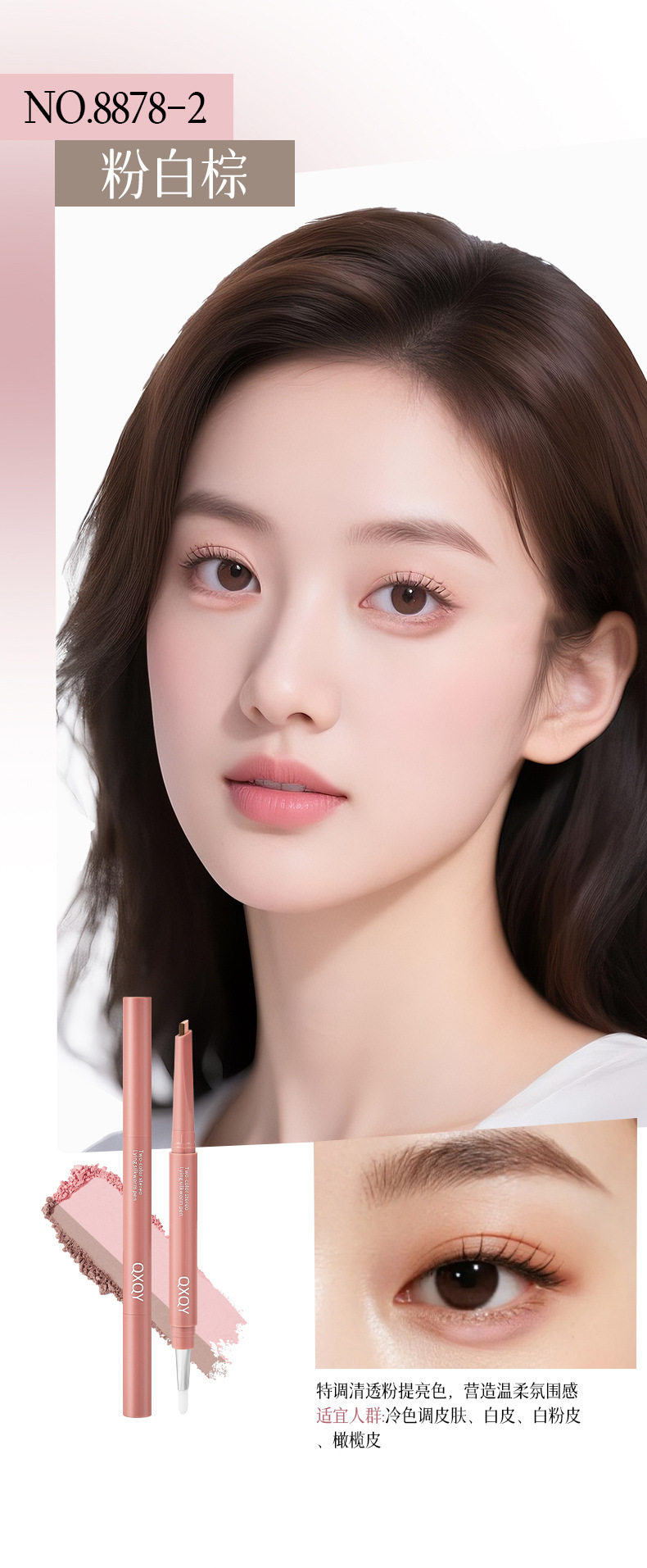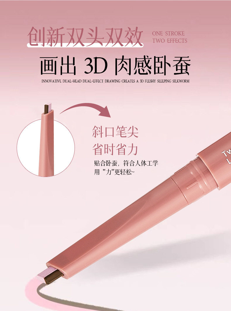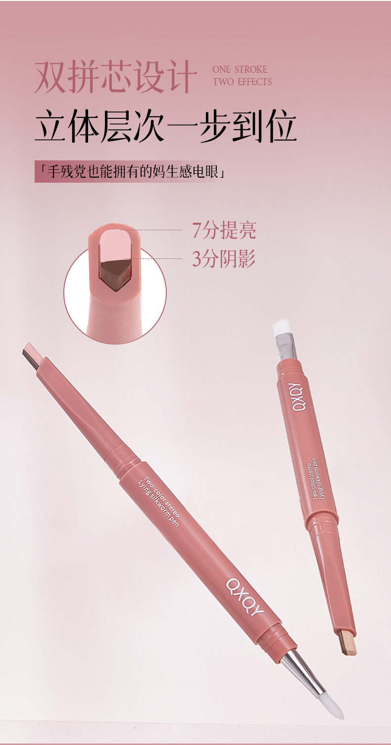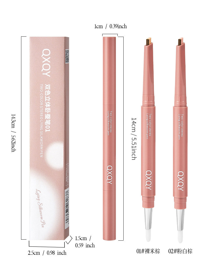 Qxqy Two-Color Stereo Silkworm Pen, Natural Long-Lasting Makeup, Easy to Color, Highlight and Brighten, Double-Ended Two-In-One Waterproof Silkworm Pen