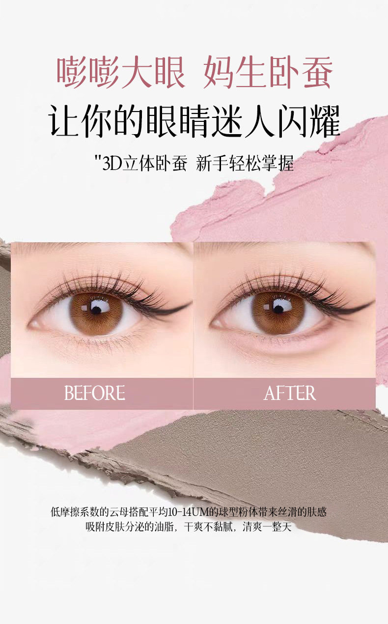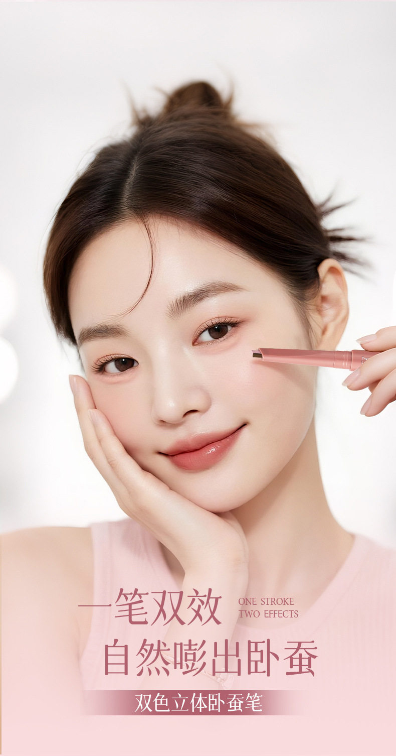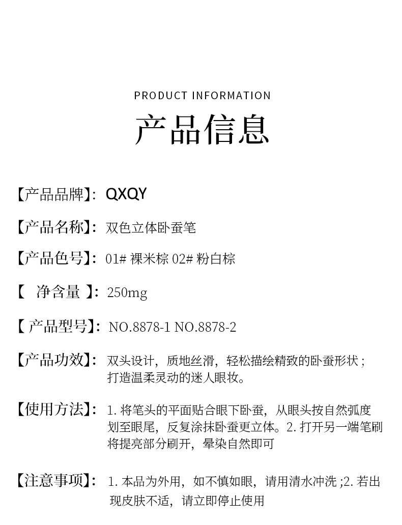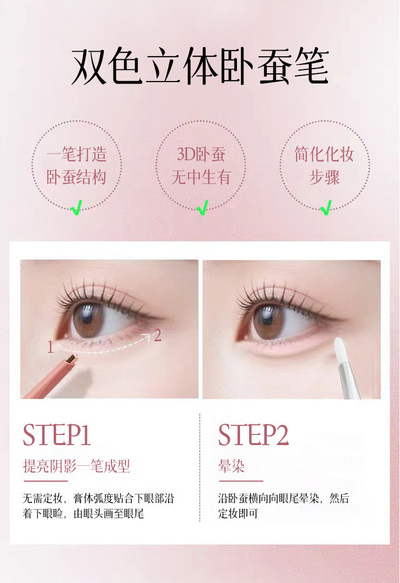 Qxqy Two-Color Stereo Silkworm Pen, Natural Long-Lasting Makeup, Easy to Color, Highlight and Brighten, Double-Ended Two-In-One Waterproof Silkworm Pen