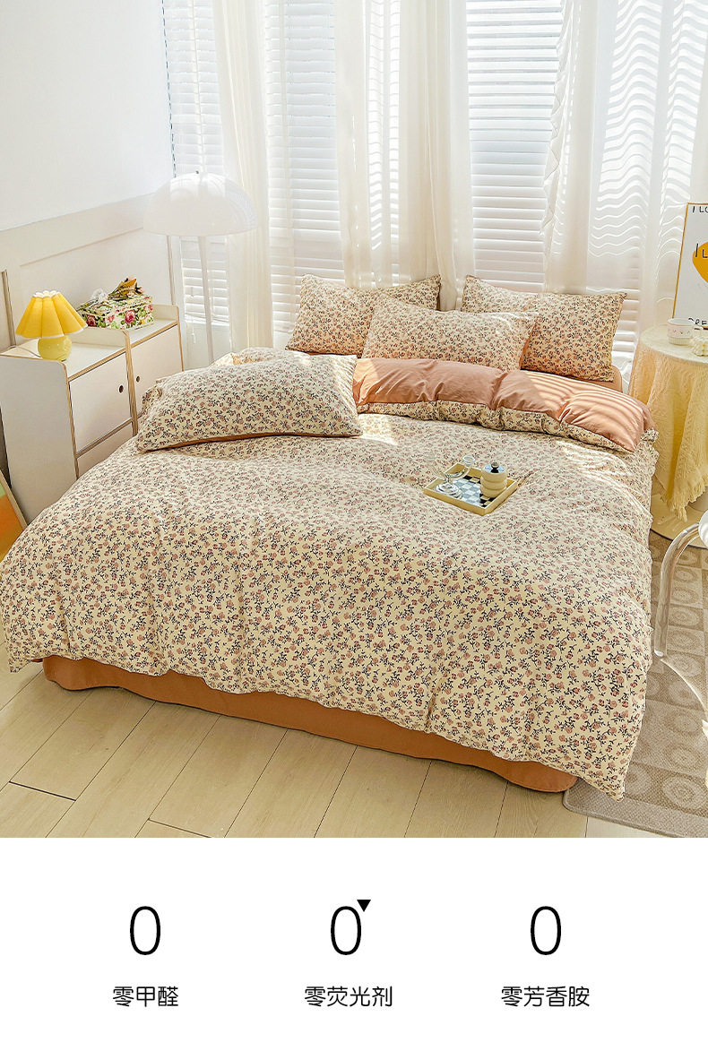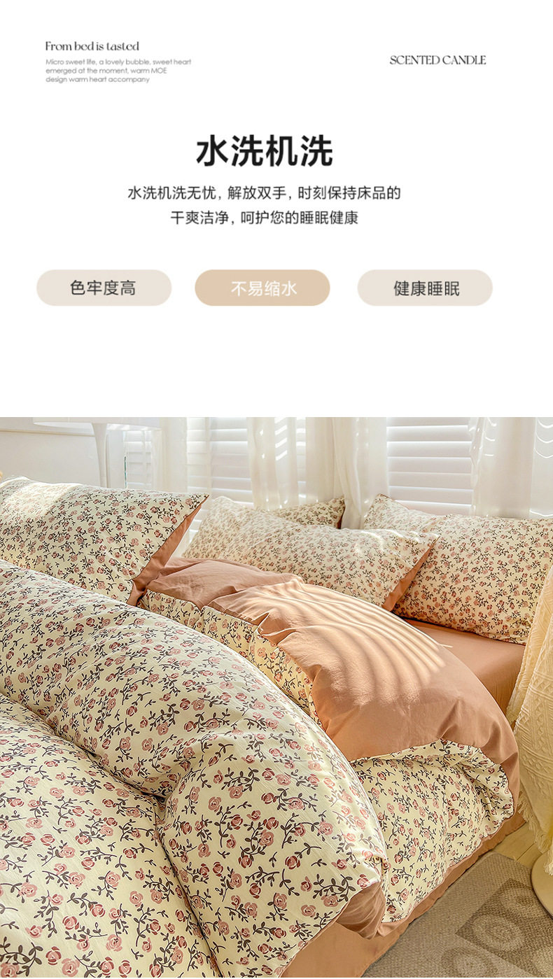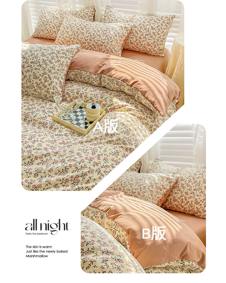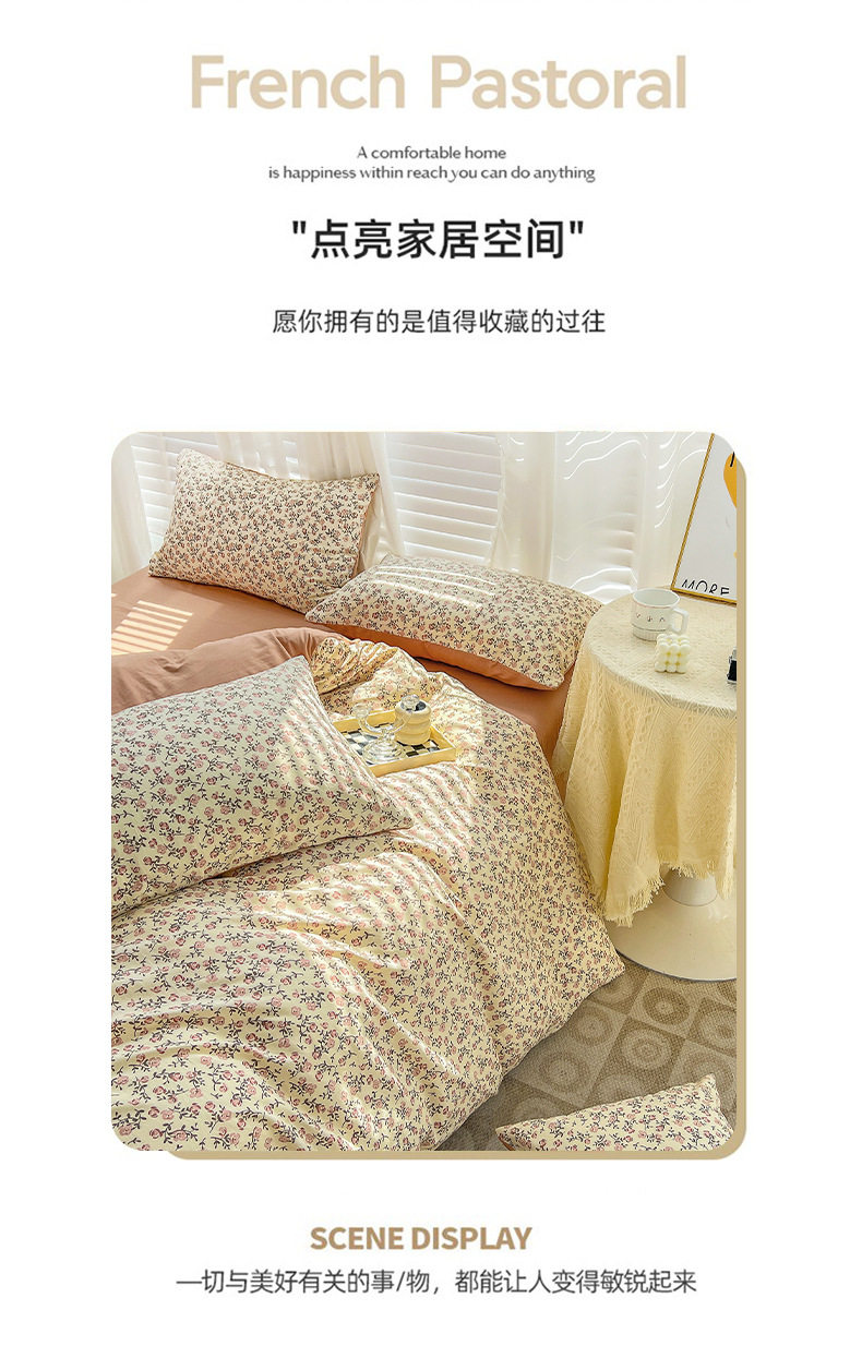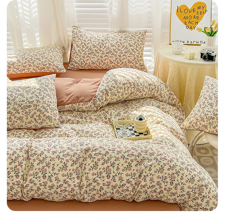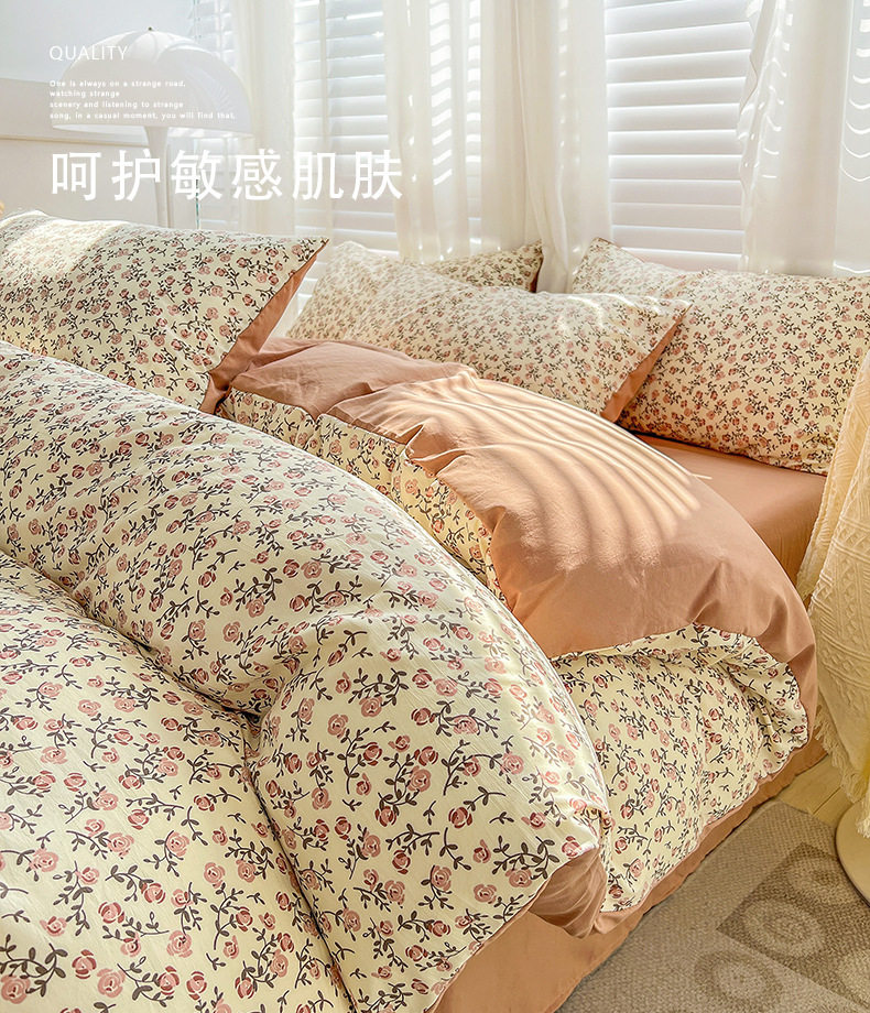 Category a Maternal and Infant Grade Double-Layer Yarn Cotton and Linen Washed Cotton Four-Piece Set French Small Floral Quilt Cover Three-Piece Bed Bed Sheets Set