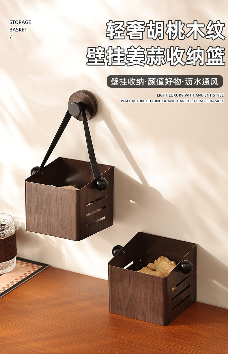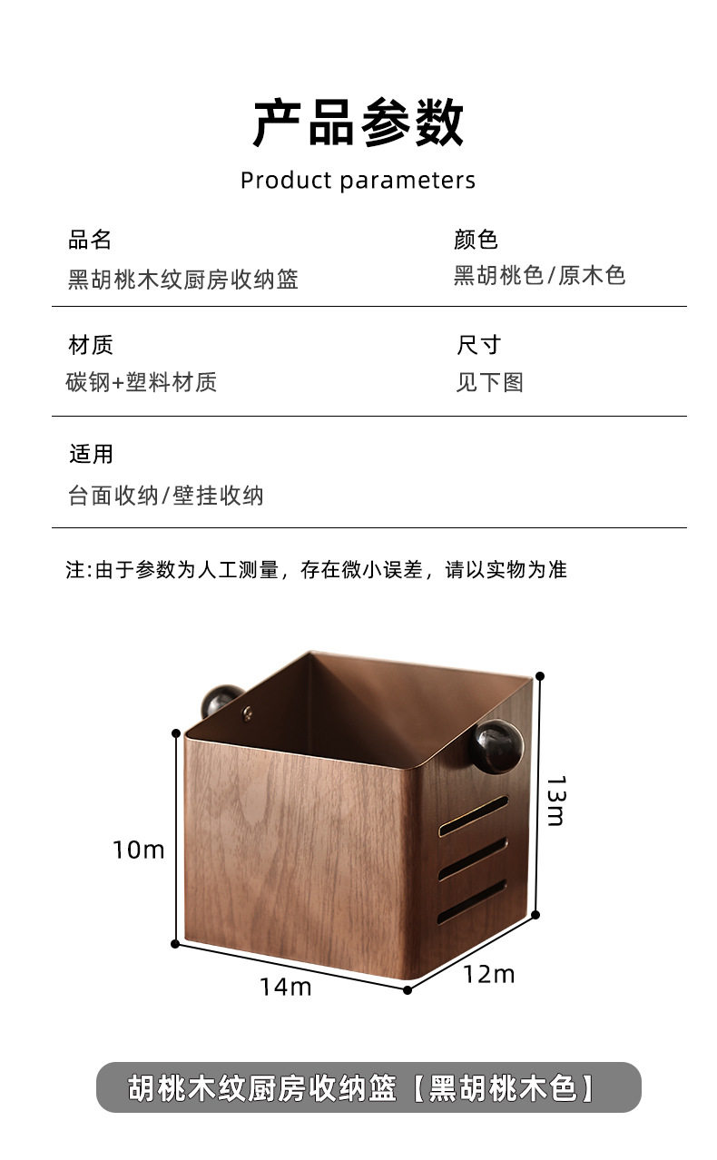 | Color | Walnut grain kitchen storage basket [black walnut color],Walnut grain kitchen storage basket [black walnut color] with hook,Walnut grain kitchen storage basket [raw wood color],Walnut grain kitchen storage basket [raw wood color] with hook |