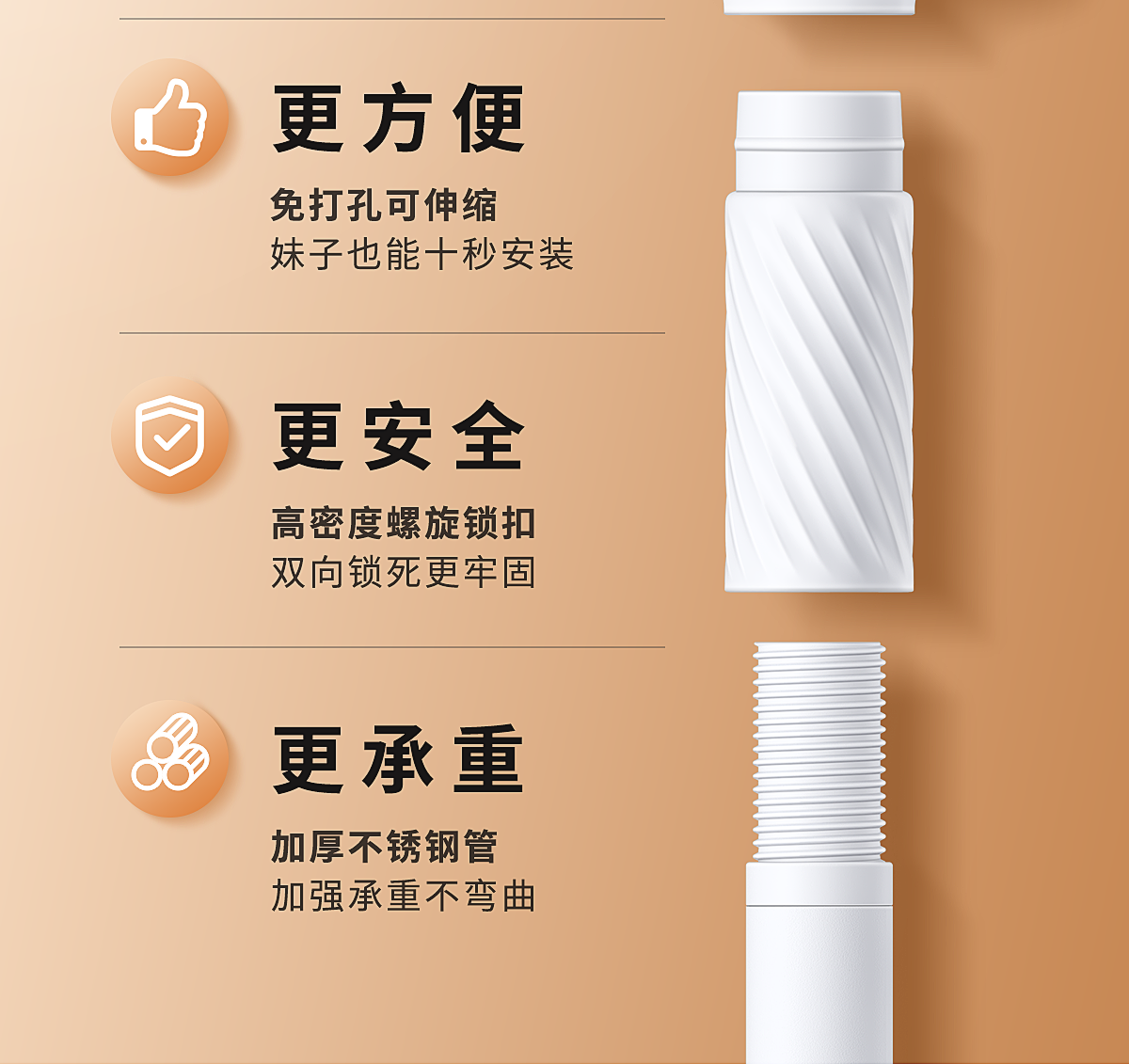 | Color | Simple white [27 diameter] stainless steel material,Black [27 diameter] stainless steel material,Pearl white [27 diameter] stainless steel material,Matte black [27 diameter] stainless steel material,Space gray [27mm diameter] stainless steel,Milk tea color [27 diameter] stainless steel material,Fruit green [27 diameter] stainless steel material,[upgraded load-bearing capacity of 33 pipe diameters] thickened pipe diameter doubles the load-bearing capacity (pearl white),[upgraded load-bearing capacity of 33 pipe diameters] thickened pipe diameter doubles the load-bearing capacity (starry sky gray),[upgraded load-bearing capacity of 33 pipe diameters] thickened pipe diameter doubles the load-bearing capacity (stainless steel) |