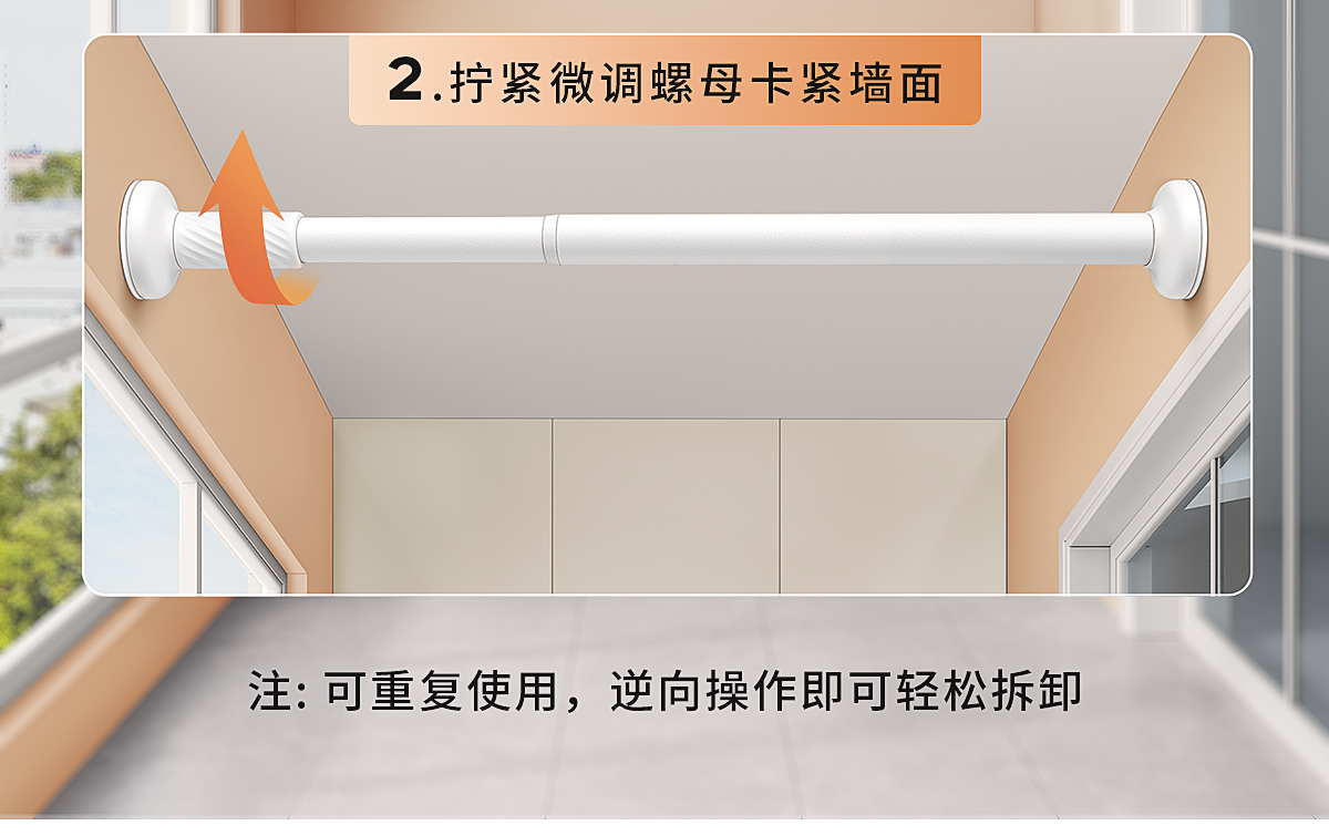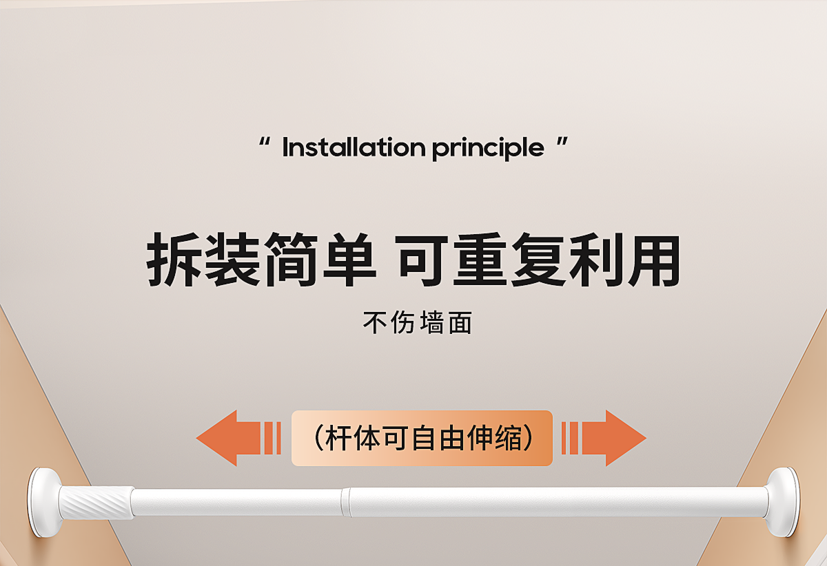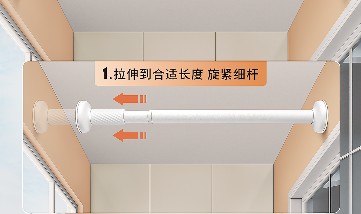 No-Drill Telescopic Rod, No-Nail Clothes Drying Rod, Stainless Steel Curtain Rod, Shower Curtain Rod, Door Curtain, Wardrobe Support Rod