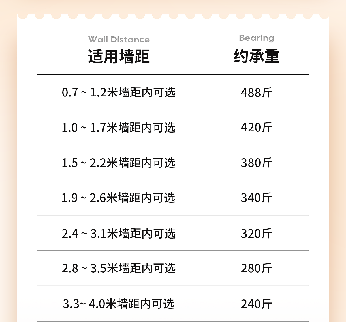 | Specifications | Adjustable: selectable within a wall distance of 0.35 to 0.5m,Scalable: optional within 0.7~1.2m wall distance,Adjustable: selectable within a 0.5 to 0.8m wall distance,Adjustable: selectable within a 1.0 to 1.7m wall distance,Adjustable: selectable within a 1.5 to 2.2m wall distance,Adjustable: selectable within a 1.9 to 2.6m wall distance,Adjustable: selectable within a 2.4 to 3.1m wall distance,Adjustable: selectable within a wall distance of 2.8 to 3.5m,Adjustable: selectable within a 3.3~4.0m wall distance,Adjustable: selectable within a wall distance of 3.7 to 4.4m,Extendable: available within a wall distance of 4.2 to 4.9m |