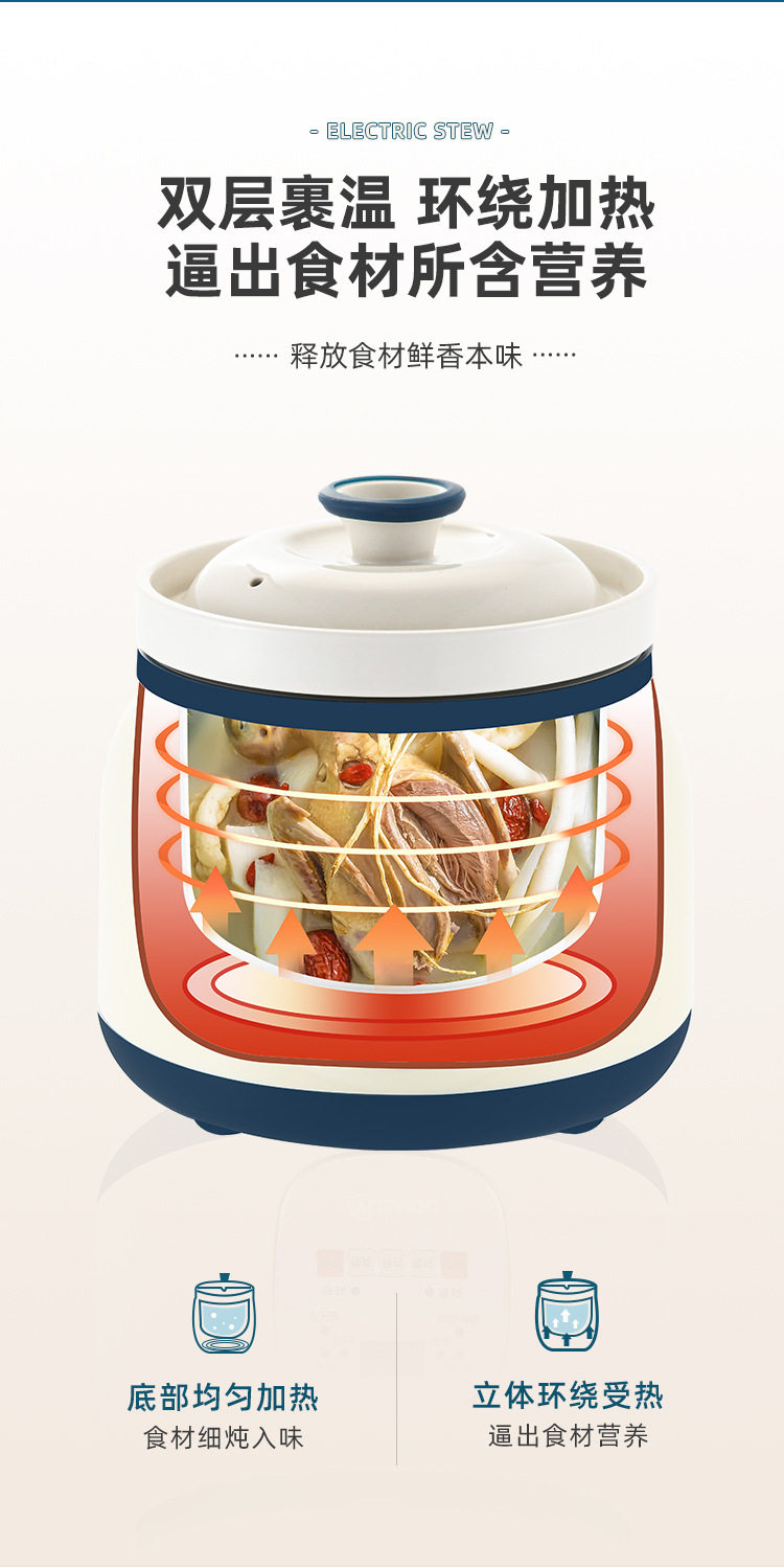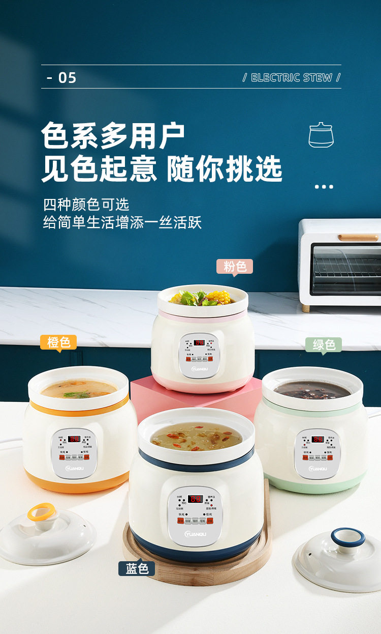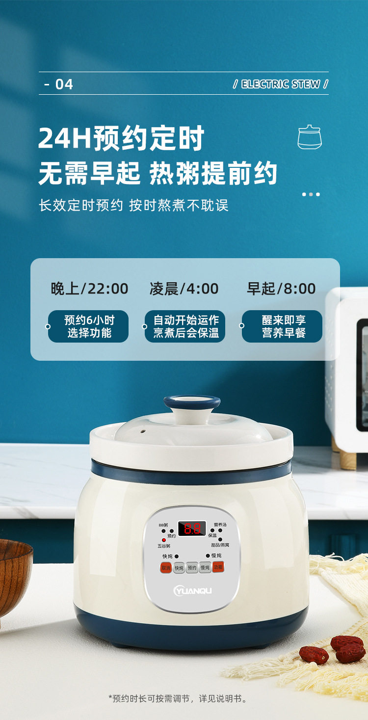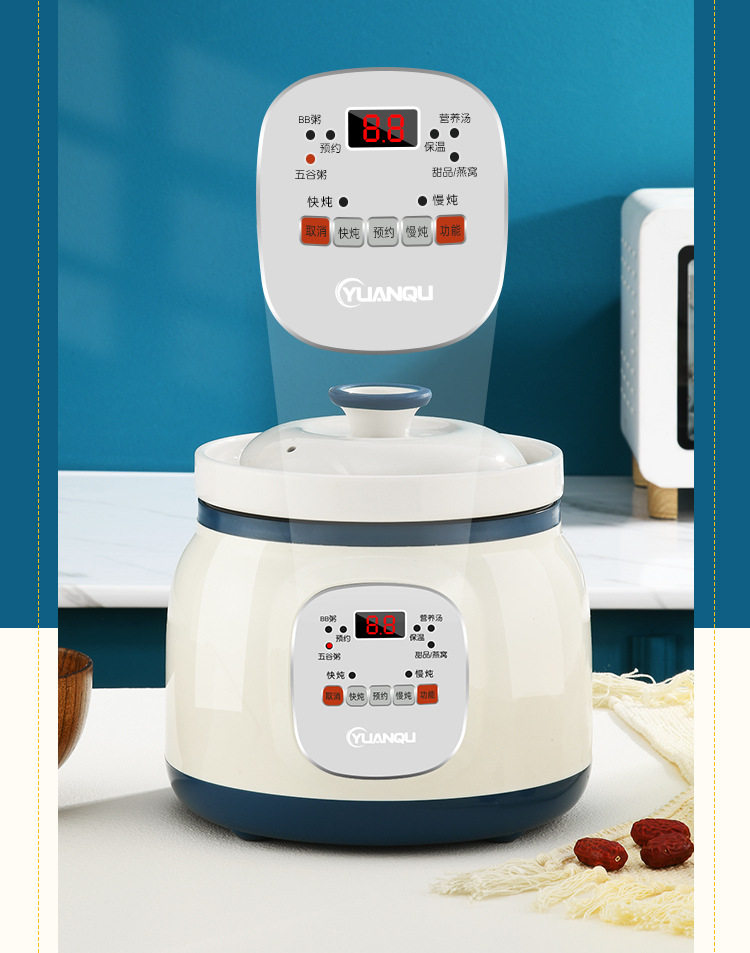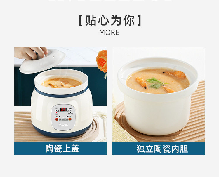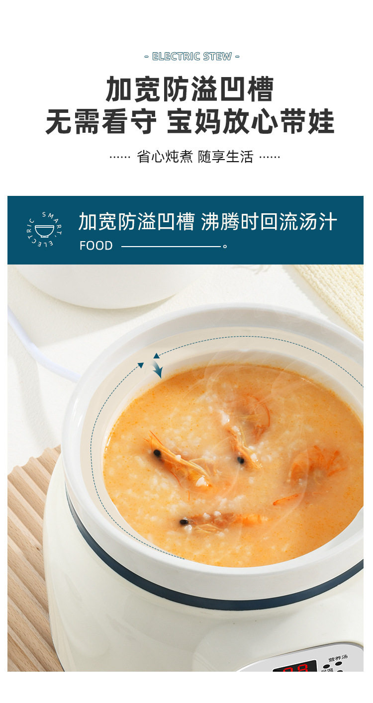 Carefully Selected White Porcelain Smart Electric Stew Pot for Cooking Porridge and Soup with Ceramic Inner Pot, Scheduled Cooking Rice Cooker with Timed Low Heat Health Pot
