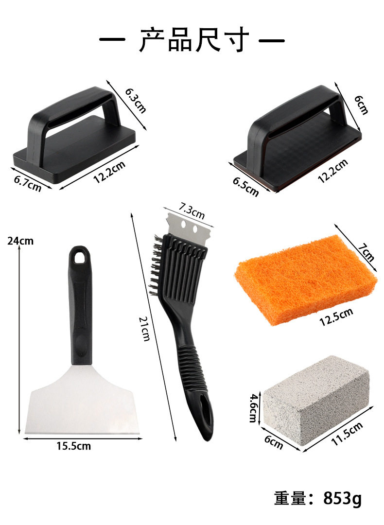 Teppanyaki Cleaning Set Stainless Steel Cooking Spatula Barbecue Cleaning Utensils Wire Brush Shovel Cleaning Combination Set