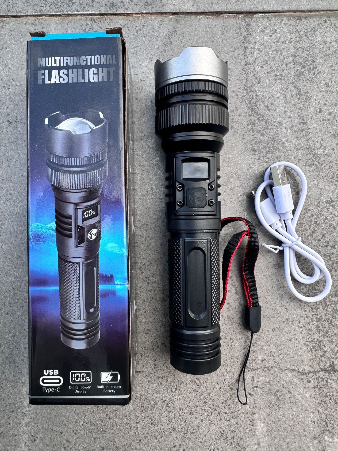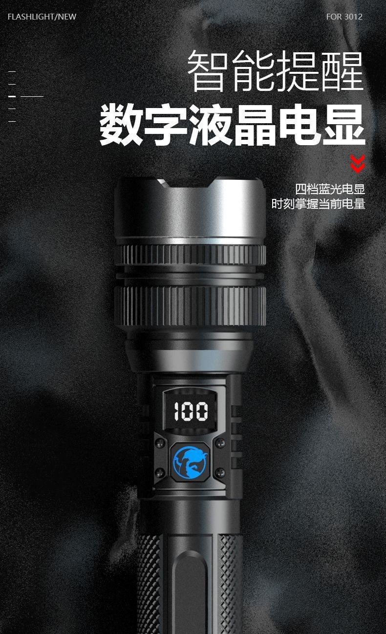 Cross-Border New Product Flashlight Ultra-Bright Long-Range High-Power White Laser Digital Display Emergency Light Rechargeable Outdoor Bright Flashlight