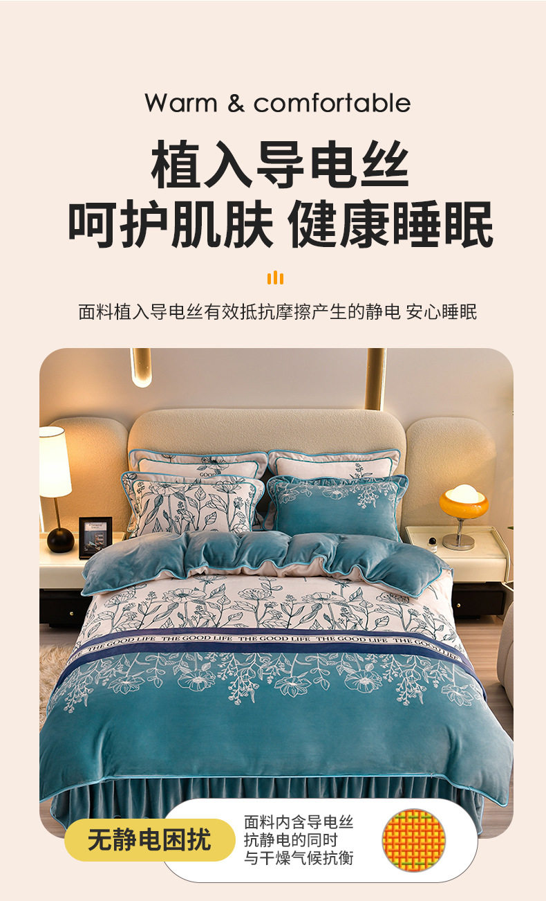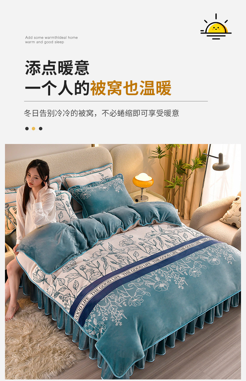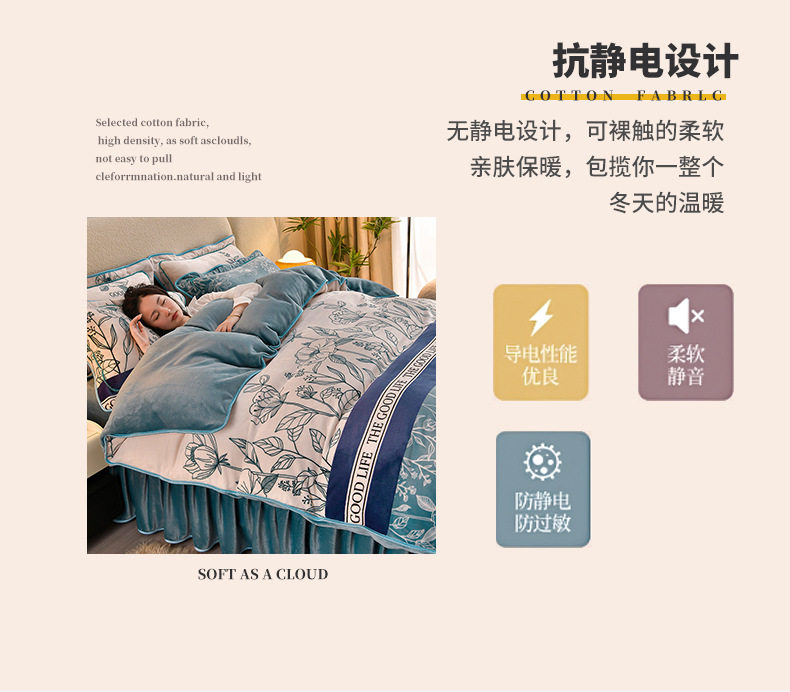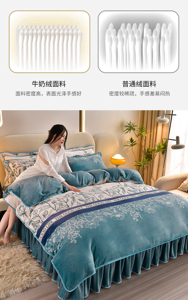 Class a Thickeneded Milk Velvet Four-Piece Autumn and Winter Cartoon Bed Skirt Quilt Cover Double-Sided Coral Velvet Bed Three-Piece Quilt Cover