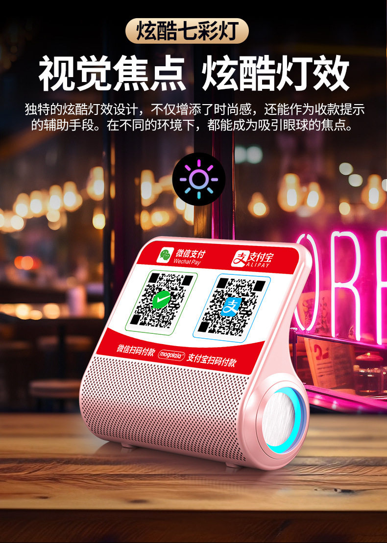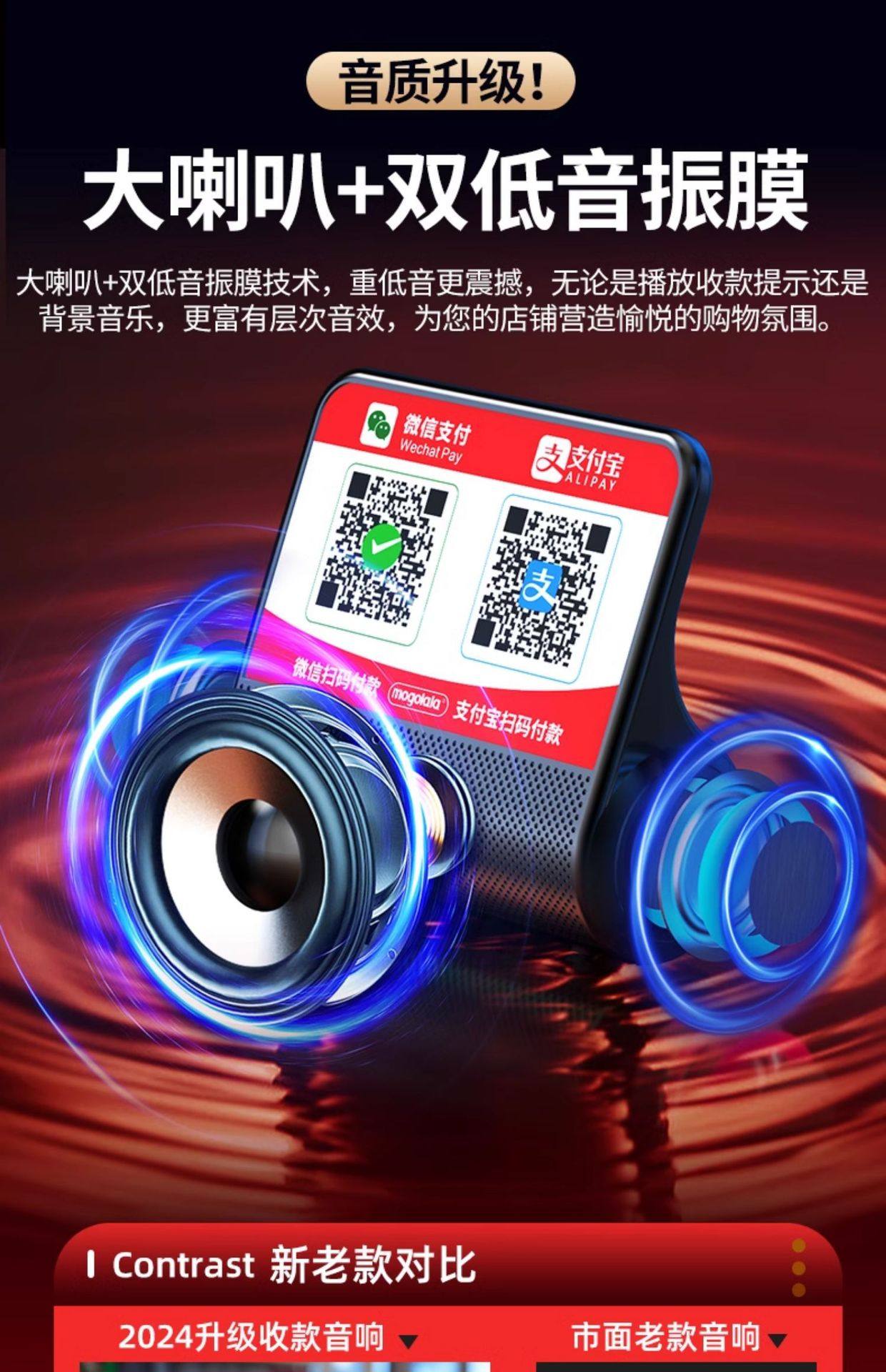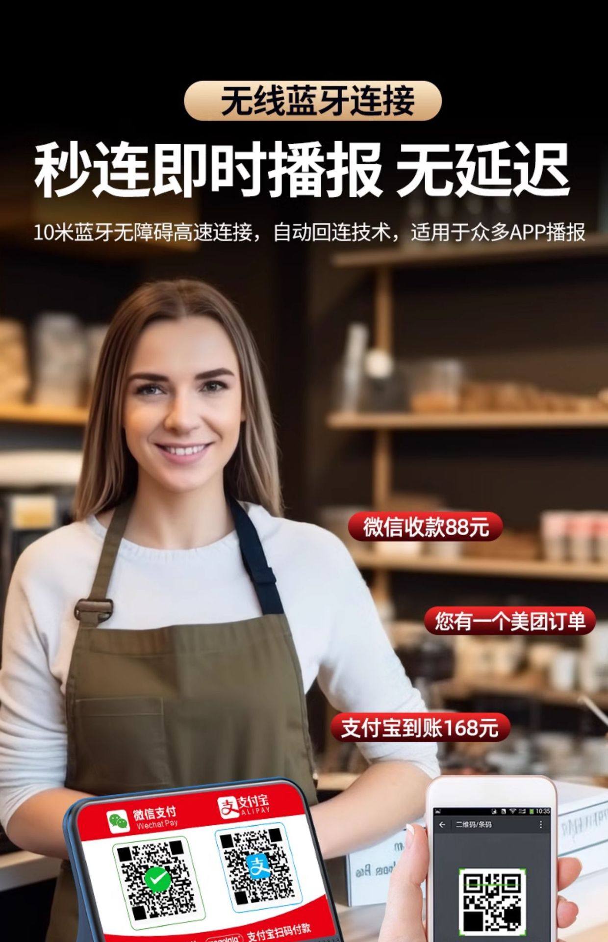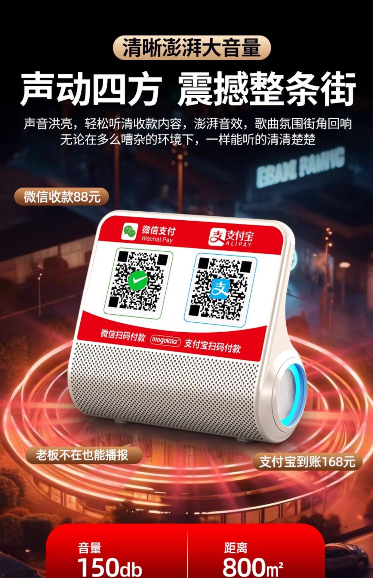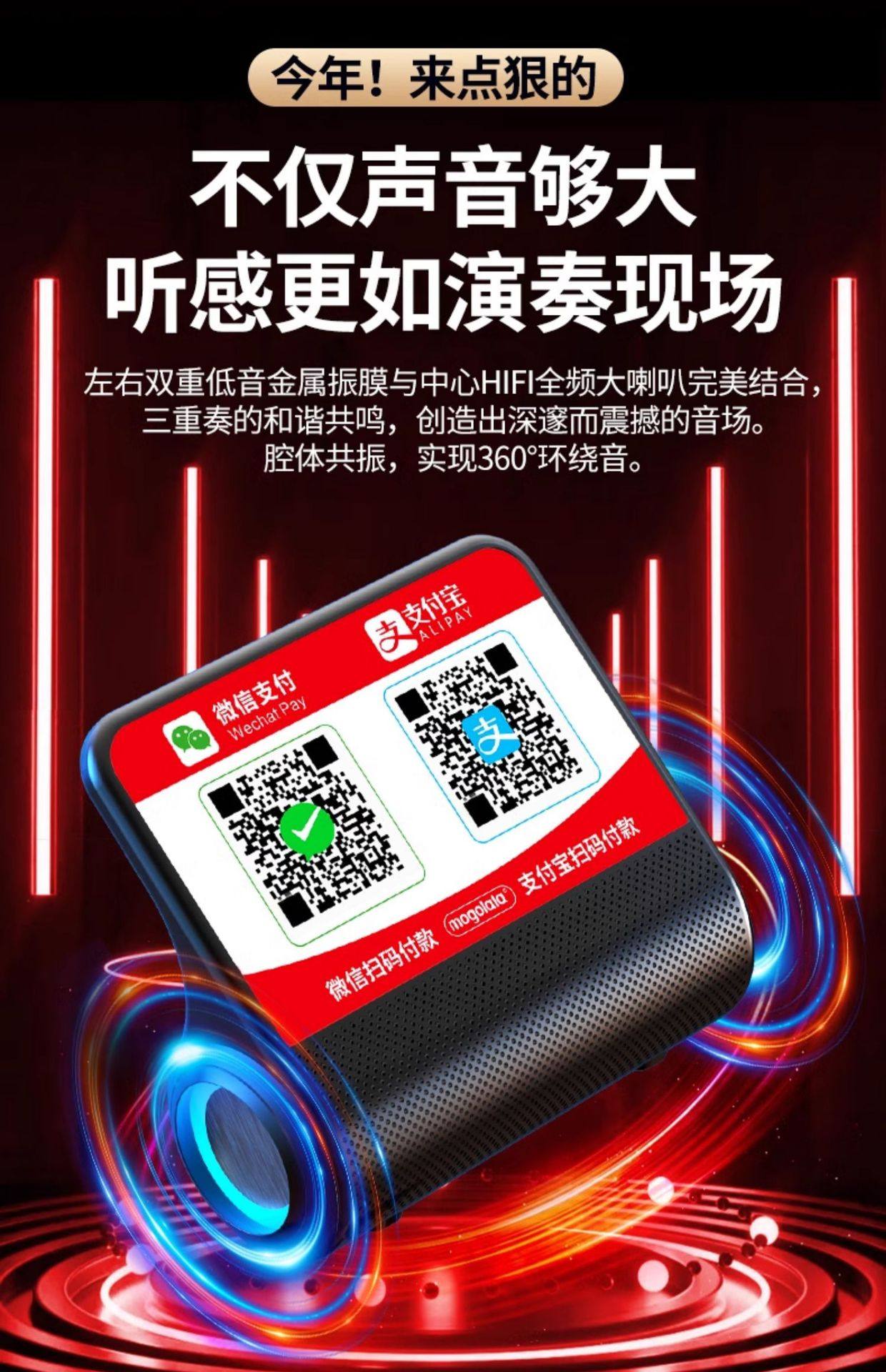 Payment Speaker with Real Voice Prompts, Payment Collection Announcer, High Volume Bluetooth Speaker, Dual-Diaphragm Subwoofer